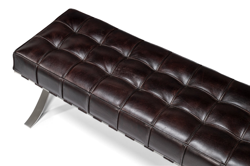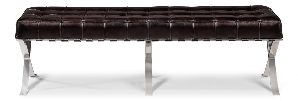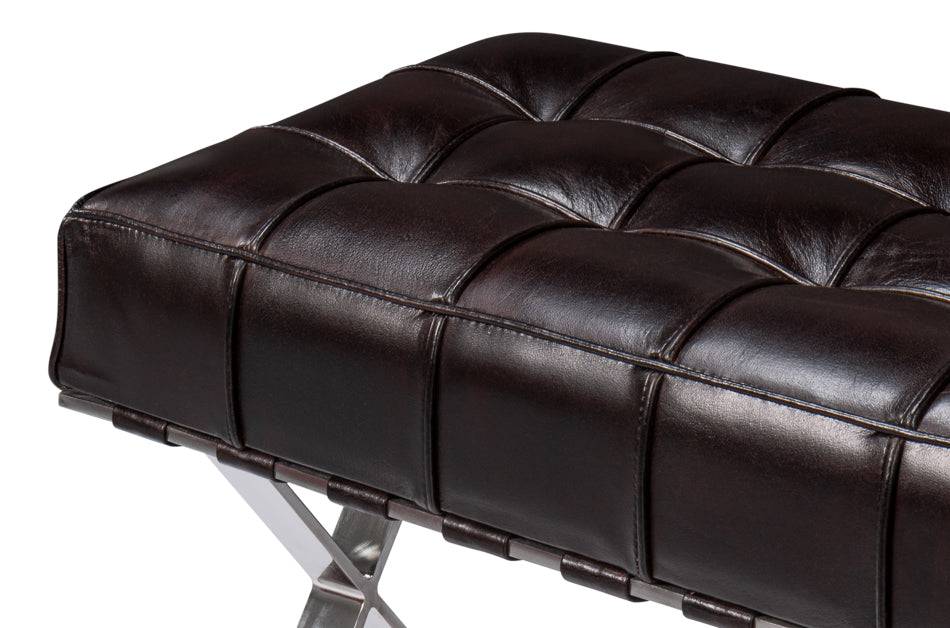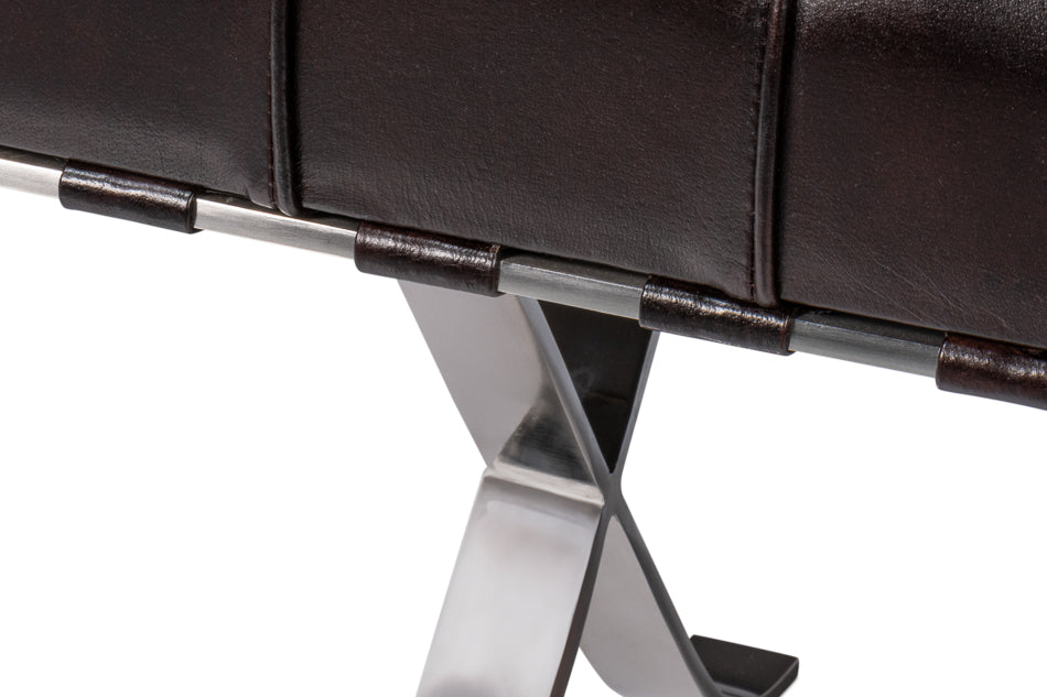 Contemporary elegance will describe our Catalunya Seating Collection. We paired stainless steel strap frames with luscious dark brown tufted leather.
