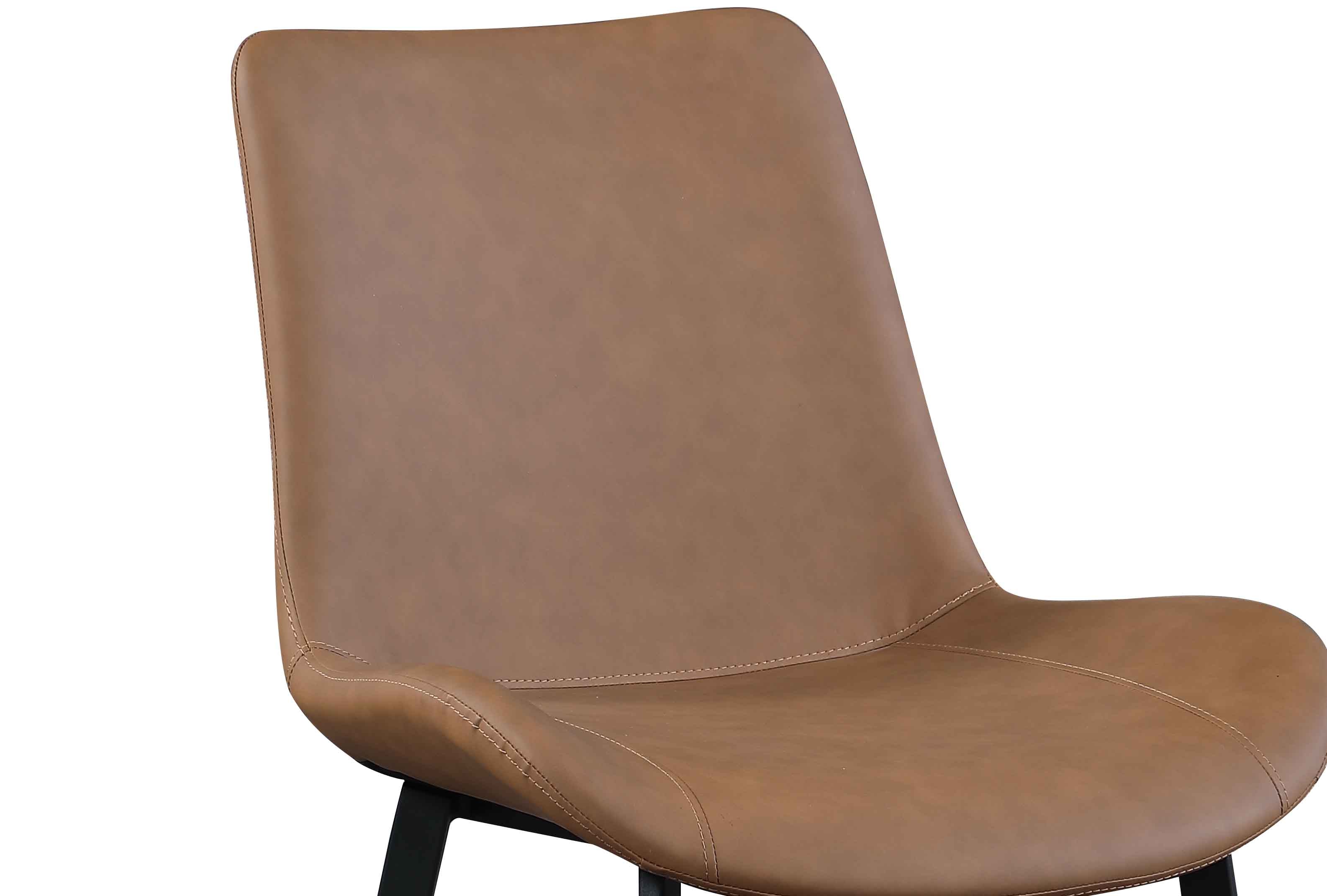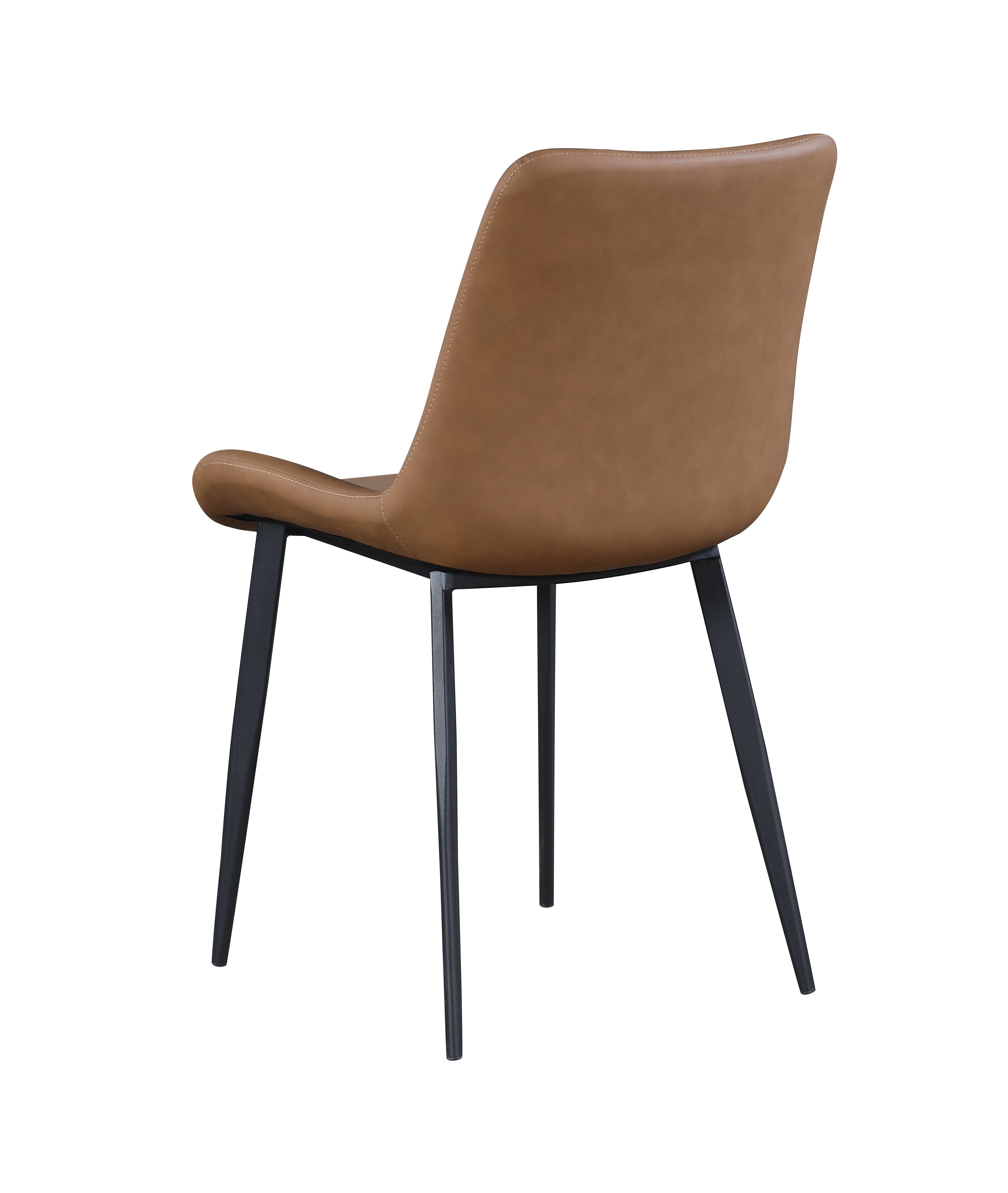 This contemporary dining chair is a great choice for a simple but classy design. It features a curved back and seat frame, upholstered in PVC with 2 vivid colors to choose from, depending on how you want to match your setting. The chair comes 4 per box with steel legs finished in matte black for support and a sleek look.
