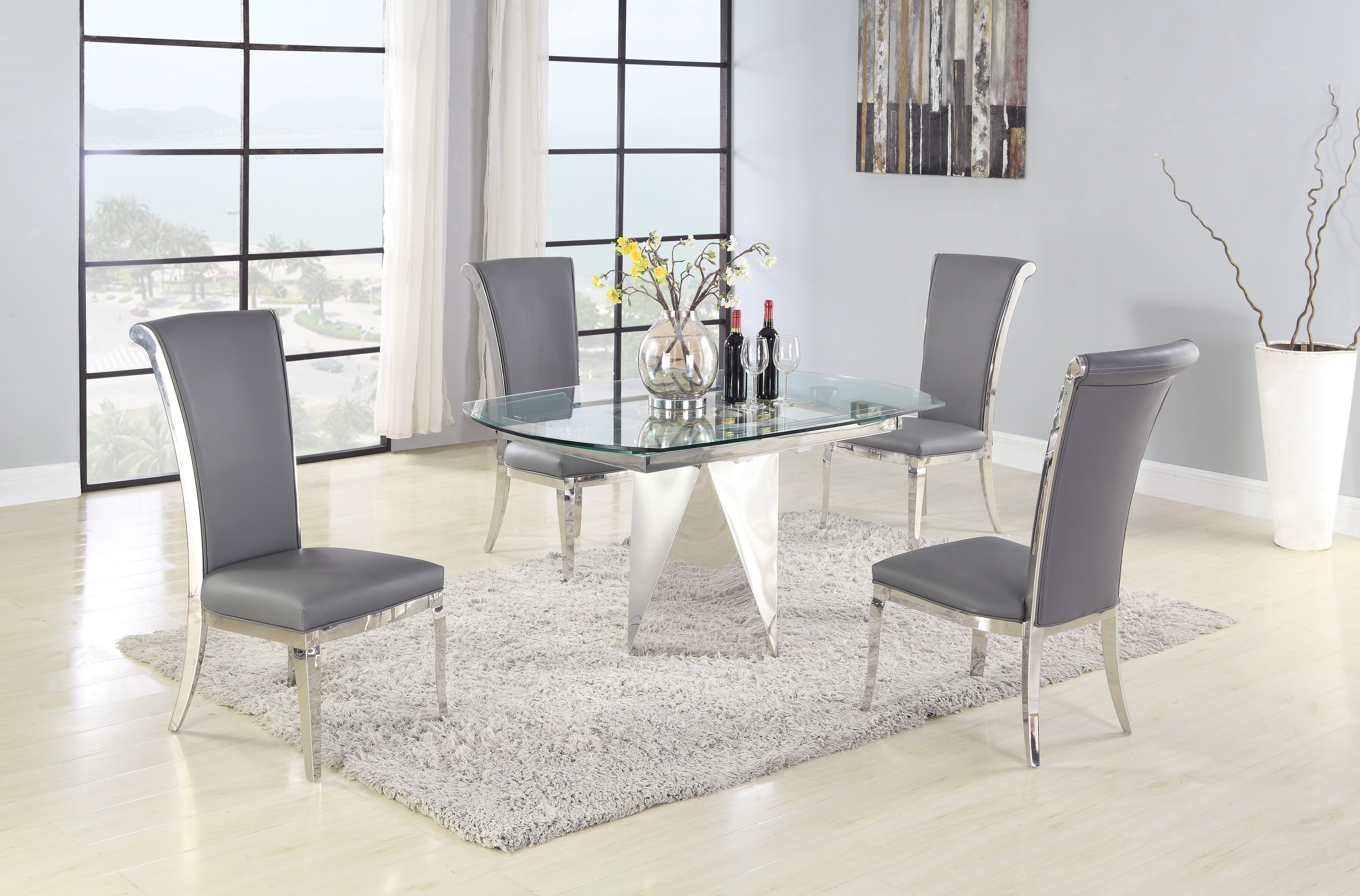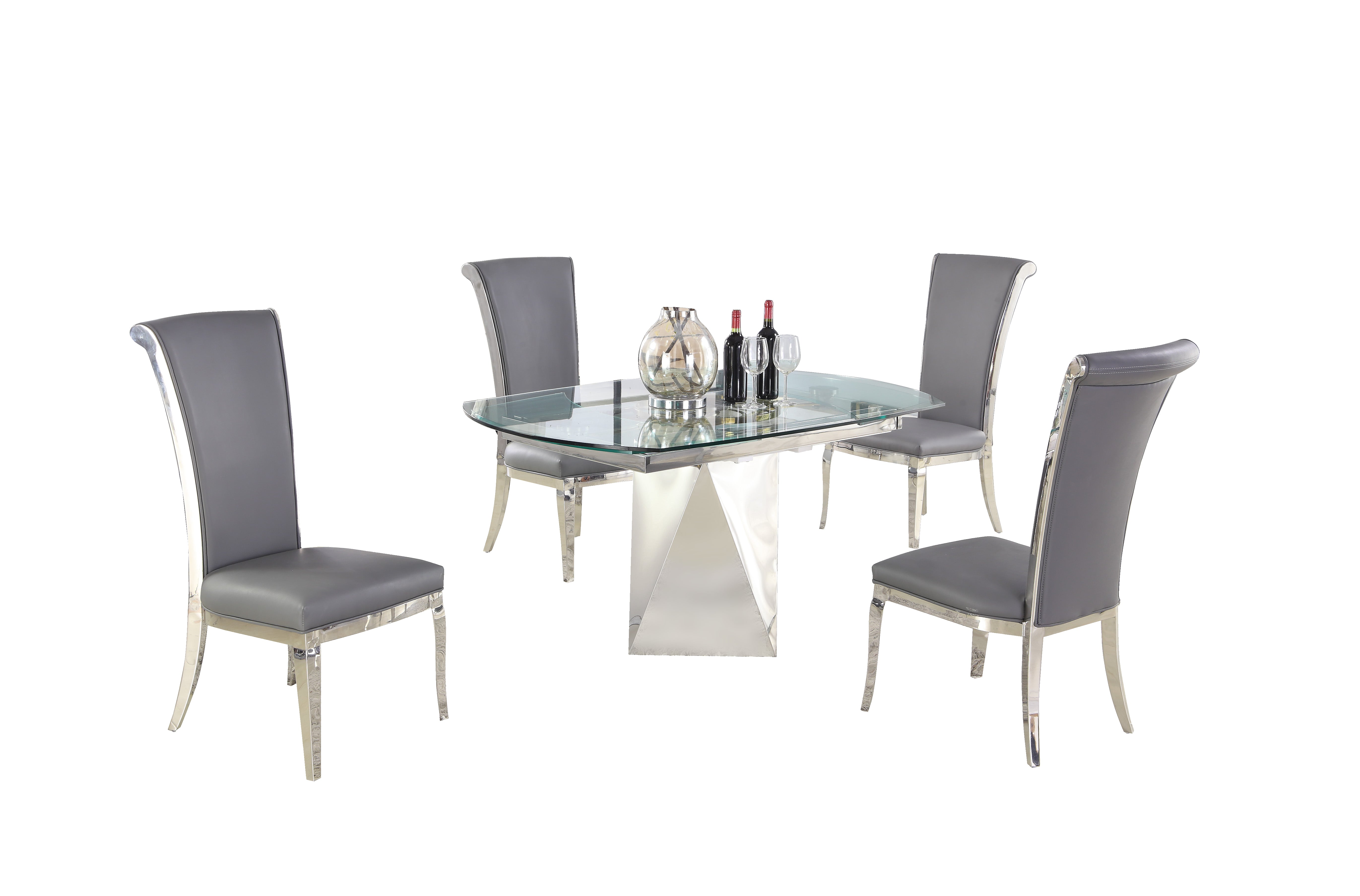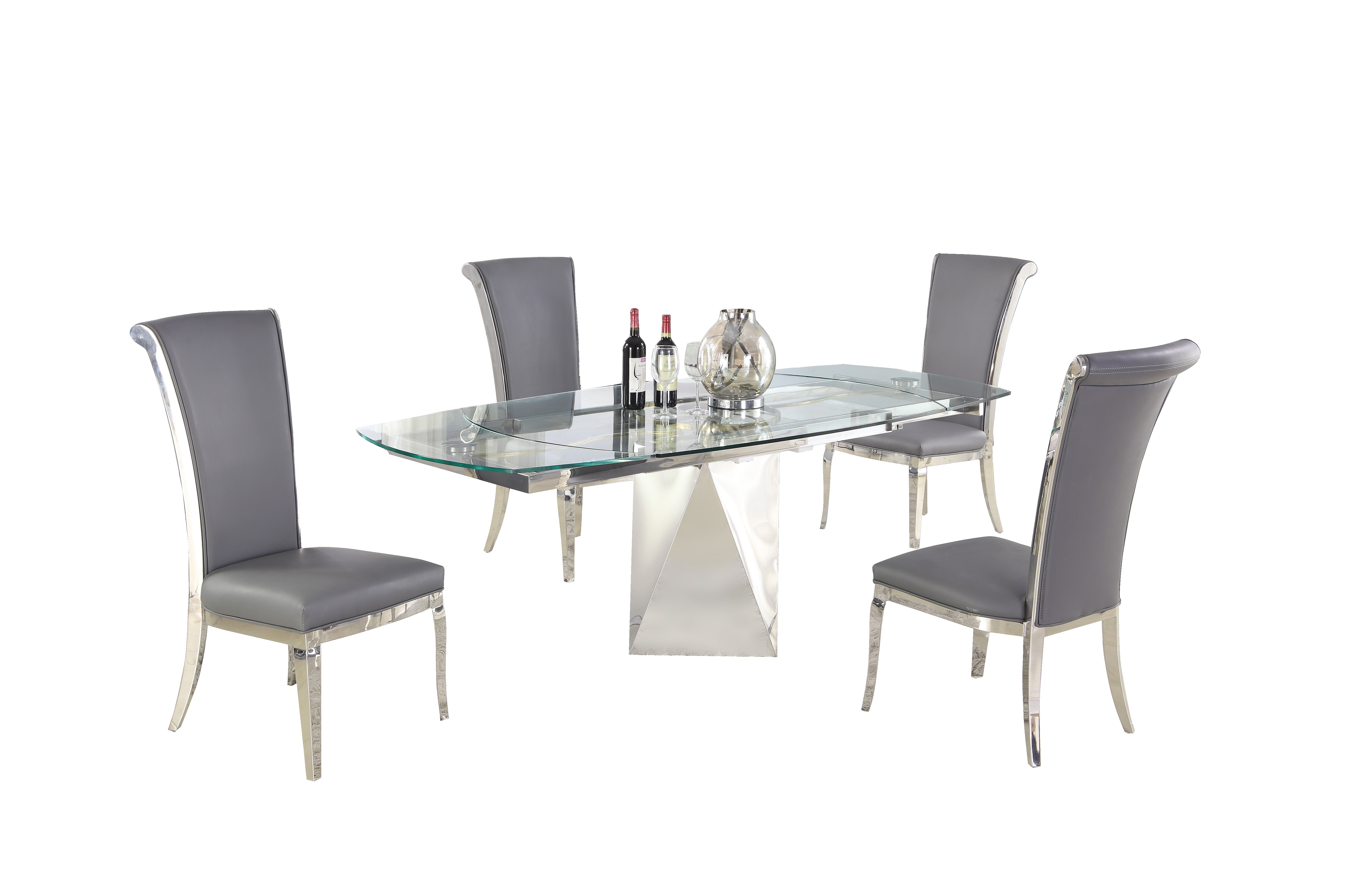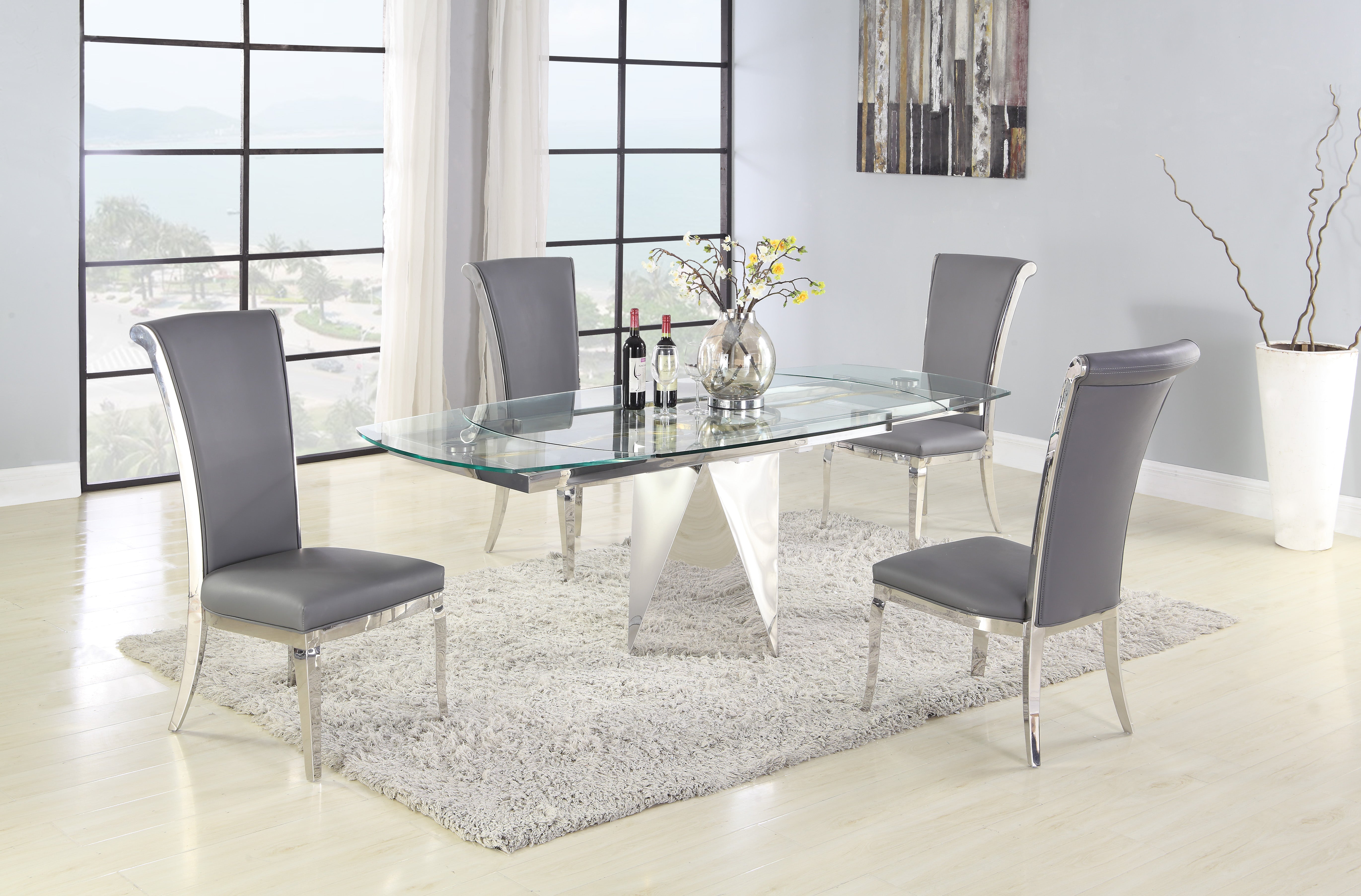 Contemporary Motion-Extendable Glass Dining Set w/ 4 Chairs | Modern Motion - GLORIA-JOY-5PC-GRY