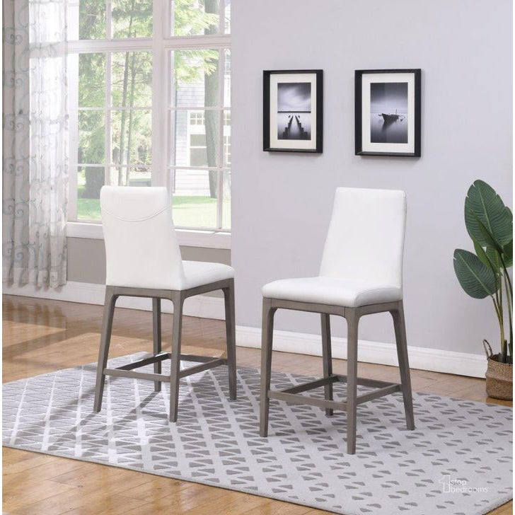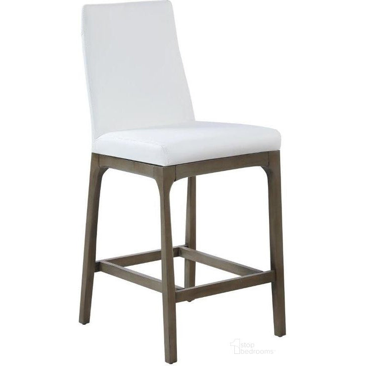 Introducing our contemporary contour back counter stool, designed to bring modern elegance to your space. This stylish stool features a sleek and ergonomic contour back, providing maximum comfort for extended seating. The white faux leather upholstery adds a touch of sophistication and is easy to clean, making it perfect for everyday use. The solid wood legs are finished in a sleek gray color, enhancing the stool's modern aesthetic.