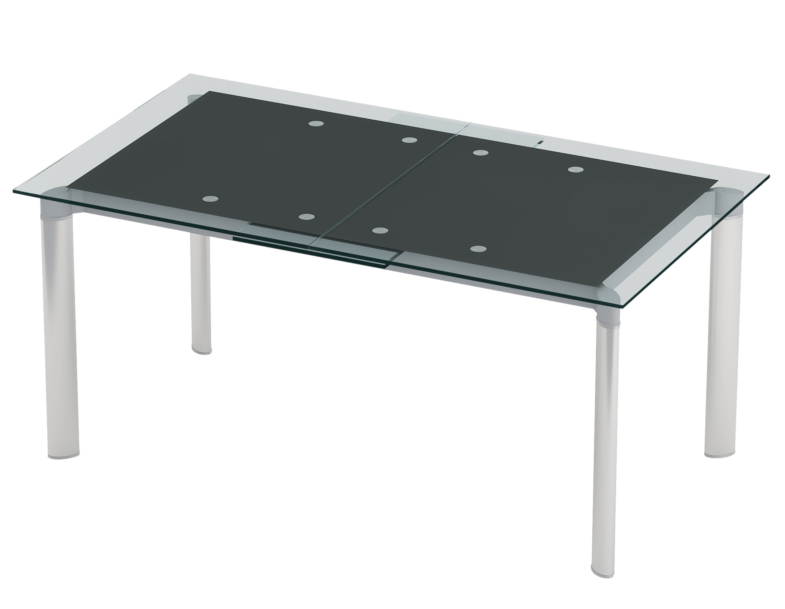 This dining set features an easily extendable table with a tempered 63" long glass top that opens to 79". The Z-shaped chairs have a comfortable, contoured backrest with and chrome base plate.