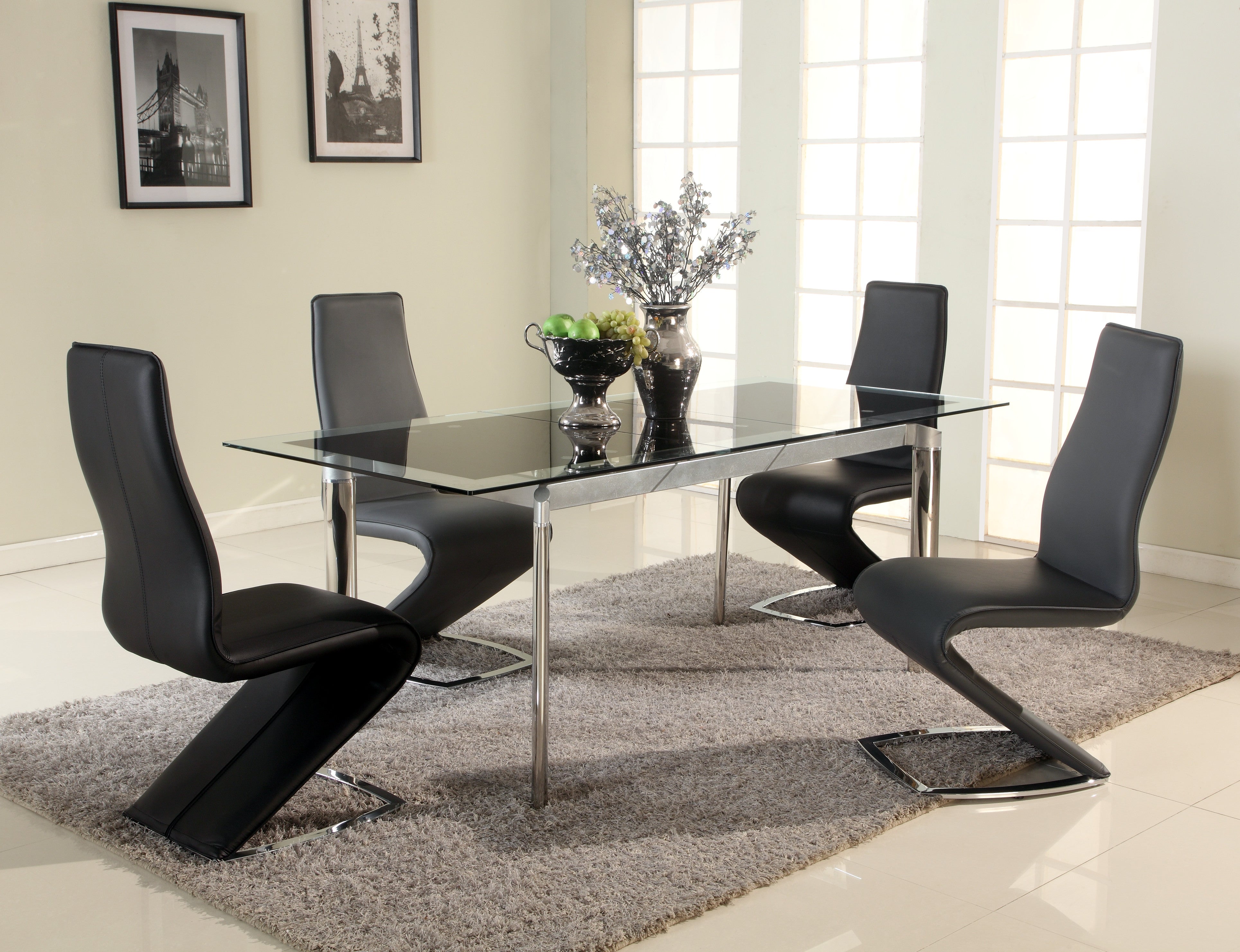 Modern Dining Set w/ Extendable Glass Table & Z-Shape Chairs | Modern Motion - TARA-BLK-5PC-BLK