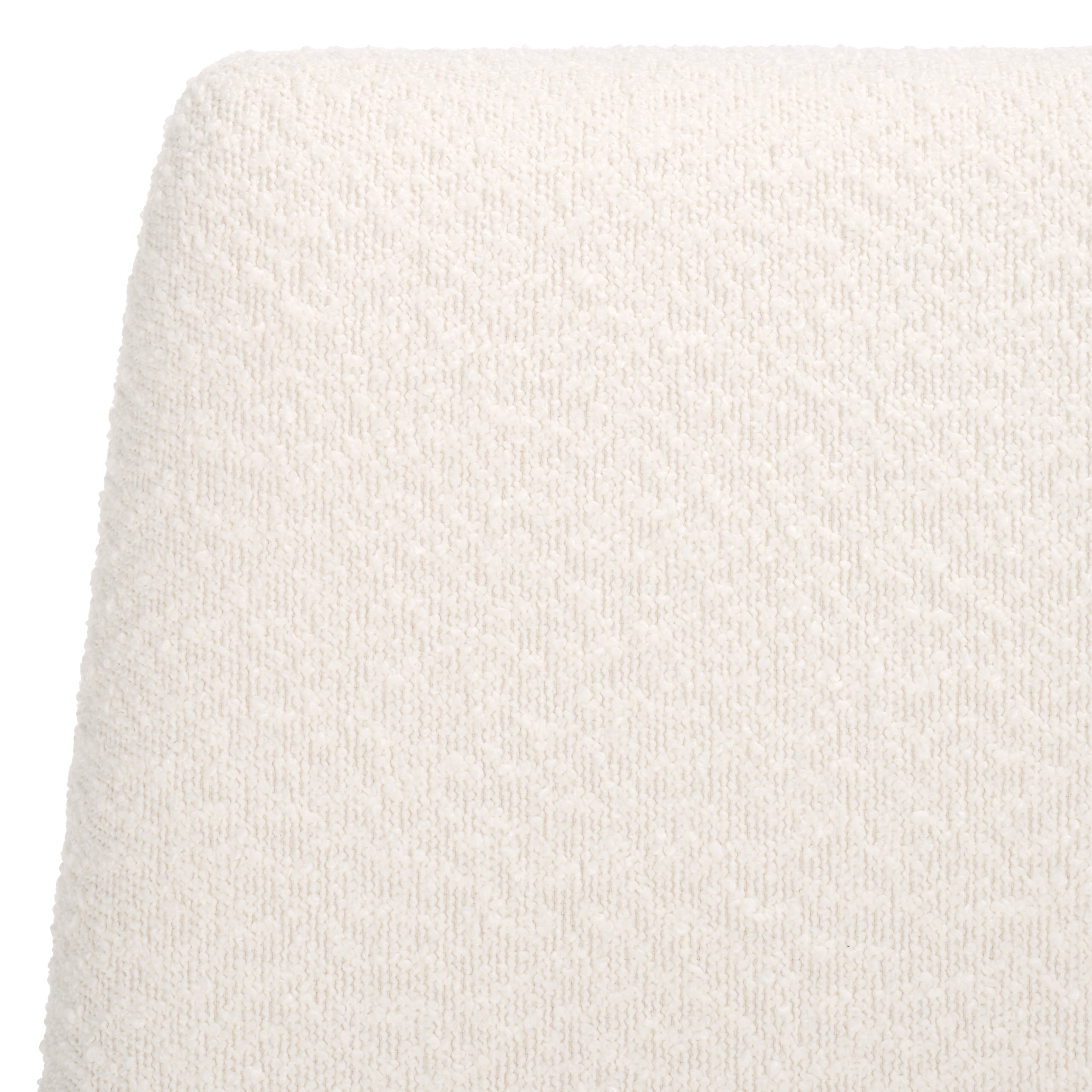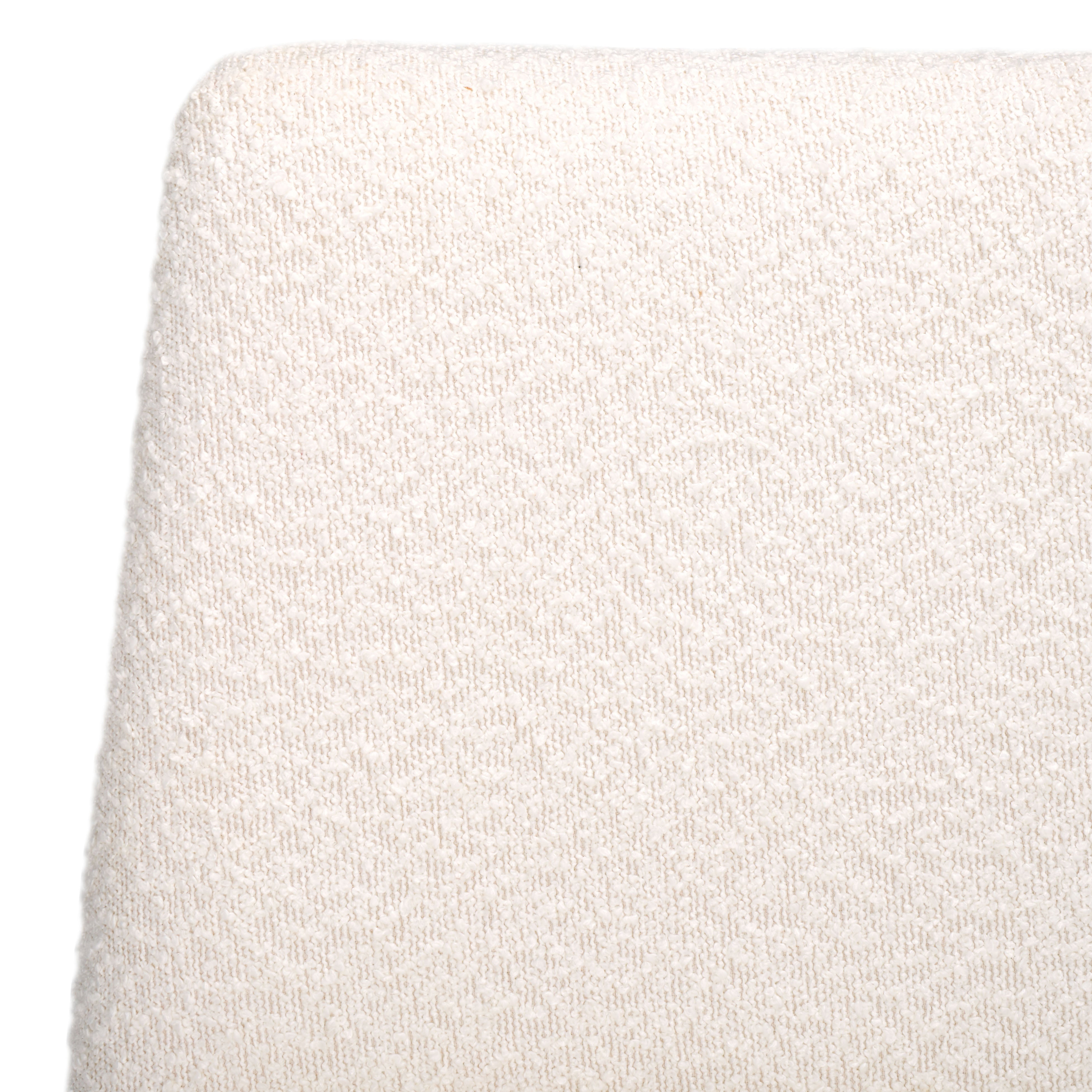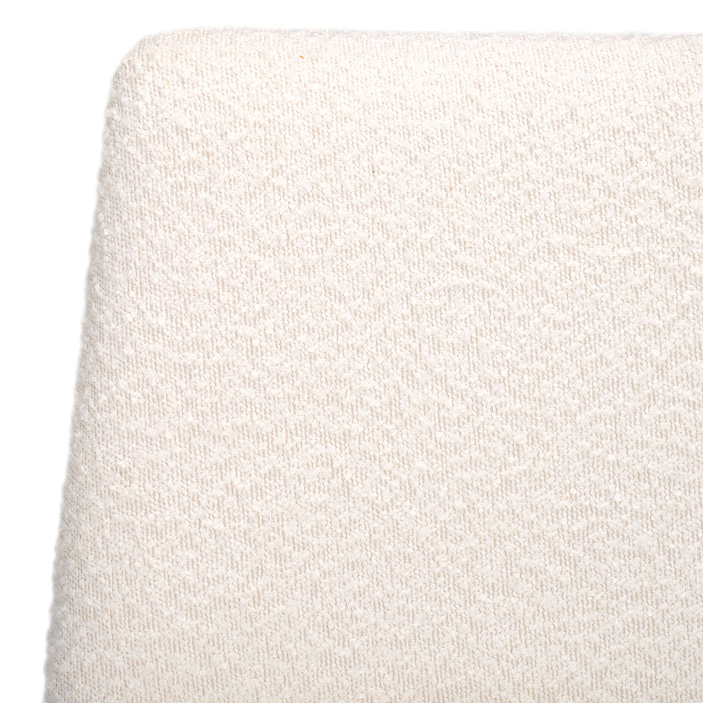 Coupled with its sleek silhouette, the chair's neutral ivory hue harmonizes effortlessly with an array of decors, making it a versatile choice for contemporary and traditional homes alike. The boucle fabric not only exudes sophistication but also ensures easy maintenance and supreme comfort for years of enjoyable use.
