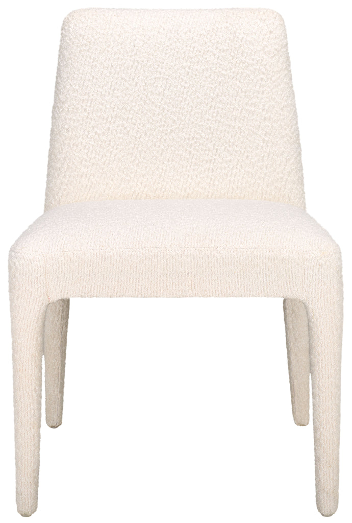 Elevate your dining experience with the exquisite Derrick Boucle Dining Chair, a stunning addition to any dining room setting. Upholstered in luxurious ivory boucle fabric, this chair offers a tactile treat with a textural finish that invites touch and adds opulence to mealtime gatherings. Each elegantly crafted chair features robust birch wood construction, ensuring long-lasting durability and a classic aesthetic.