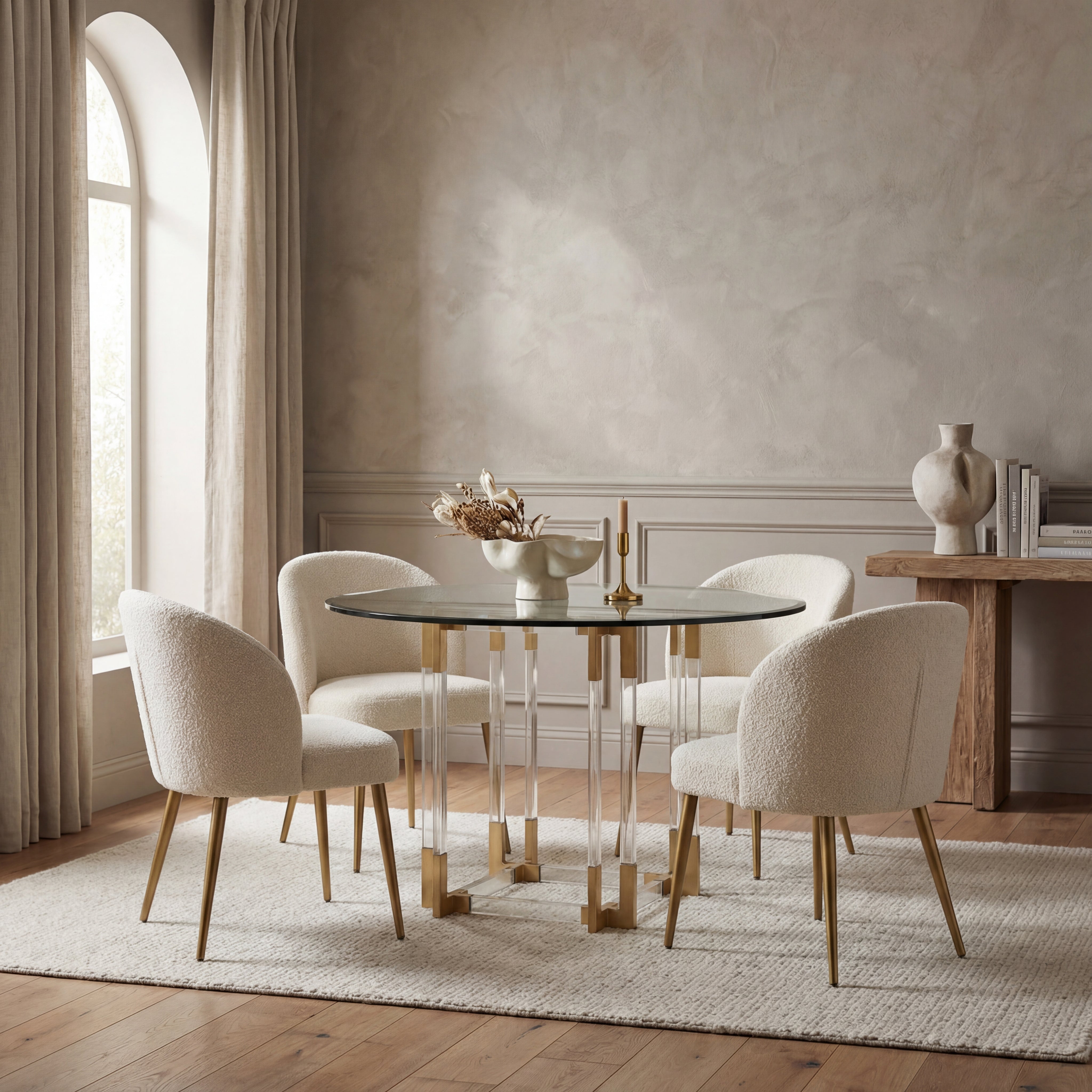 The table's diameter makes it perfect for intimate gatherings or cozy family meals. Whether hosting a dinner party or a casual breakfast, the Reiner table offers versatility in any setting. Its minimalist yet striking design ensures it will effortlessly become the centerpiece of your dining area. Create memorable moments around the Reiner acrylic dining table and watch as it transforms the everyday into the extraordinary. Unlock the potential of your dining experience with this masterful blend of material and design.
