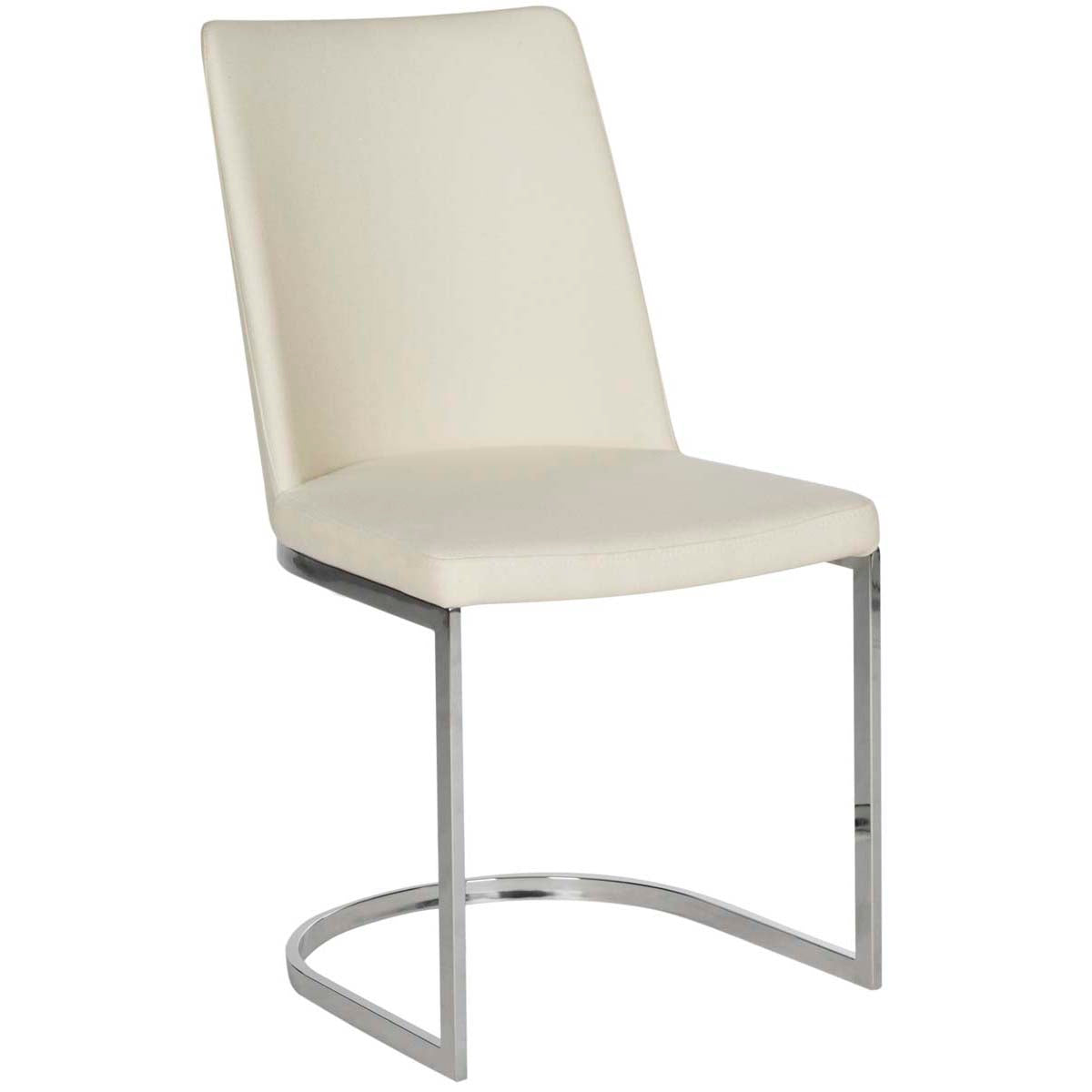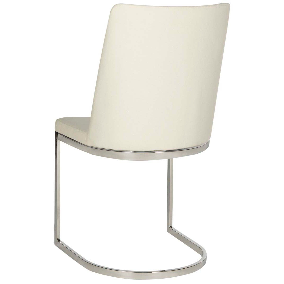 Designed for the sophisticated palette, these tasteful side chairs was inspired by London's fine dining scene. An open frame of polished curved chrome and smooth beige linen are the perfect pairing of elegance and luxury. Sold in sets of two.