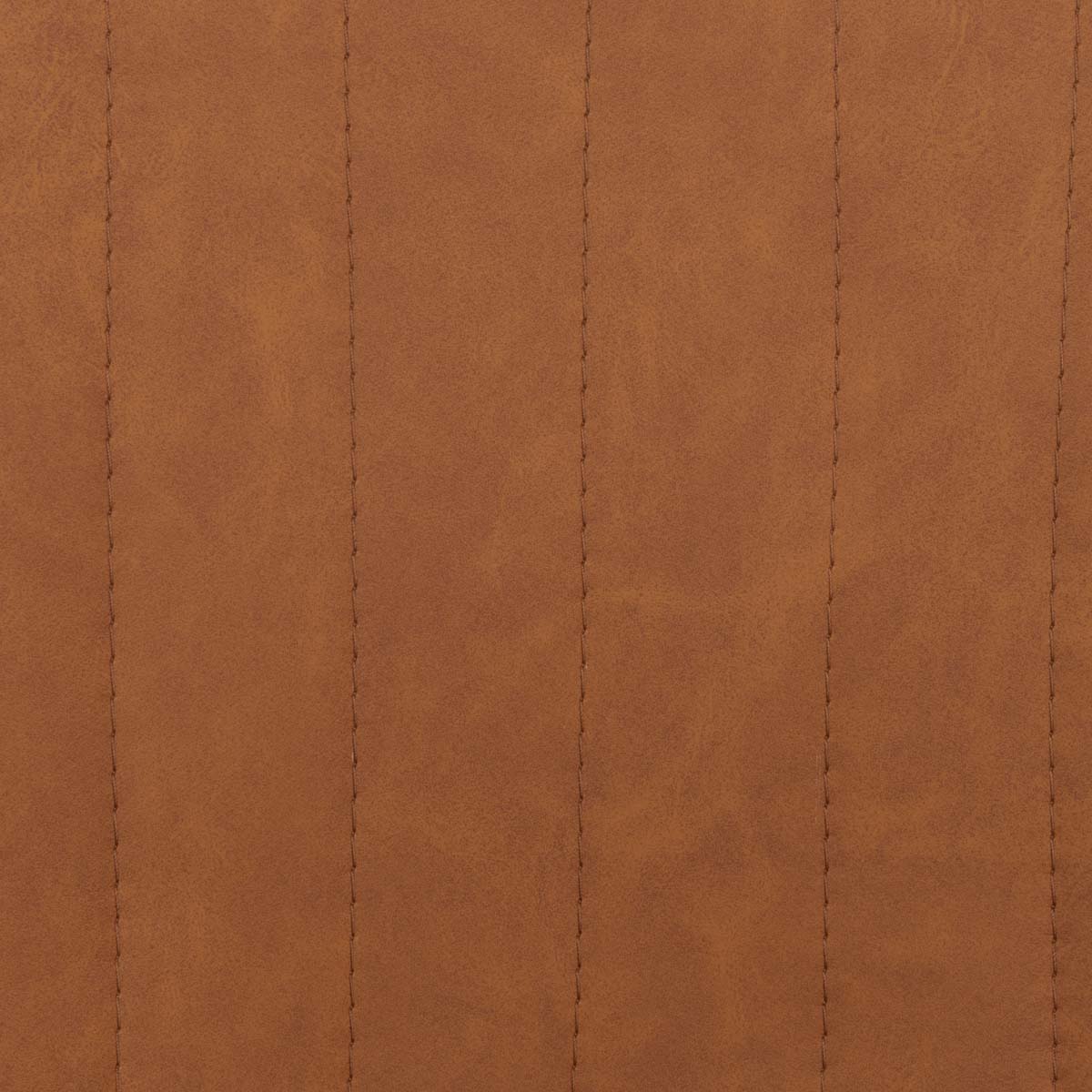 Experience the high life with this exceptional Rhyatte Barstool. Exposed cross stitch details give an added layer of decorative depth to the subtle channel tufting on Rhyatte?? smooth cognac vegan leather, perfectly balanced by the stark angles of its black iron base.