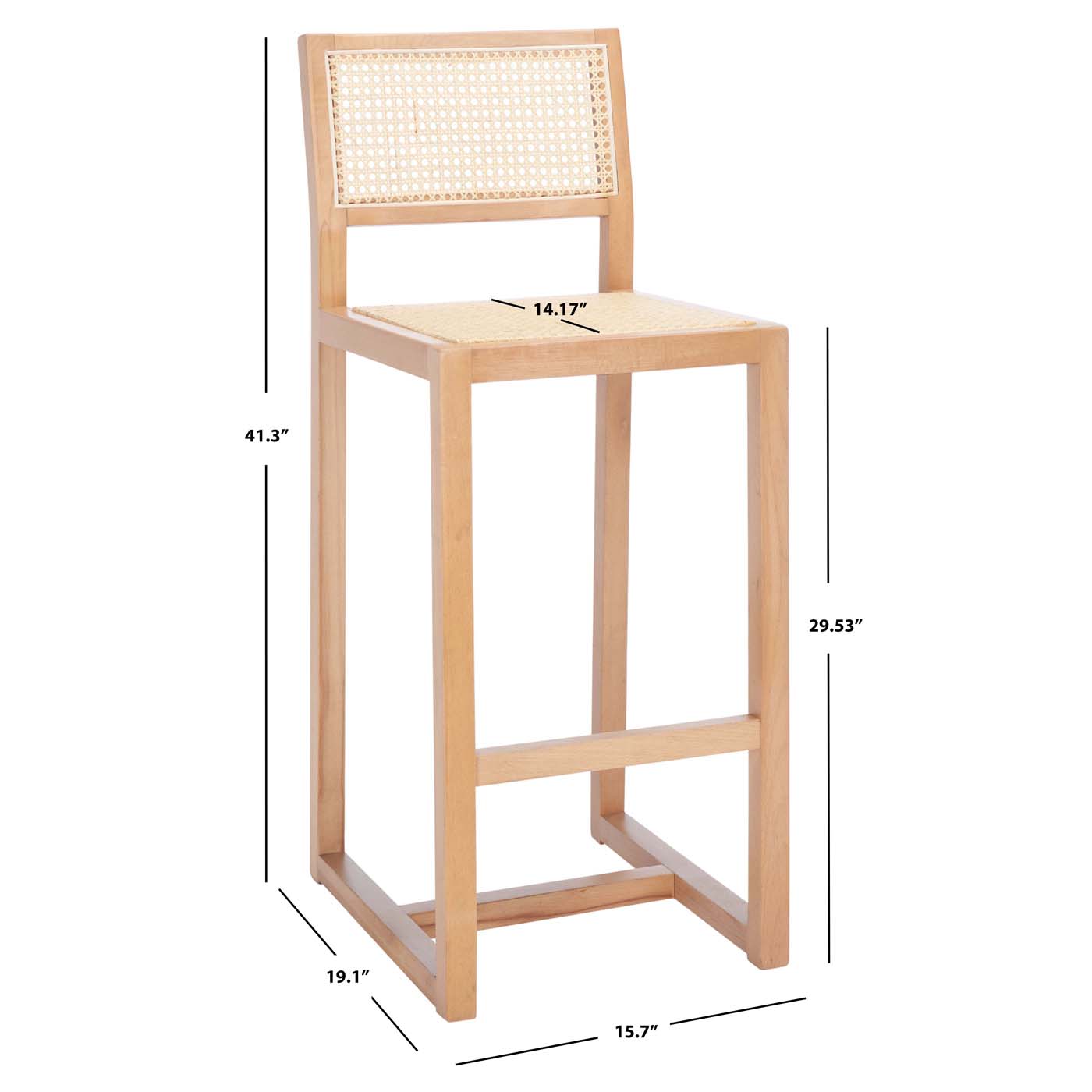 Safavieh Seika Rattan Bar Stool - Natural - Natural / Natural / 15.7" X 19.1" X 41.3" is backordered and will ship as soon as it is back in stock.