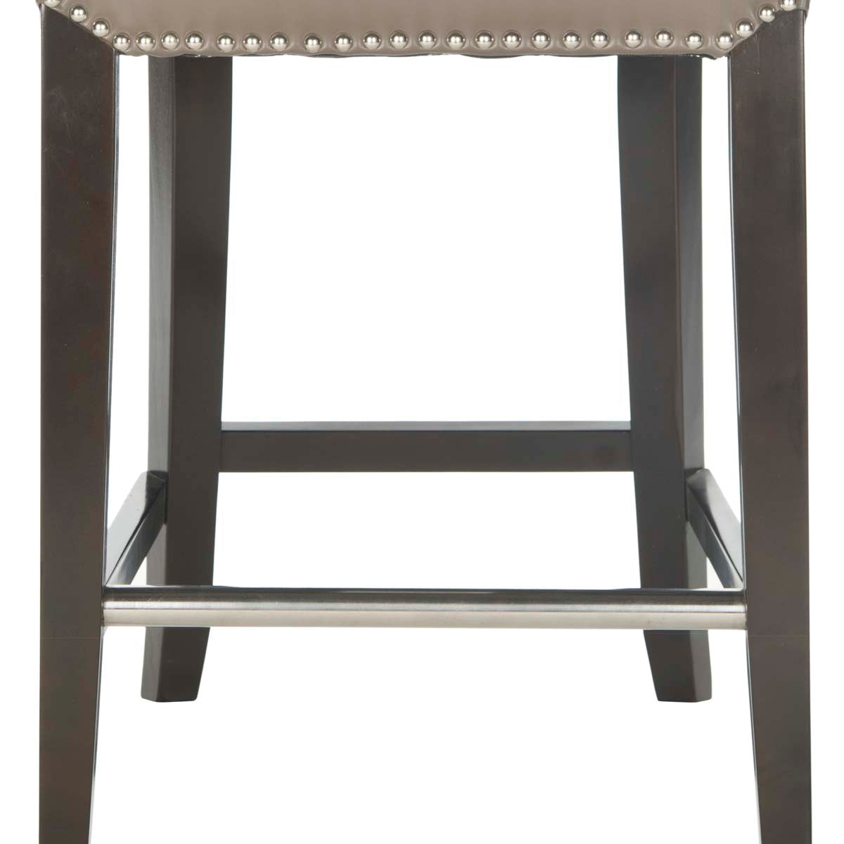 The clean lines of the Seth counter stool complement any home from traditional to contemporary. Featuring a birch wood frame in an espresso finish, Seth is upholstered in clay bicast leather with silver nail heads detailing its seat and gently curved back.