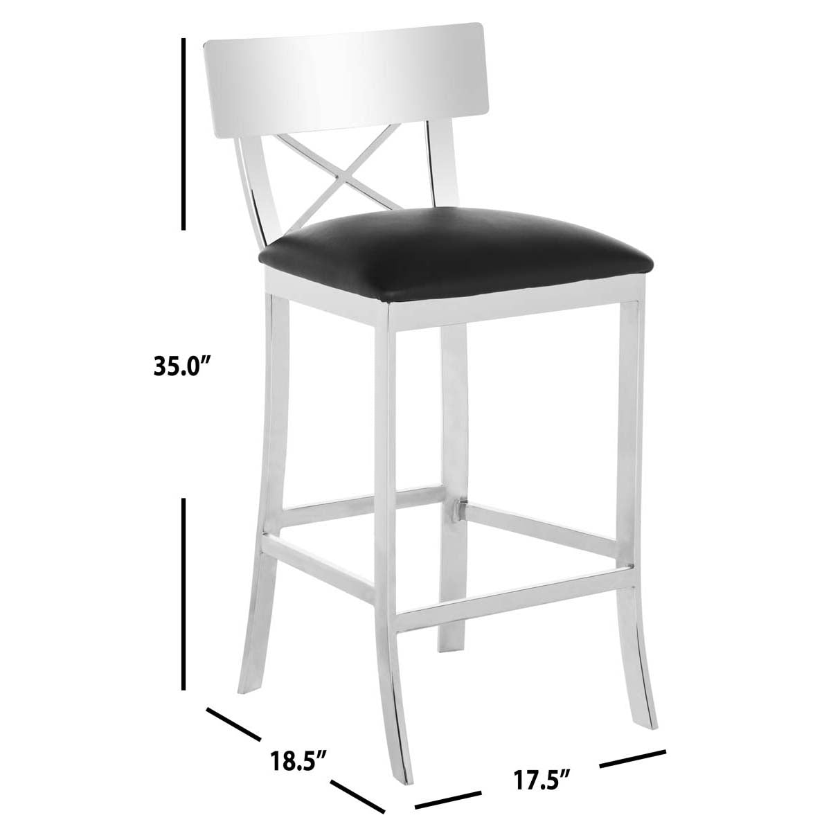 Safavieh Zoey 35''H Stainless Steel Cross Back Counter Stool - Chrome/Black Pu