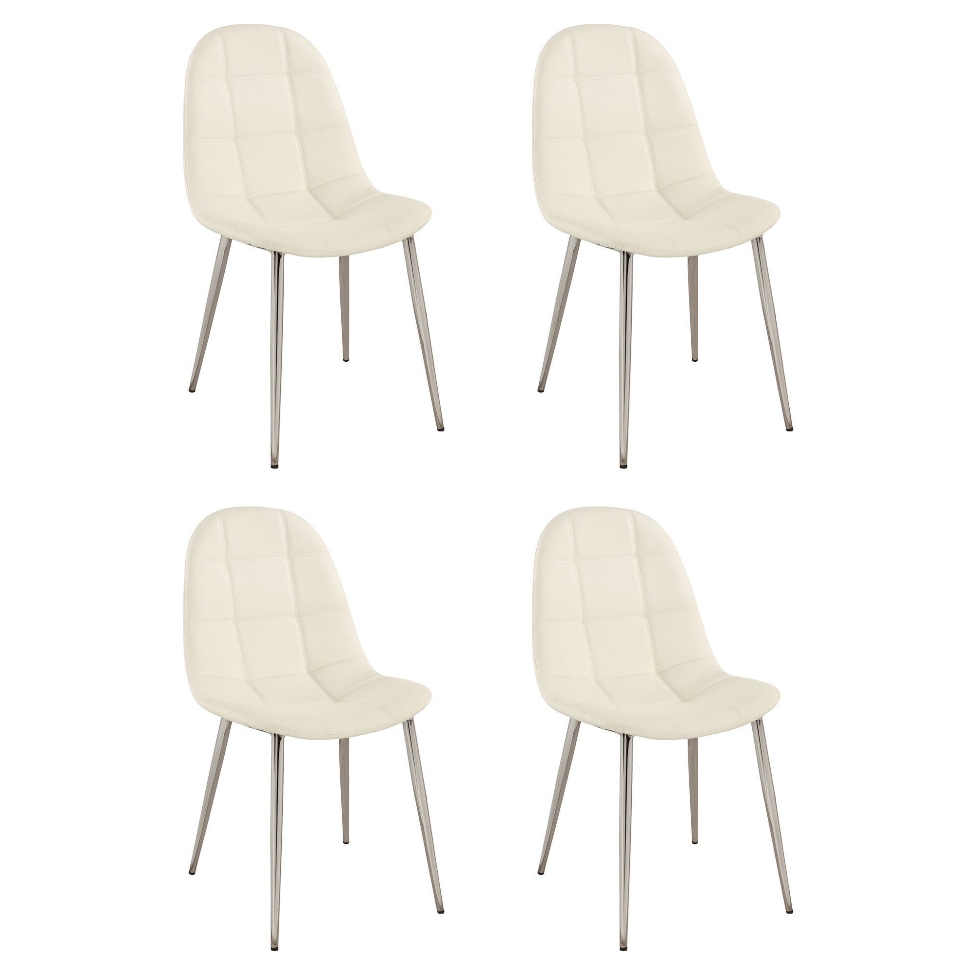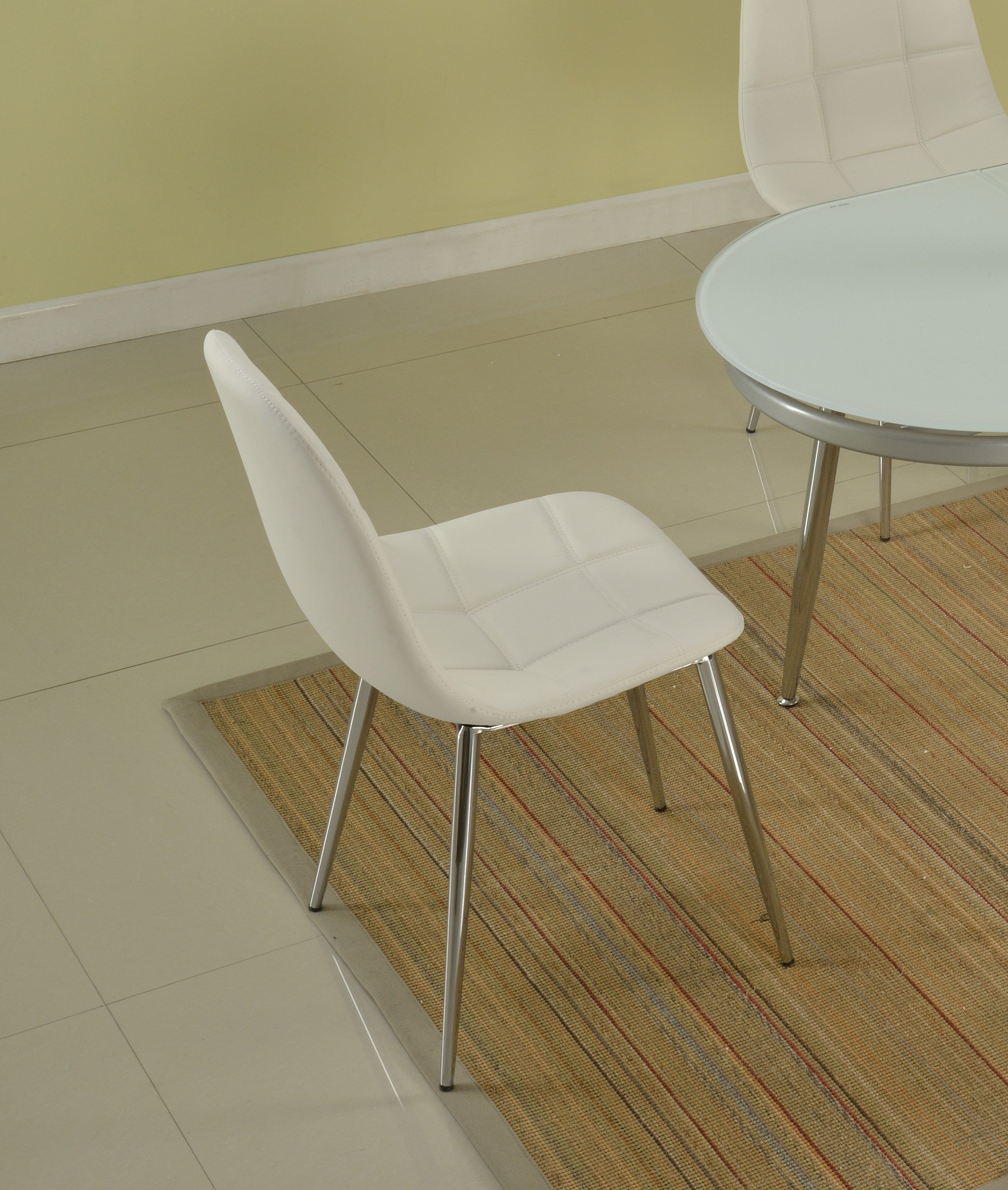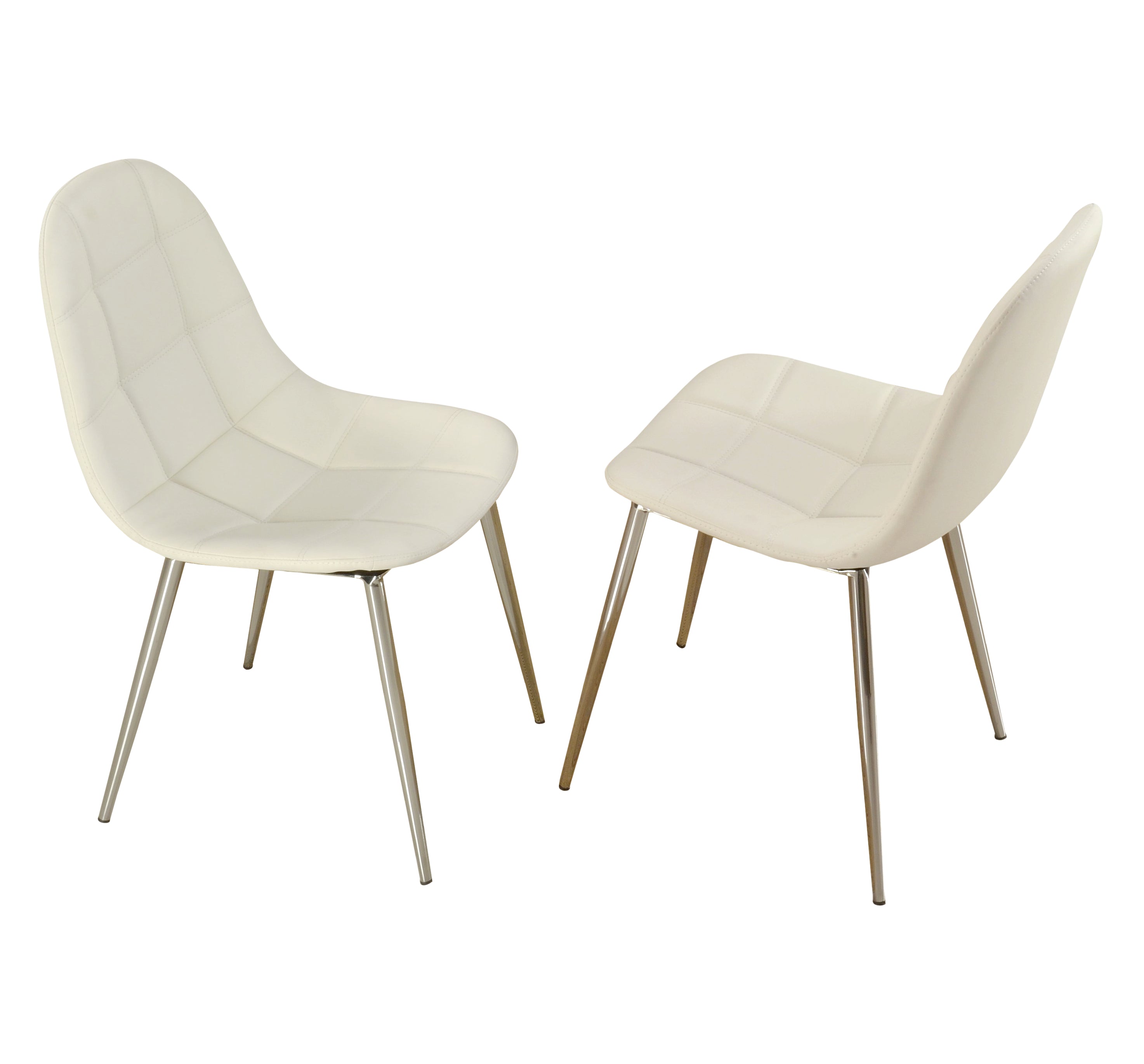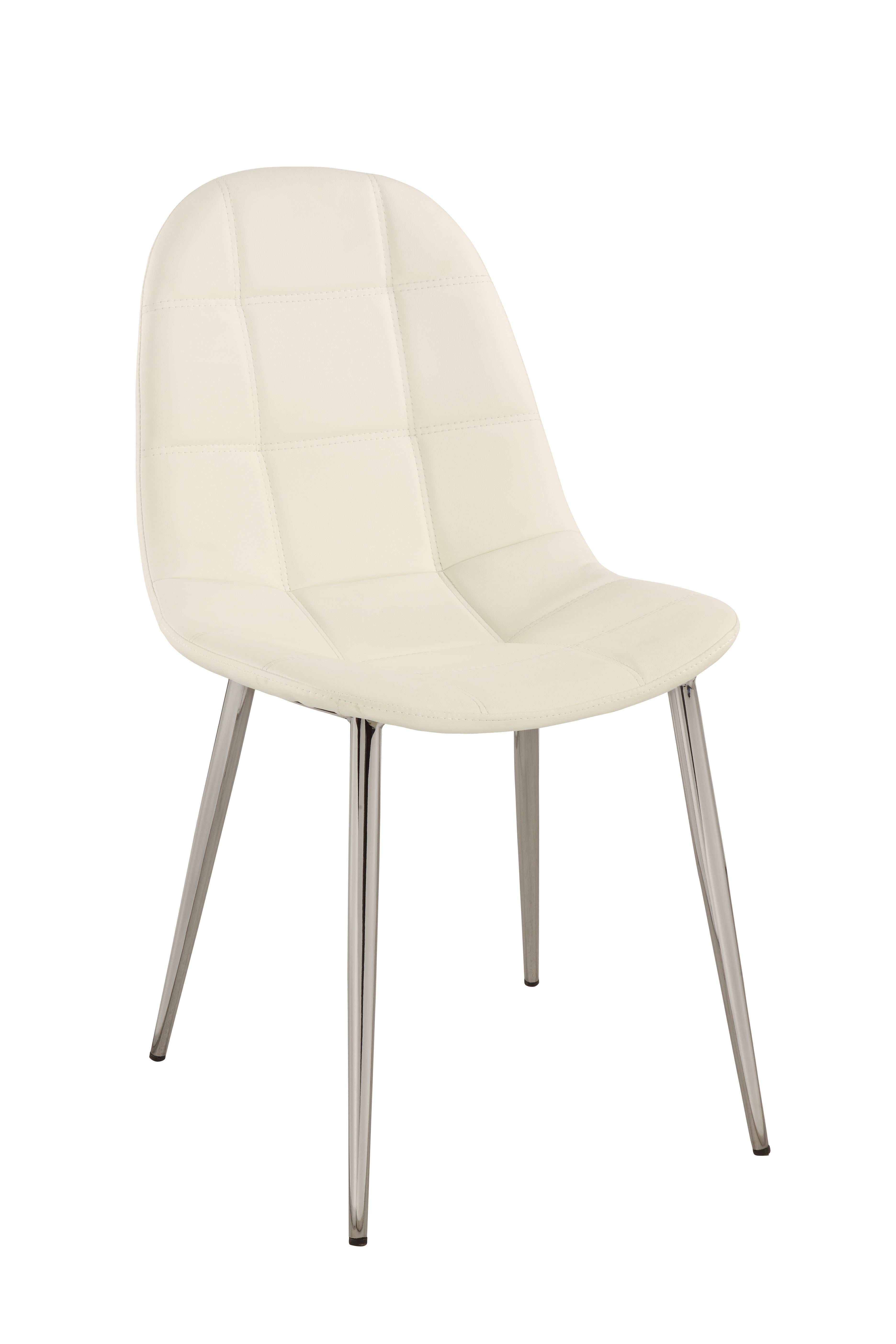 Comfy and sleek, this contemporary waffle-tufted dining chair comes in a set of 4 per box to easily complete your dining set. It will seat your guests in high style while offering enhanced comfort as well. The seat and backrest are upholstered in beautiful, quality white faux leather, supported by chrome finished steel legs.