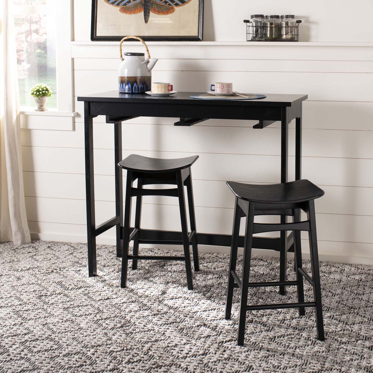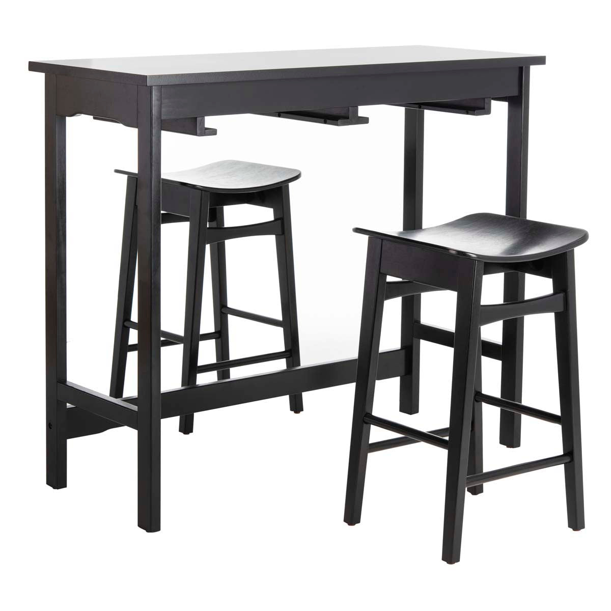 Take any dining experience to new heights with this smart and stylish contemporary pub set. Its brilliant design features a clever built in rack that stores its complementary stools under the table. Its clean lines make it a perfect fit in any d?cor.