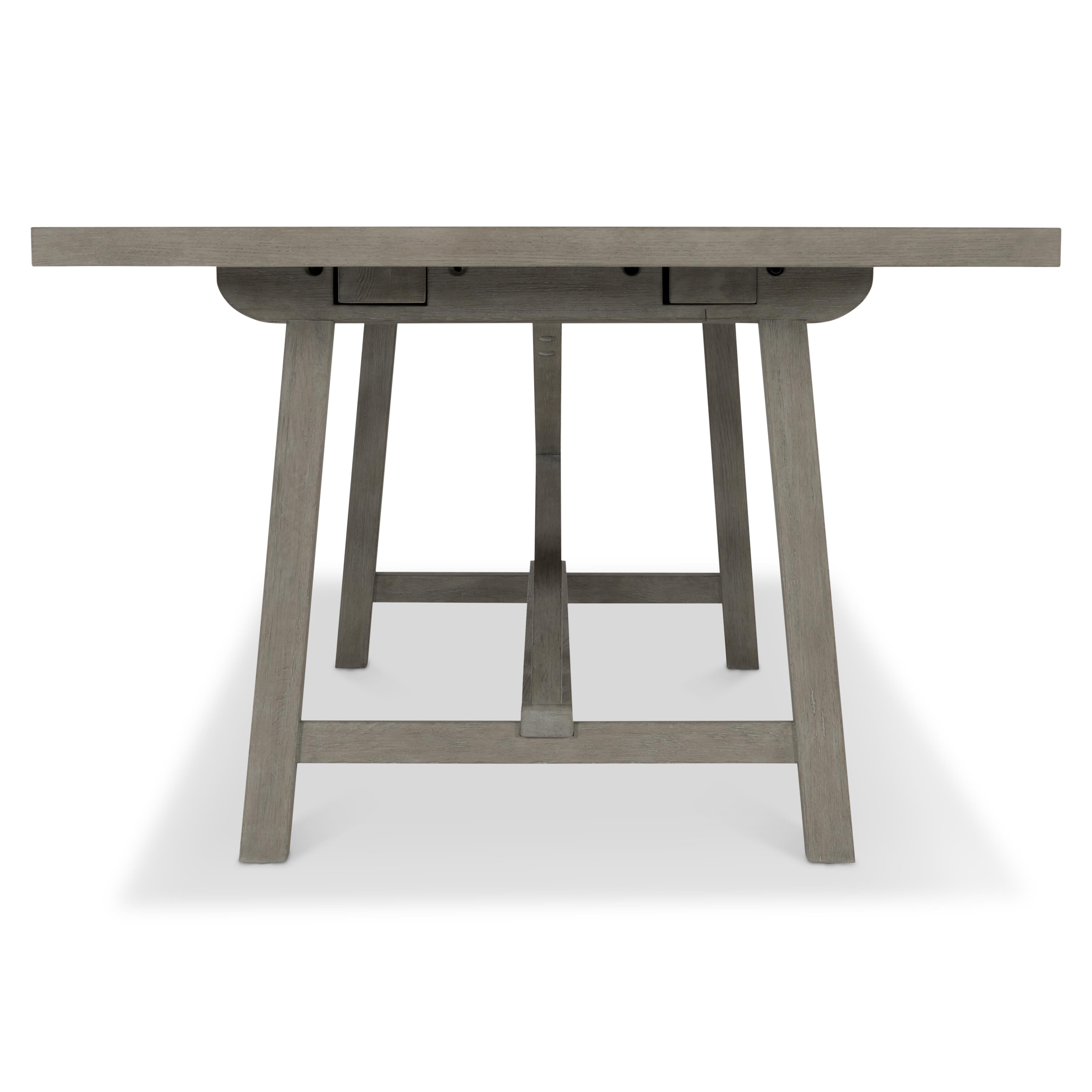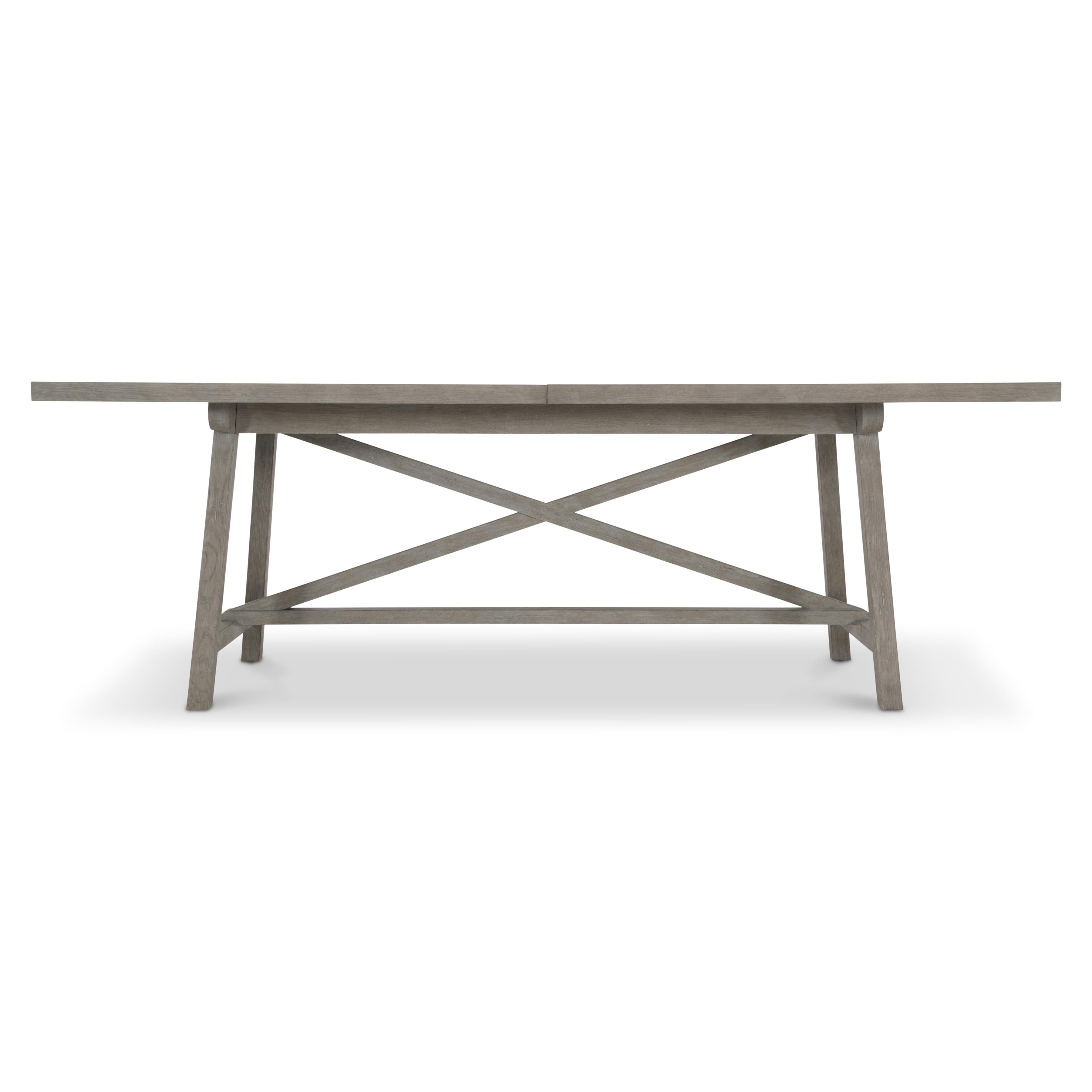 An X-stretcher and a washed finish give this dining table the look of a a modernized farmhouse table, perfect for both casual and formal settings