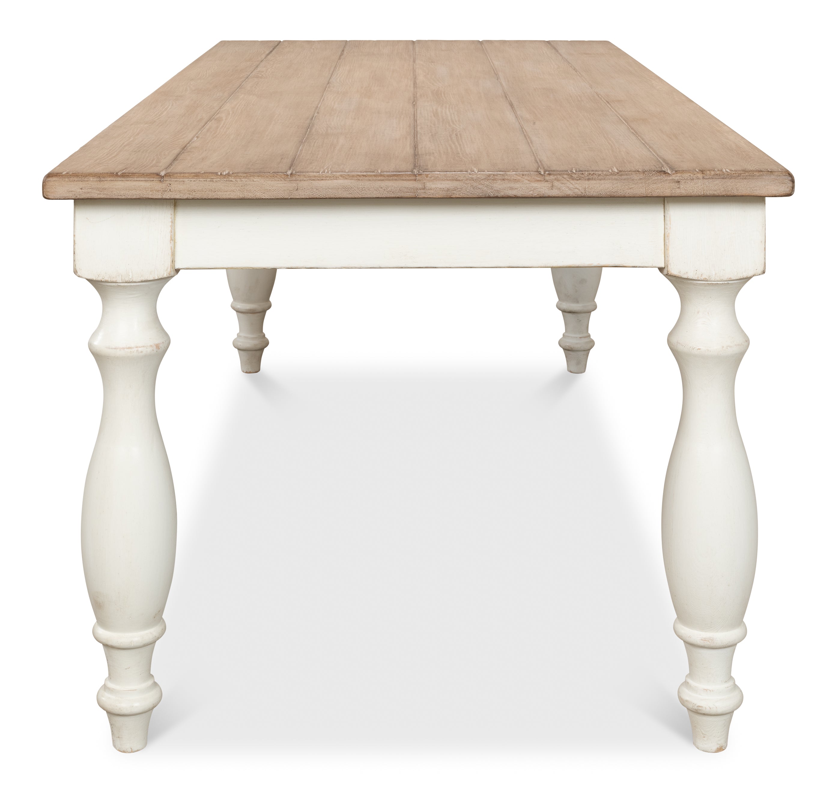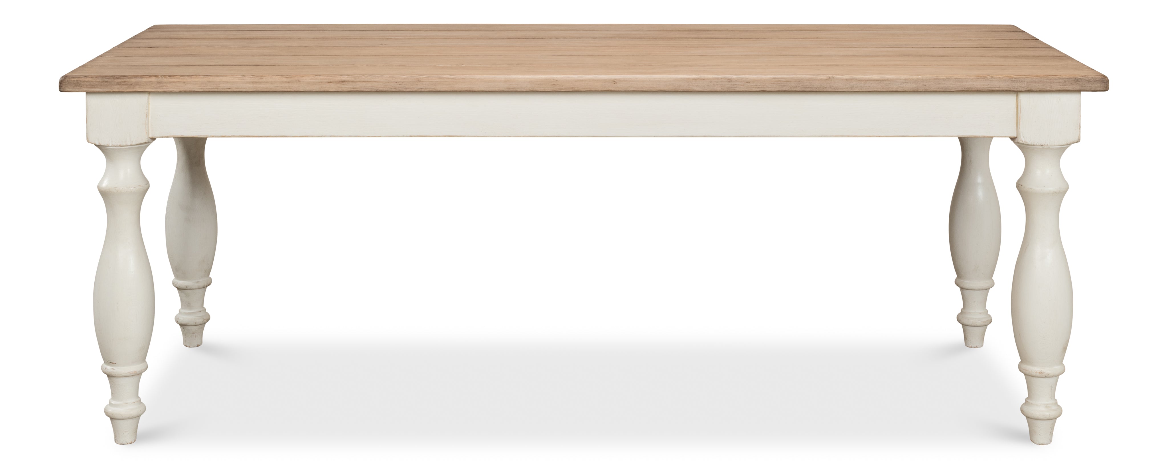 Inspired by the lifestyles of northern France, where families gather around large tables to share meals and make mameories,this dining table serves up historical style with great taste.Evocative and destined to be a classic in reclaimed in pine finished in antique white with a natural top.