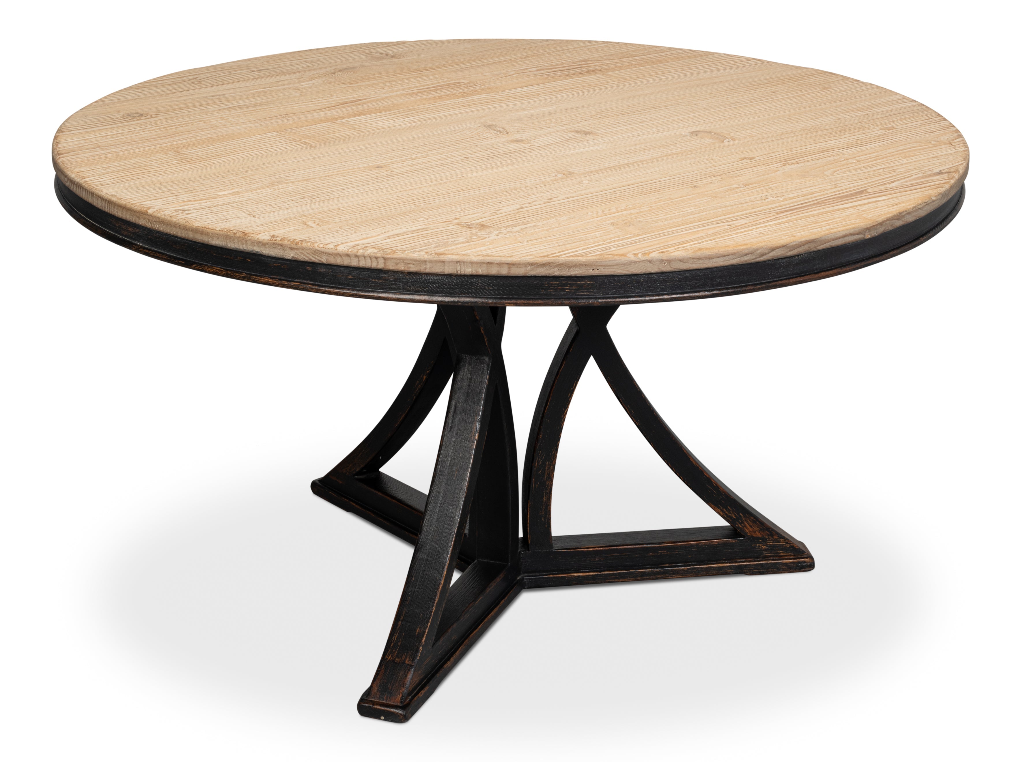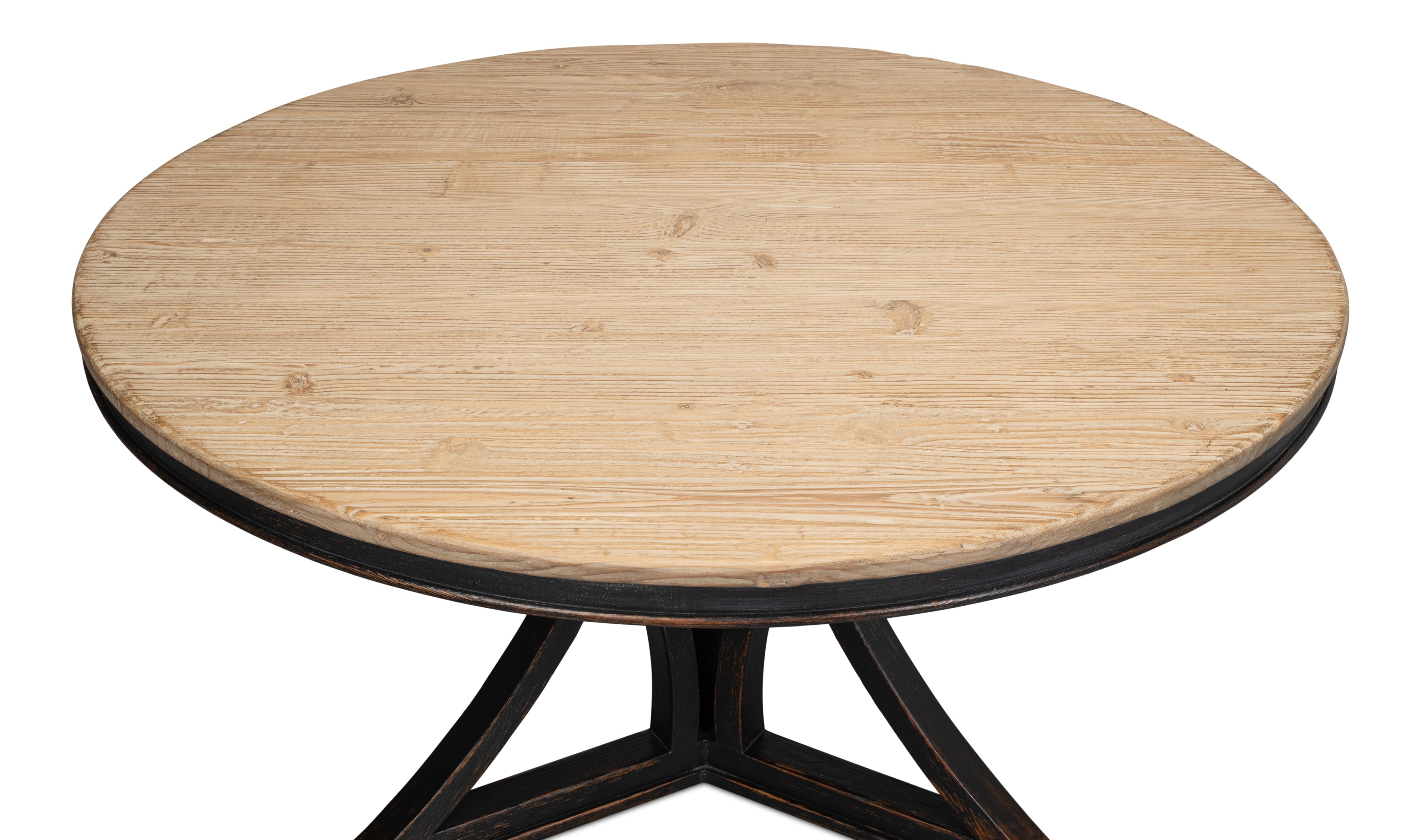 Graceful lines enhance any dining room and a popular 54" in diameter, this delightful table is given a natural top. Pine with Antique Black base.
