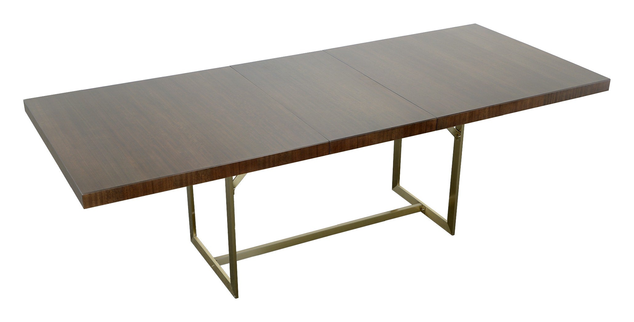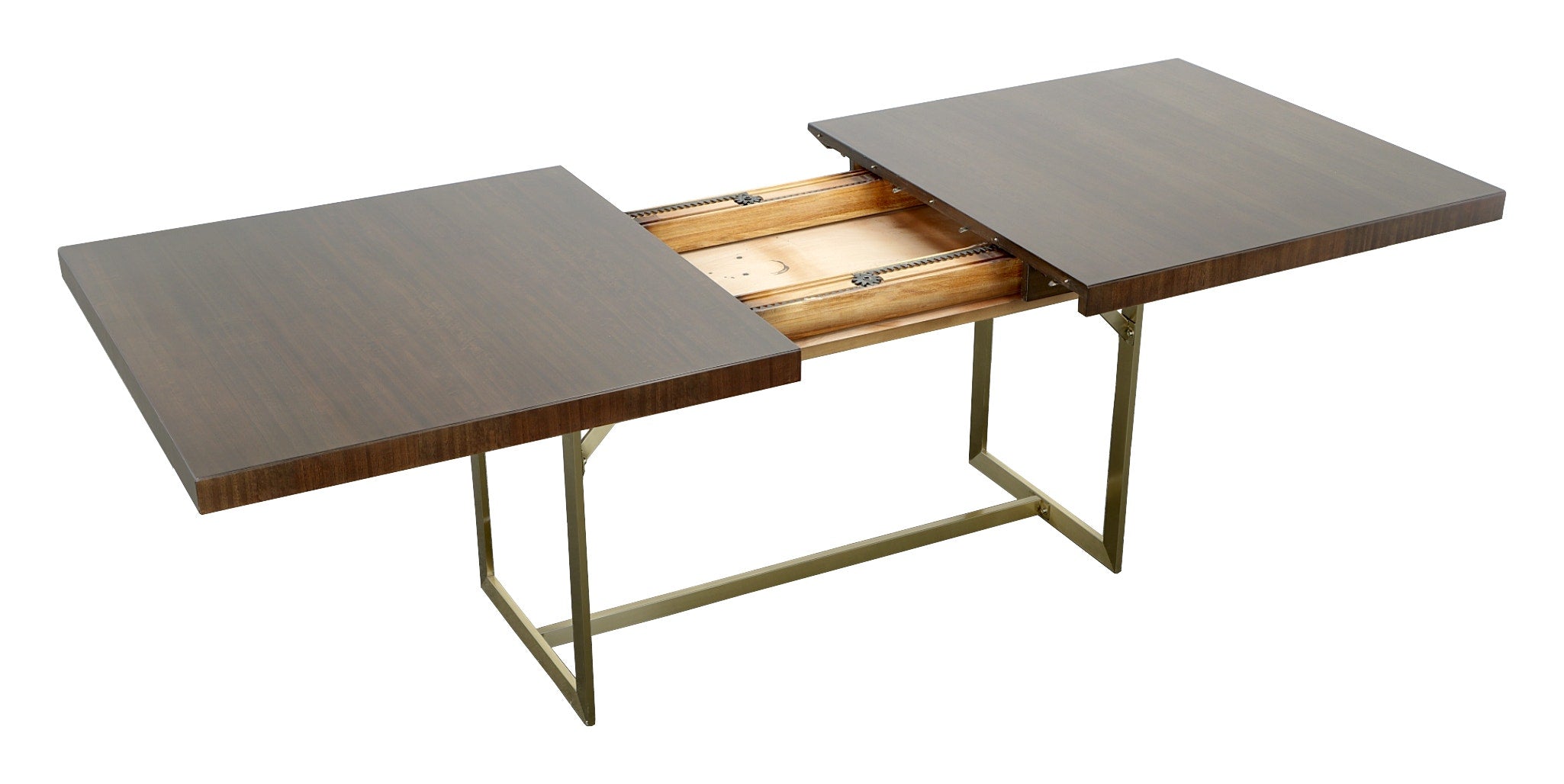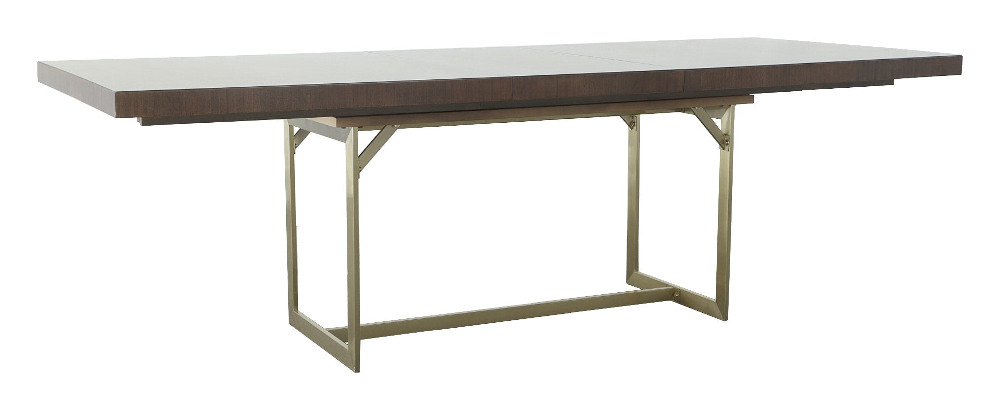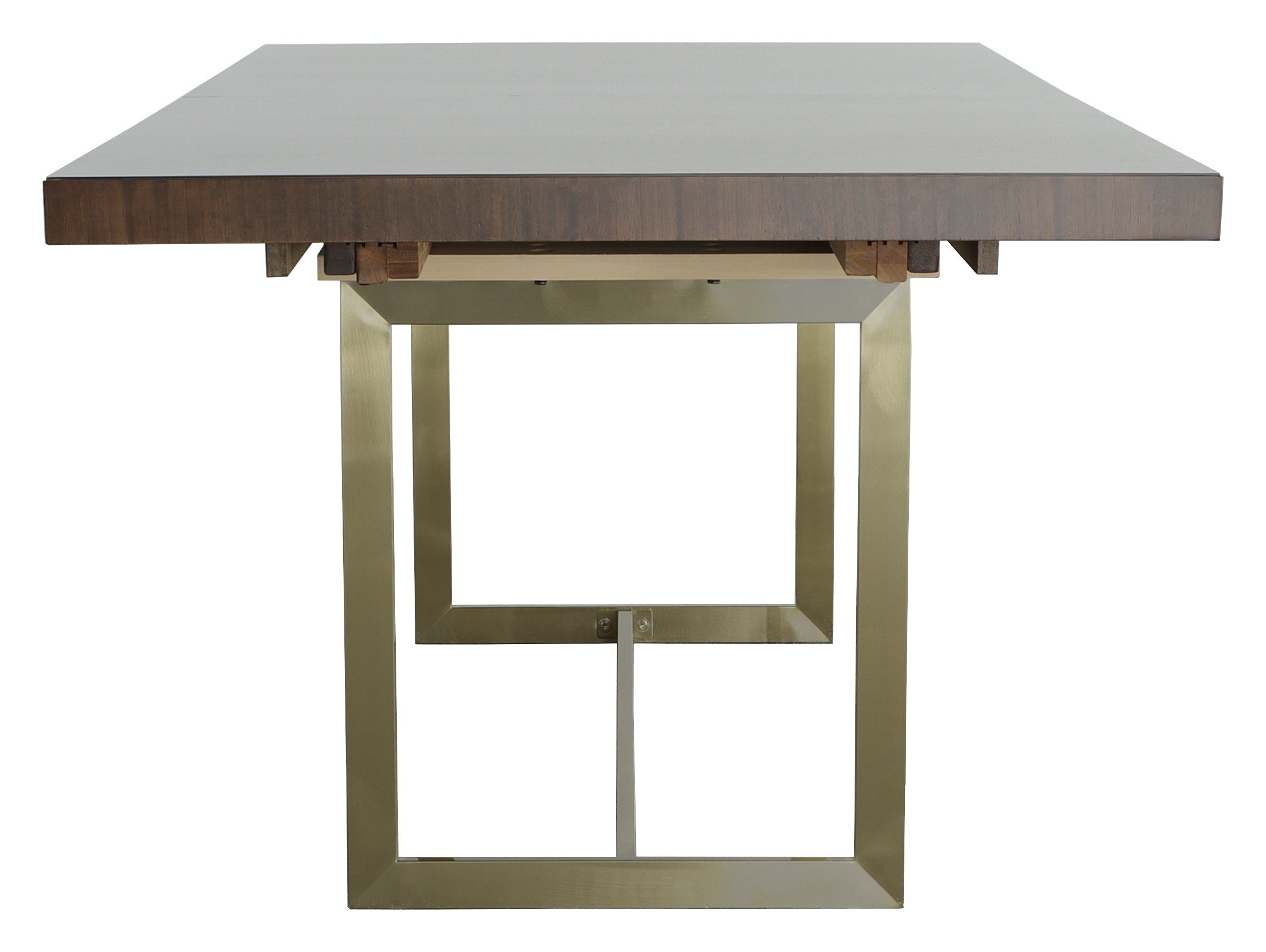 This table is all about simple style with major impact as it features a Champagne metal brass finished base to add a polished touch to the design. The top is quartered oak in Smoked Stone finish to help highlight the grain detail for a sleek and stylish aesthetic. With the leaves removed at 76" wide, the Clement Dining Table would also work beautifully as an oversized writing desk and is sure to complement minimalist, Scandinavian, or even modern farmhouse-styled designs. As a dining table it can seat several people, and the design easily accommodates chairs or dining benches!