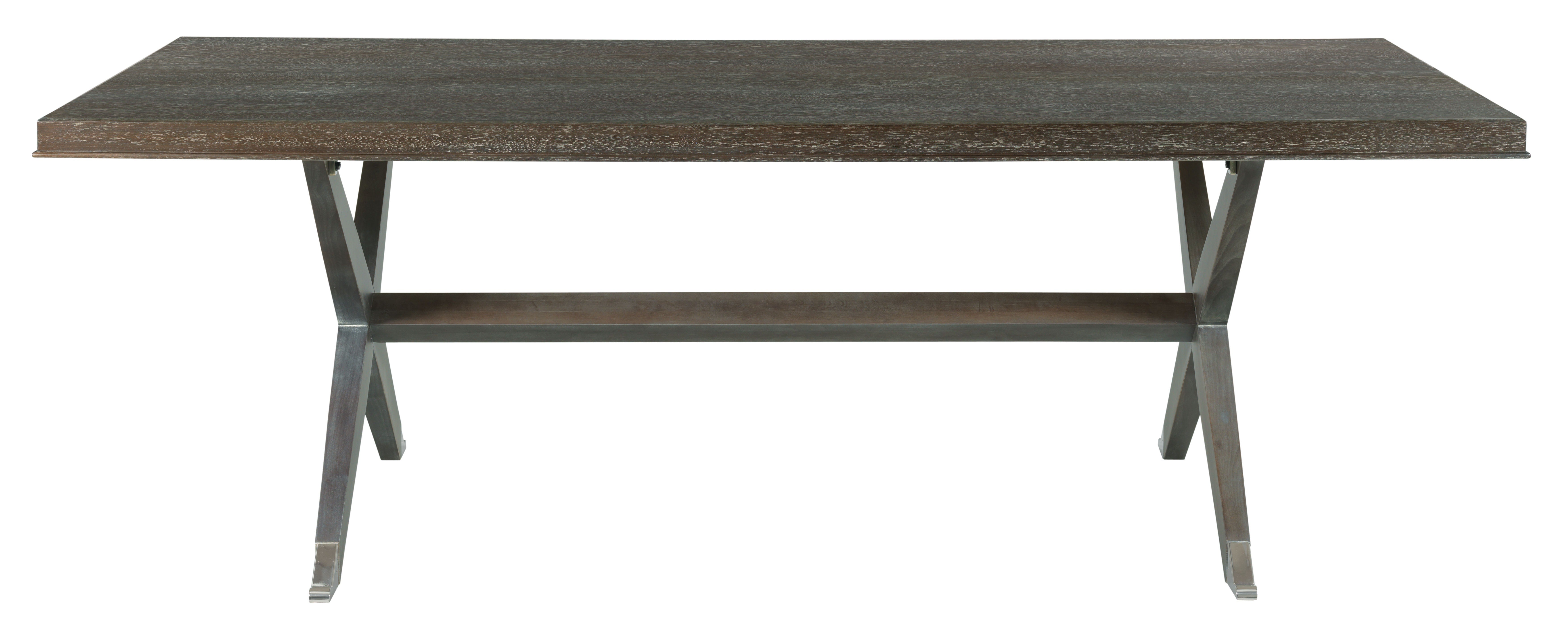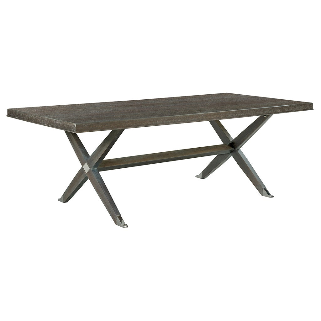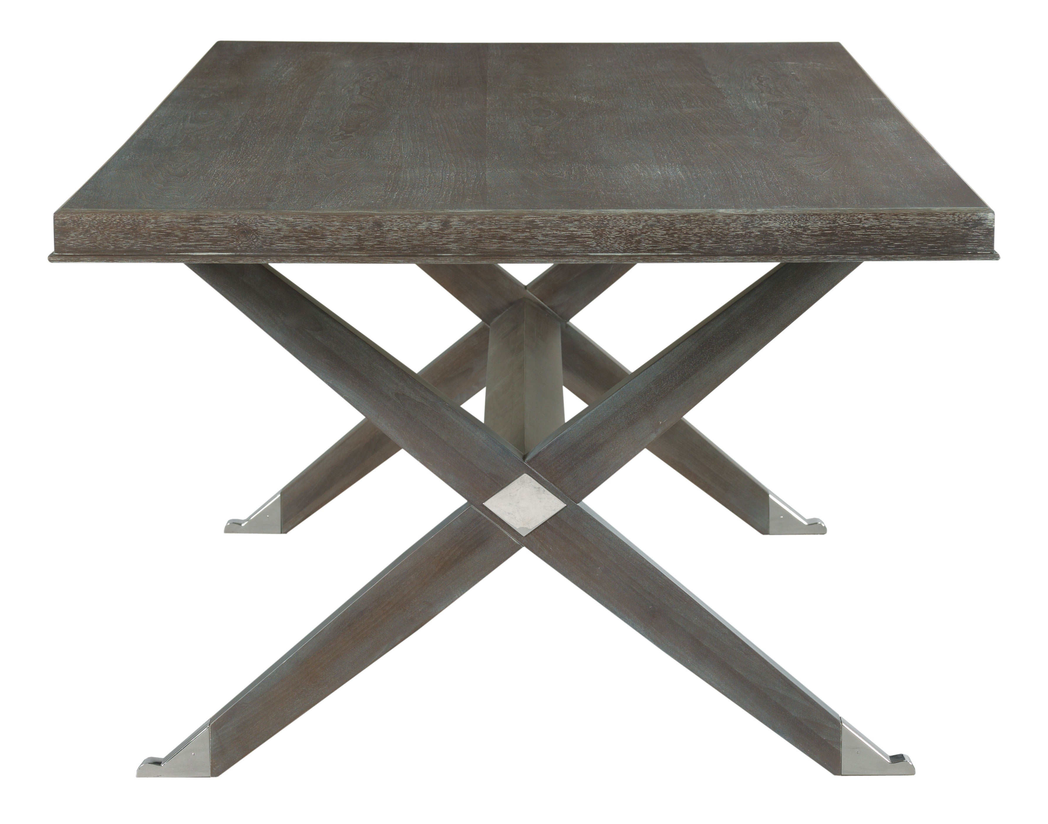 Giving a nod to the current popularity of geometric design styles, Whitby's rectangular shape is accentuated by an X-base with a stretcher bar and metal accents.