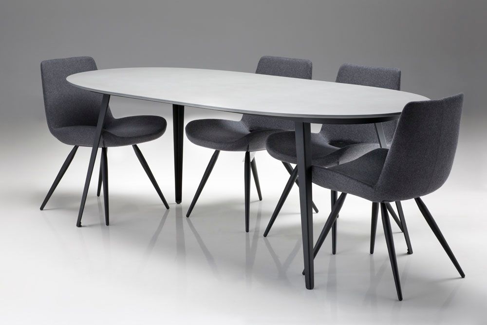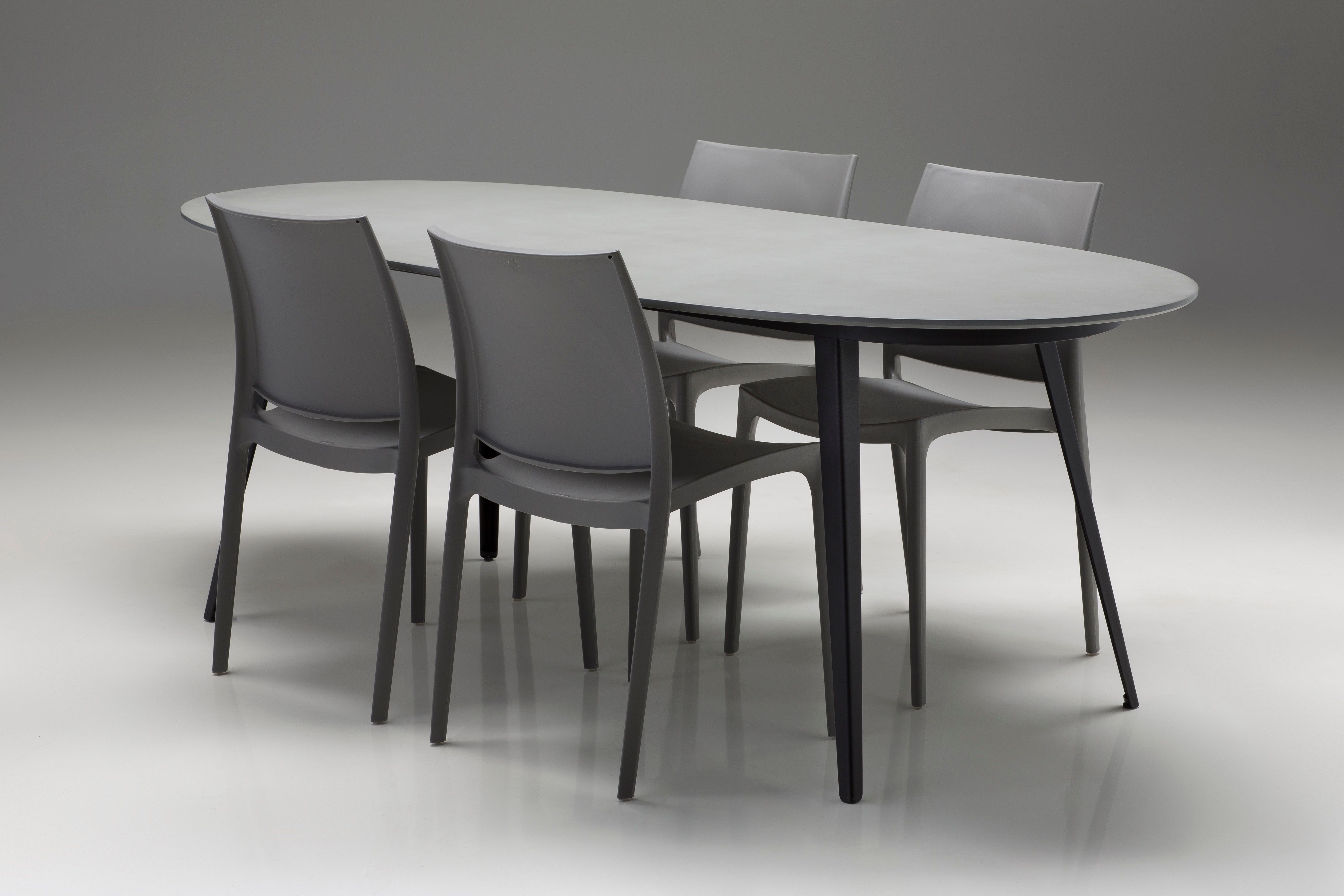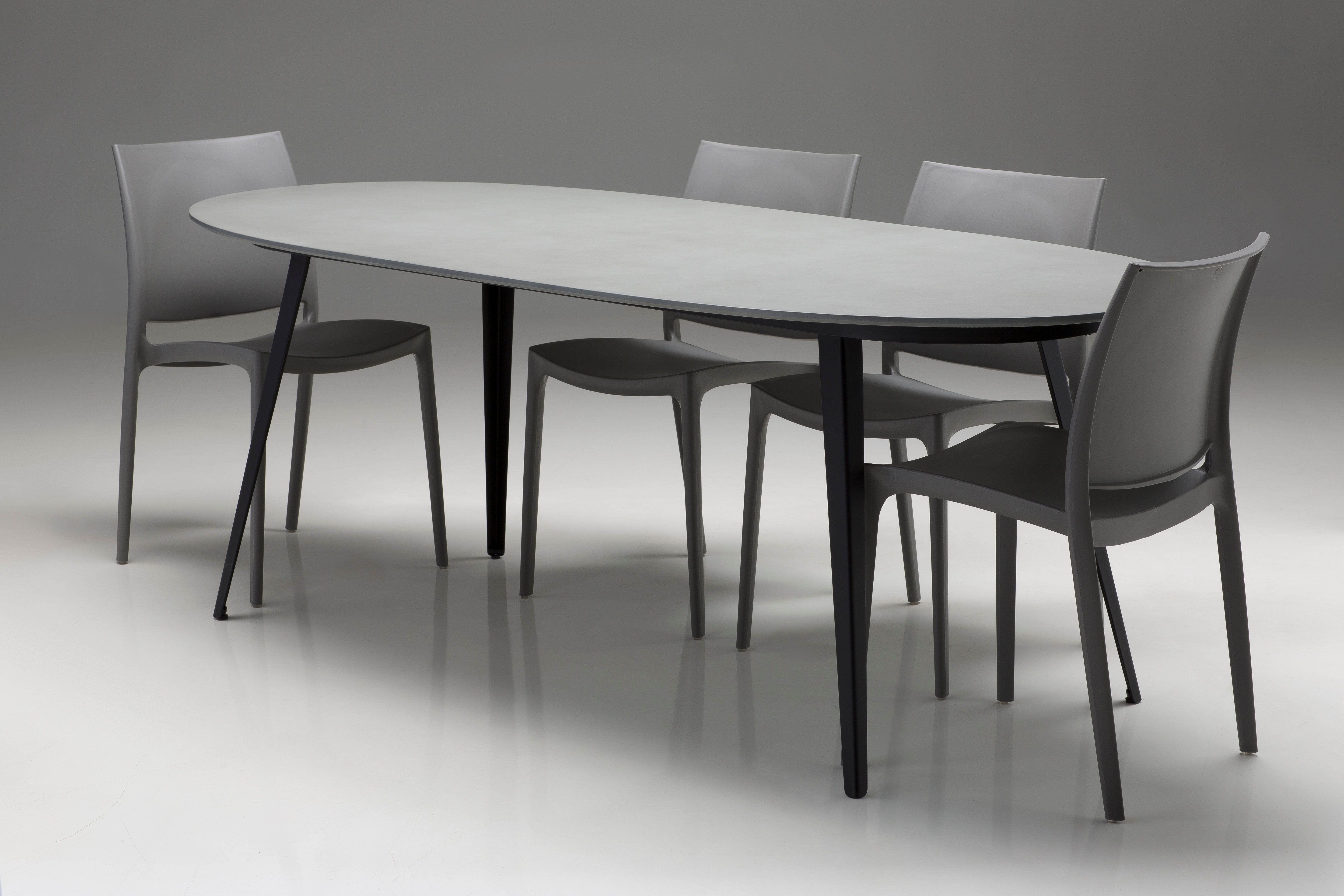 TULUM Oval Dining Table Matte Grey Epoxy Concrete Texture, Black Galvanized Steel | Mobital - DTA-TULU-GREY-BLACK