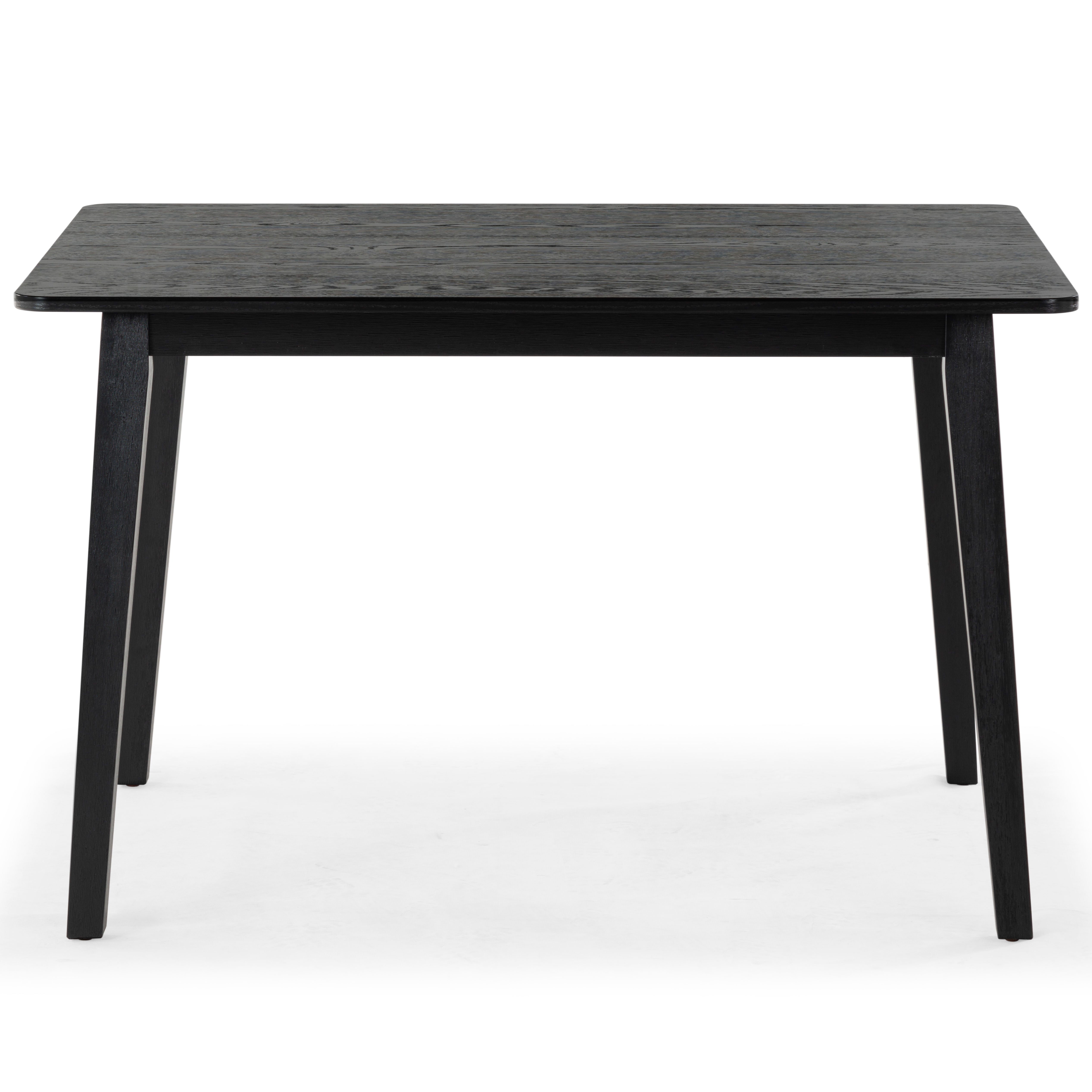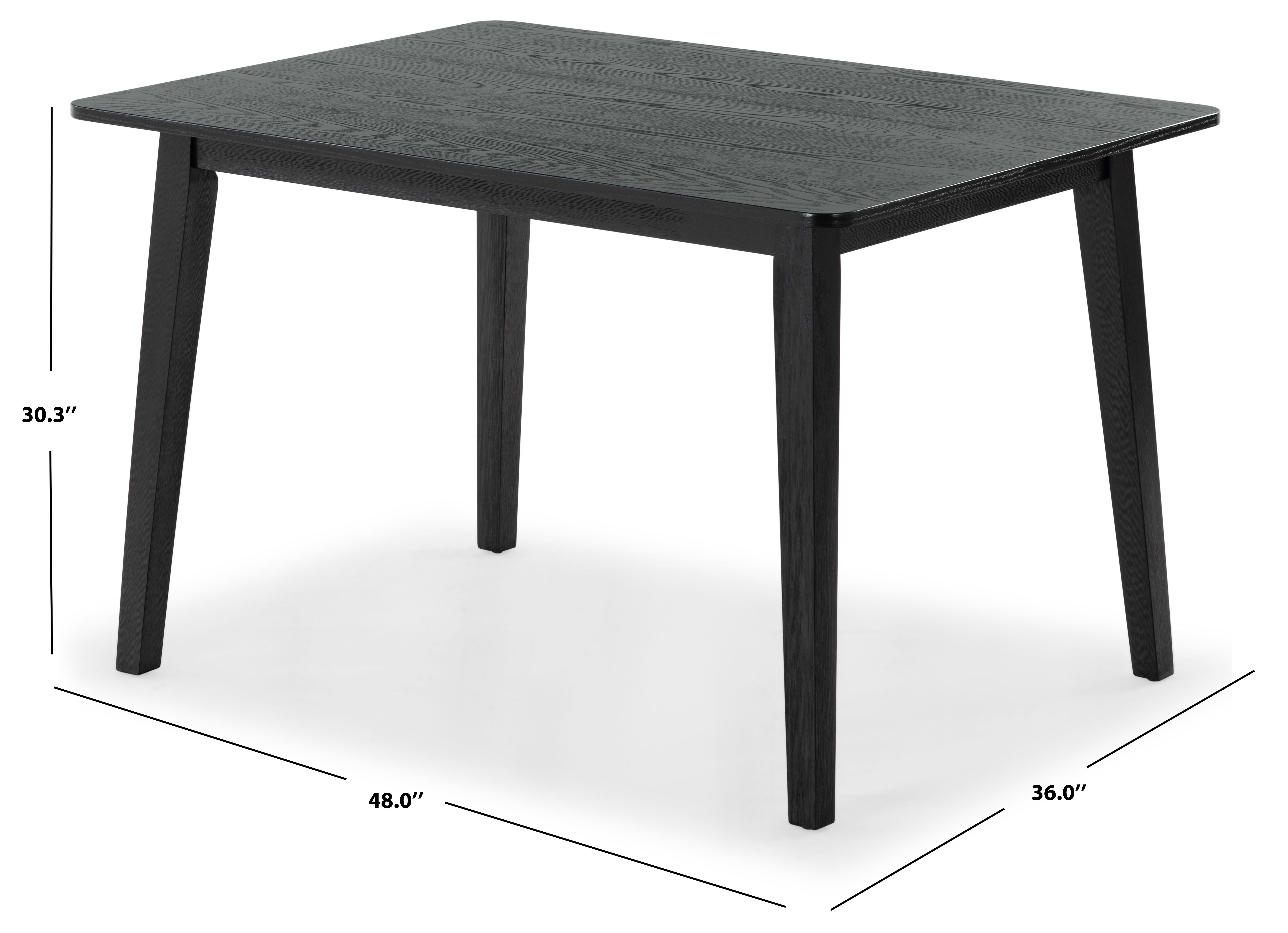 Introducing the Bellalexa 48" wood dining table. Beautifully crafted from rubberwood, oak veneer, and manufactured wood, it radiates a classic and contemporary feel. Dyed in sophisticated black, this dining table blends effortlessly into any decor, filling your dining space with a timeless appeal. Functional yet fashionable, this Bellalexa dining table adds a touch of grace to your home, creating a welcoming space for quick breakfasts, long lunches and everything in between! Its sturdy construction ensures stability and robustness, while providing ample space for your family and friends. Its sleek, clean lines combined with a charming black finish redefine elegance. This Bellalexa dining table isn't just a piece of furniture; it creates joyful memories around meals, hearty laughter and shared stories. Dive into the fusion of style and durability with the Bellalexa 48" wood dining table. Add a touch of sophistication to your dining experience today!