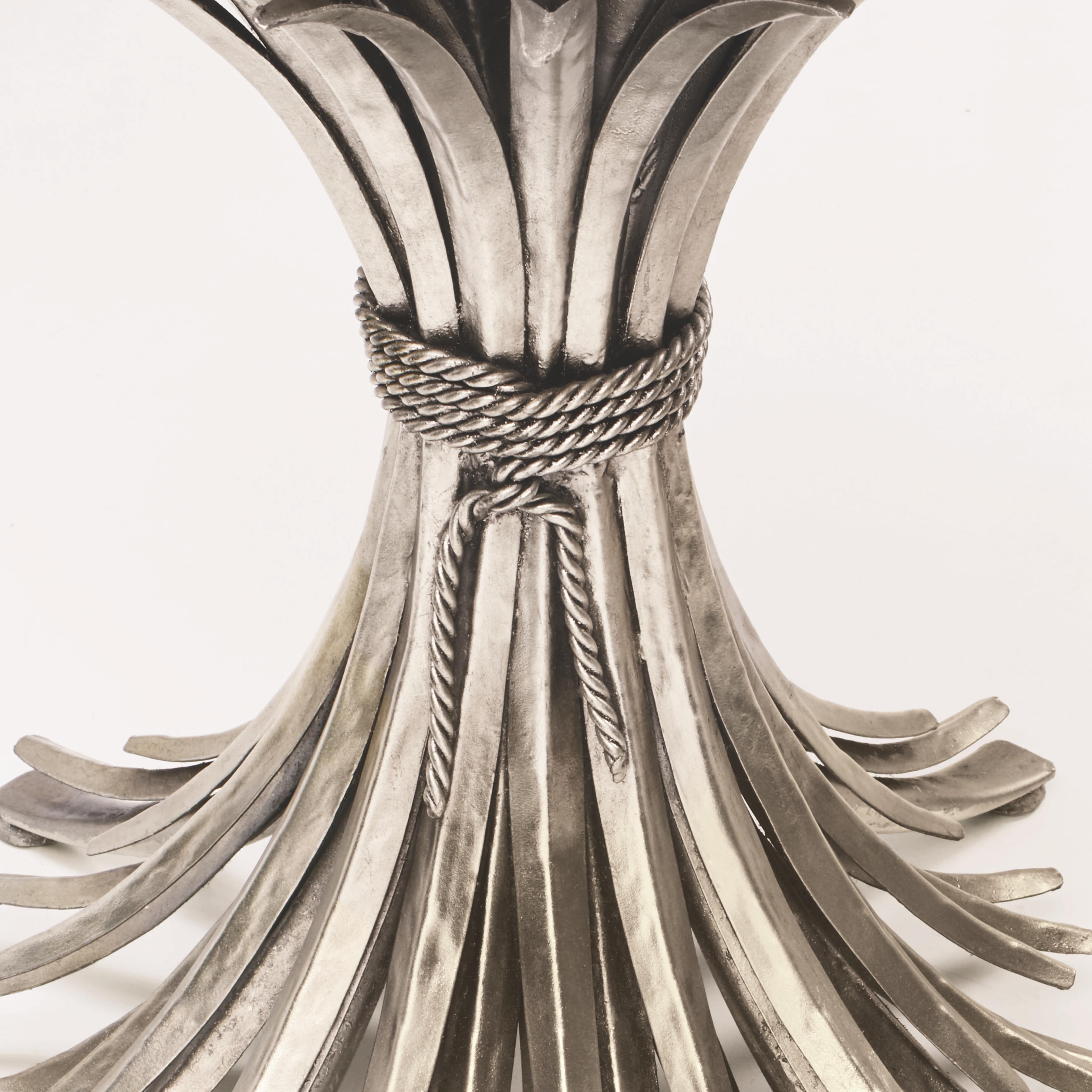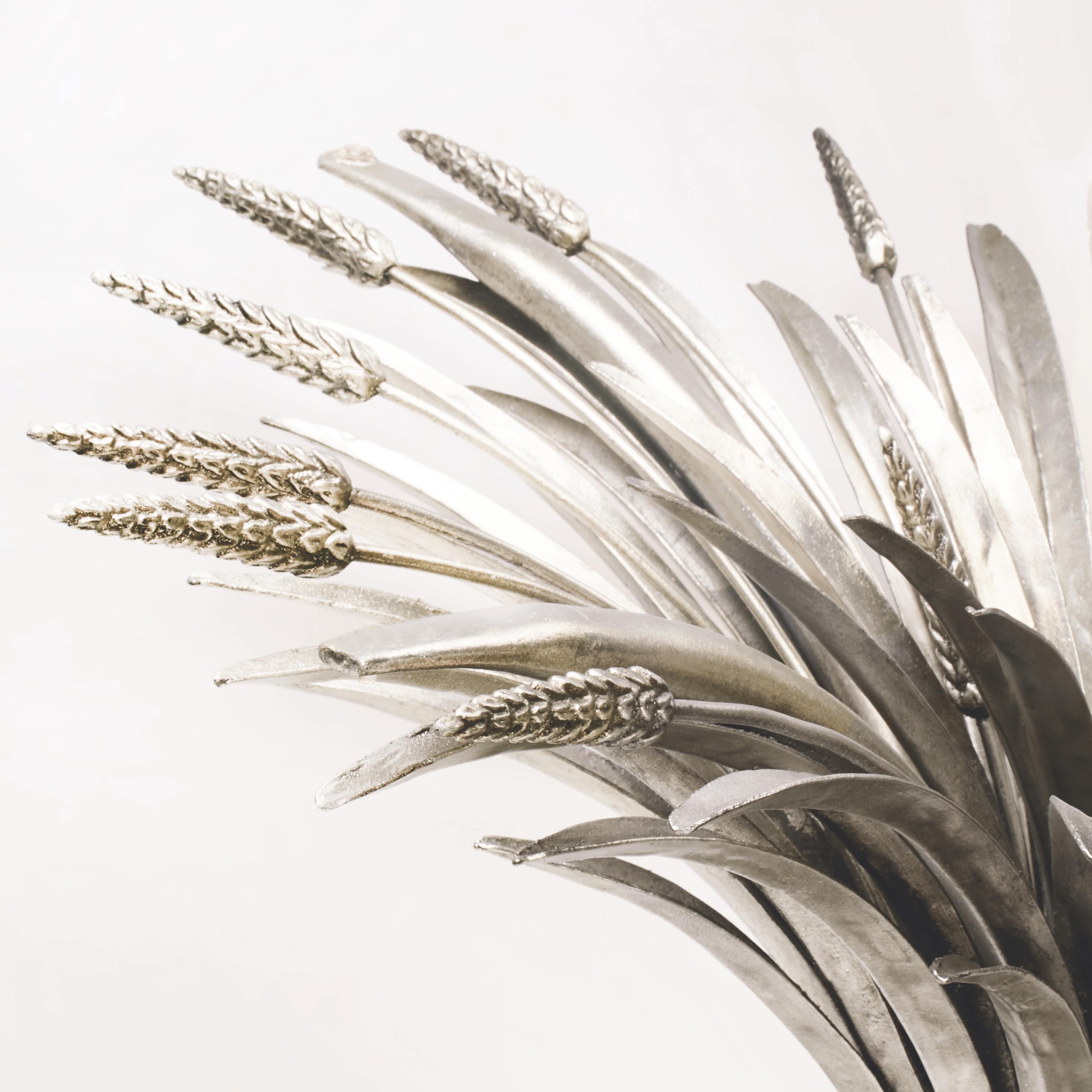Cast aluminum base with wheat motif design and plated metal leaves in Silver Leaf finish