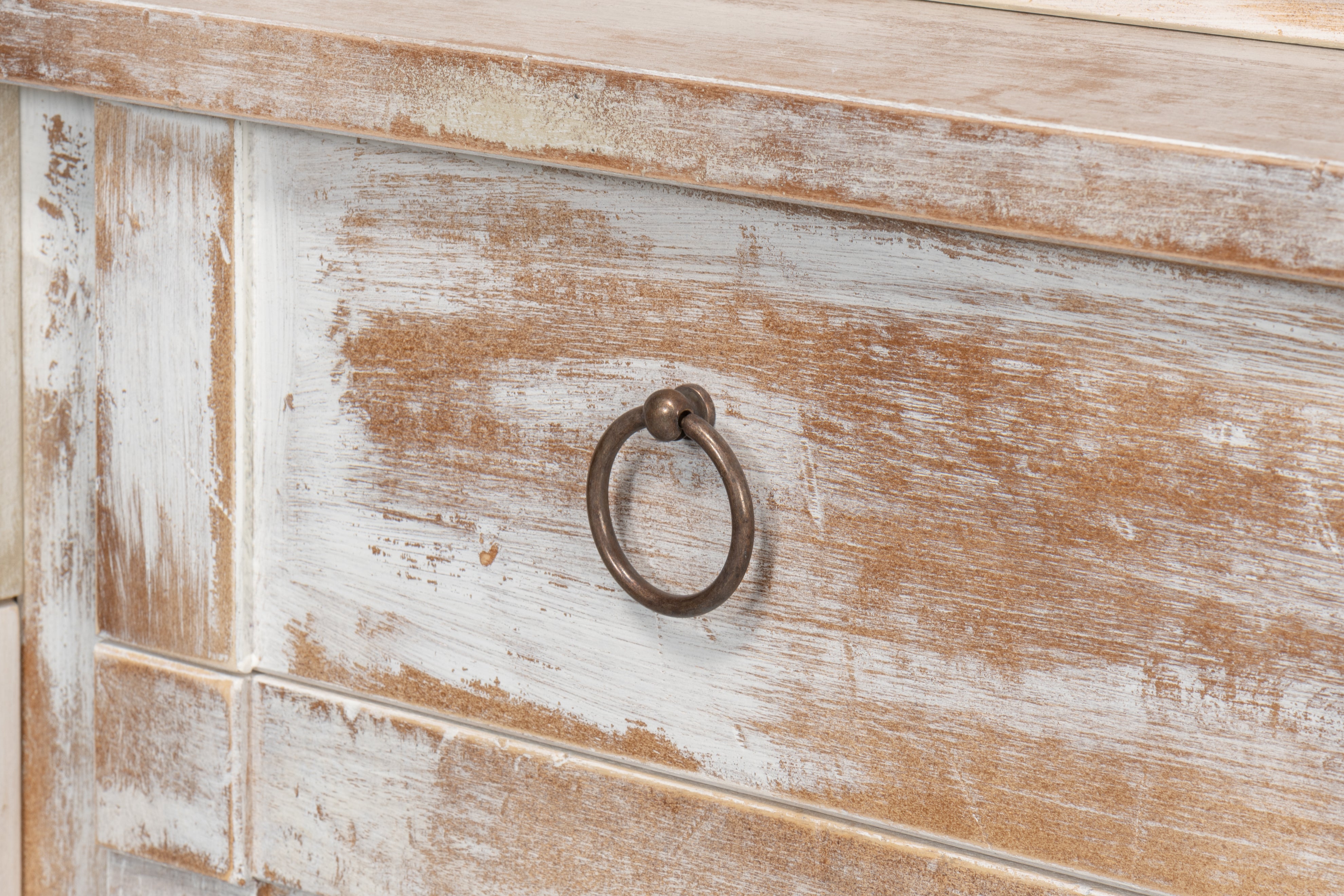 Solid Pine, Disrupted White Finish - Center Media Unit And Hutch