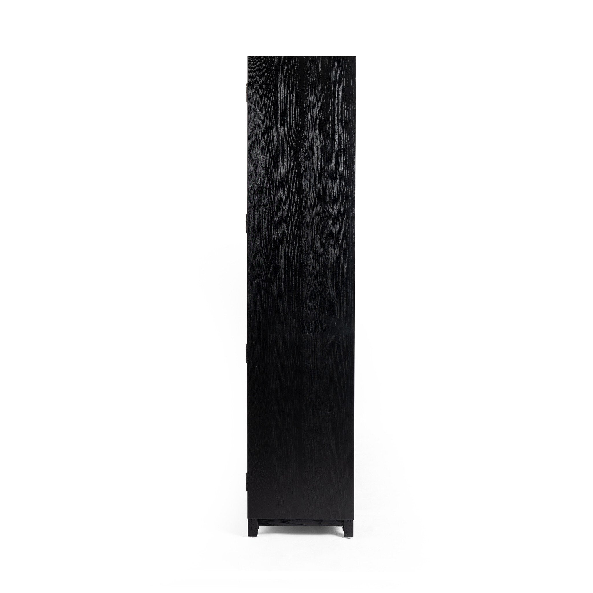 Millie Panel and Glass Door Cabinet - Drifted Matte Black | Four Hands - 235949-001