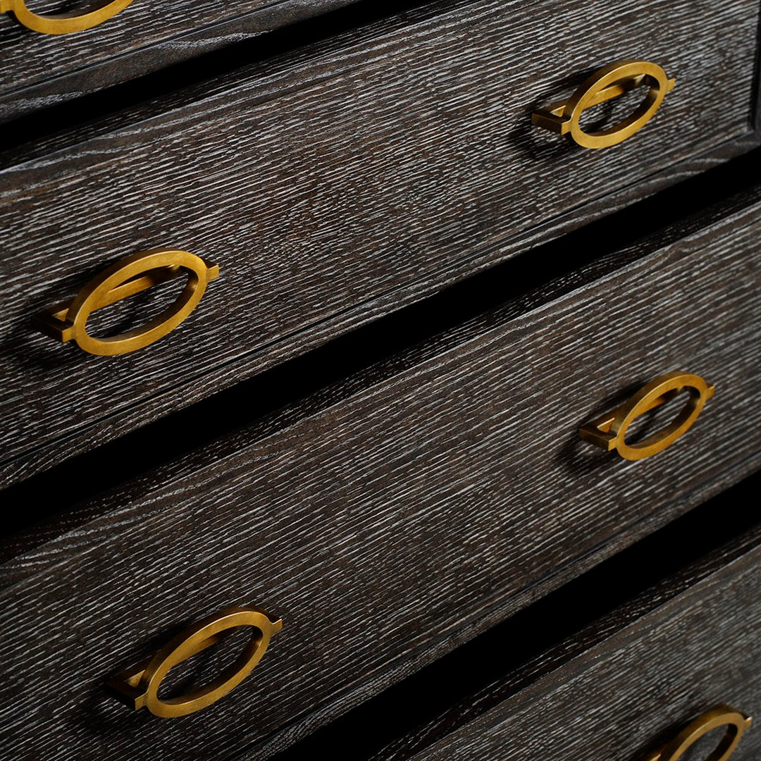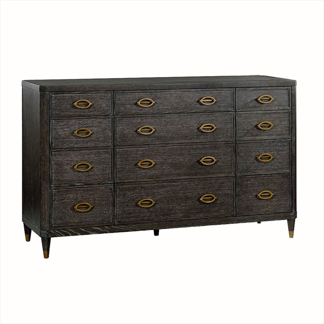 Our Conner Dresser features a smooth top with clipped corners, twelve soft-close storage drawers, and hand-cast, oval shaped brass hardware and ferrules