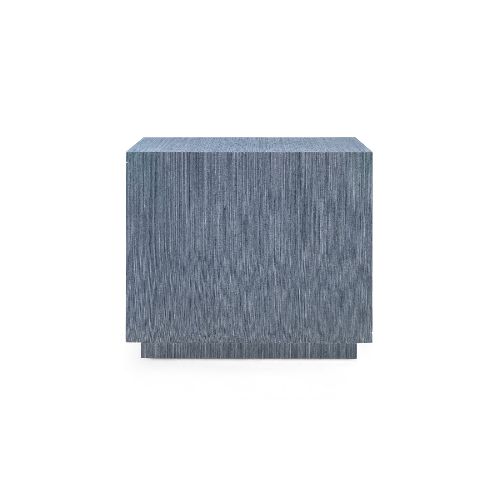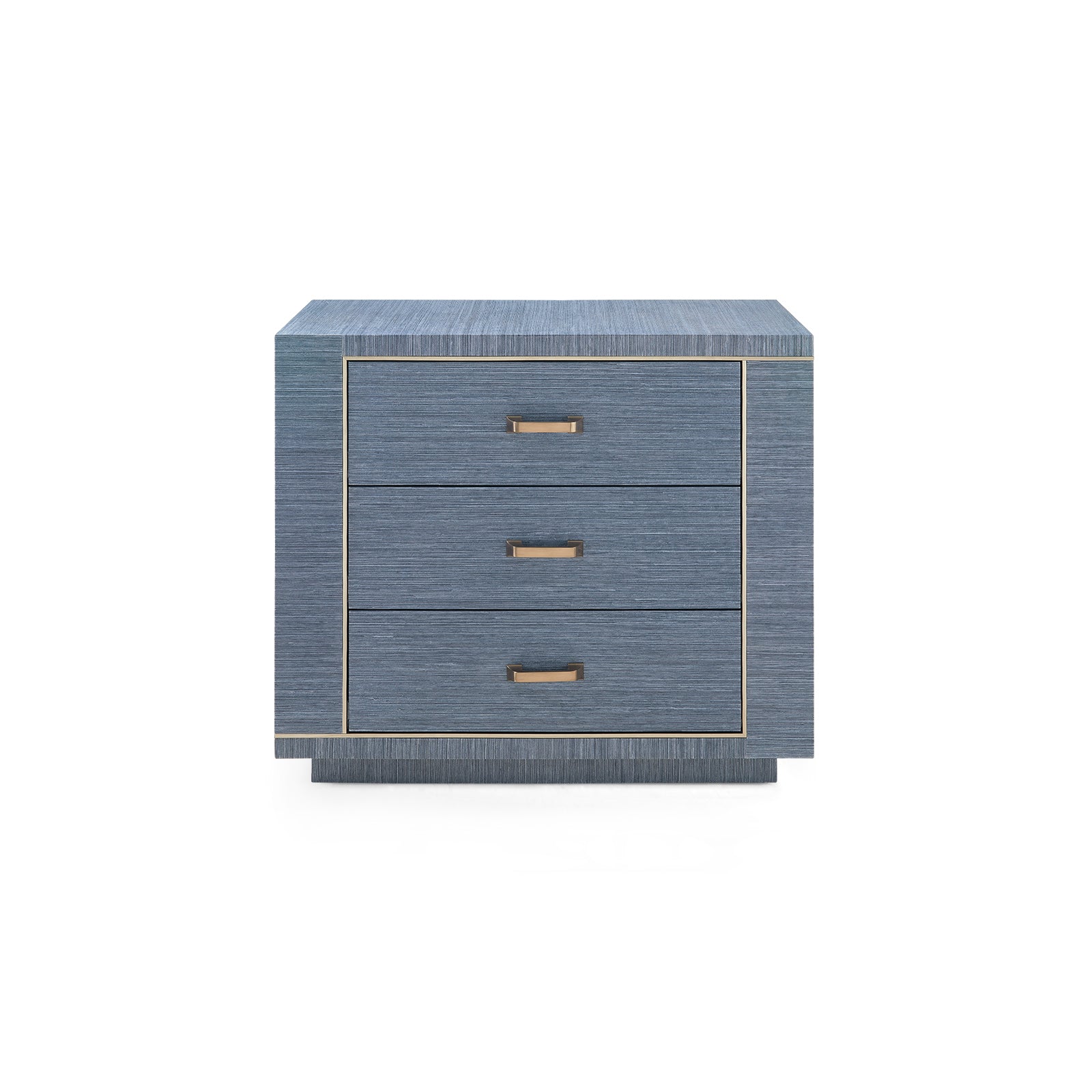 The Ethan 3-Drawer End Table showcases a modern aesthetic with a strong rectangular shape that adds bold style to any space. It features asymmetrical satin bronze details and handles, giving it a unique, streamlined look. Available in two shades of grasscloth, this end table combines sleek design with functional storage, making it a versatile and sophisticated addition to your home.