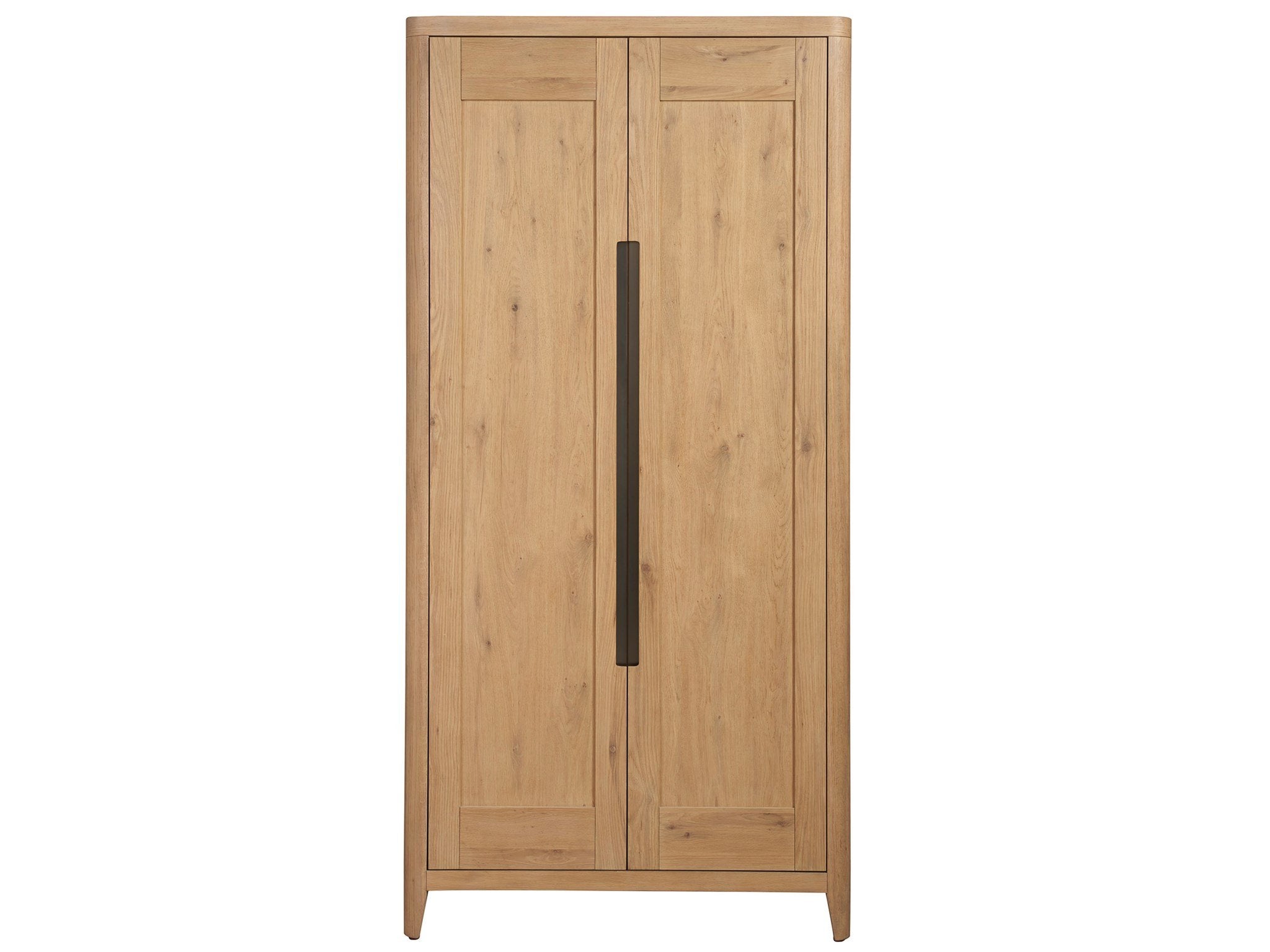 The Walker Wardrobe merges simplicity with sophistication in its design, featuring two doors that open to reveal thoughtfully arranged interior shelving. Its organic Natural Finish: is complemented by deep-hued hardware, offering a piece that harmonizes with a multitude of design aesthetics. This wardrobe stands as a testament to understated elegance, providing both functionality and a warm, inviting presence in any space.