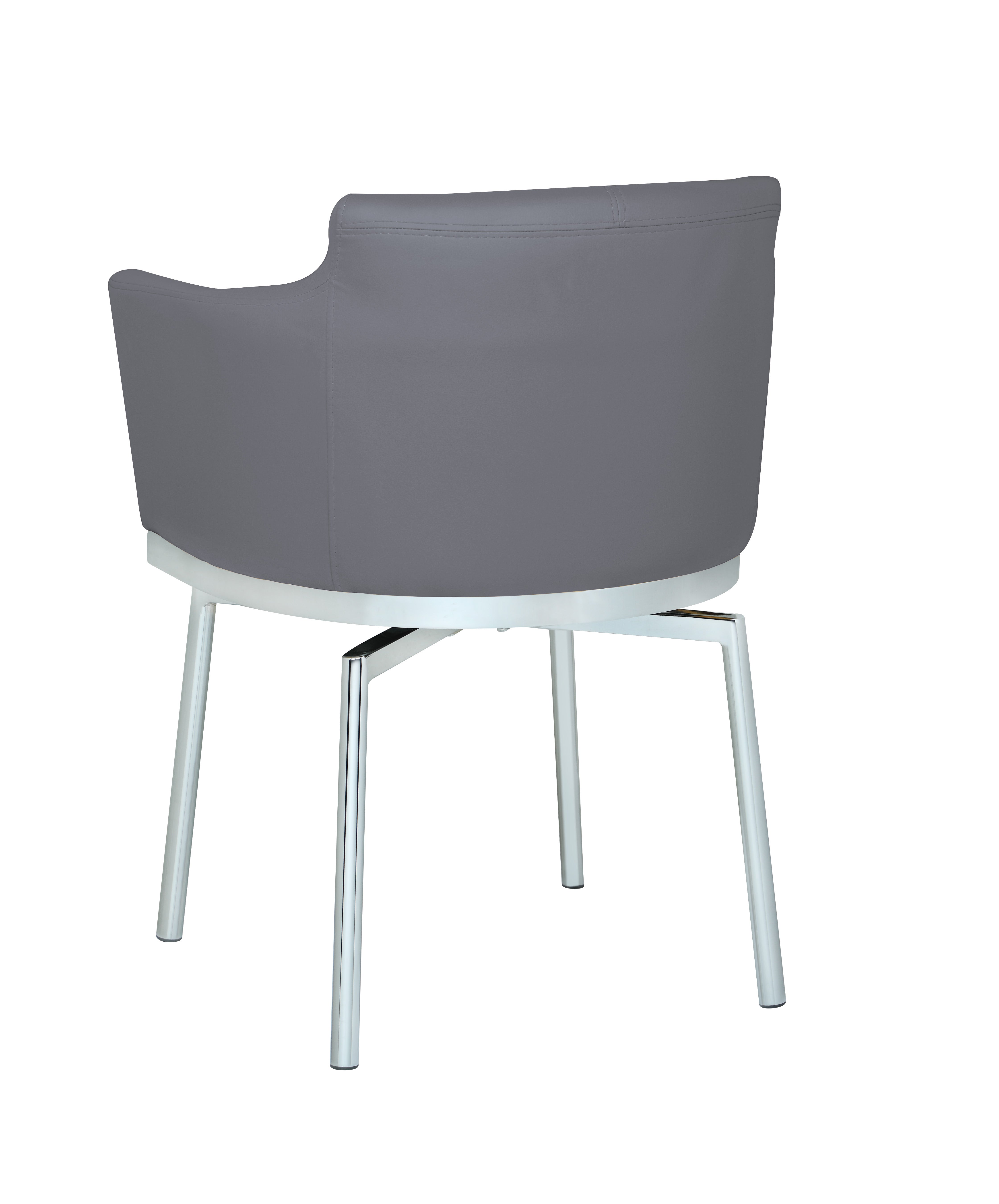 Update your spaces with this club-style bucket memory swivel side chair, which features a PU (faux leather) seat with a chrome frame and legs.