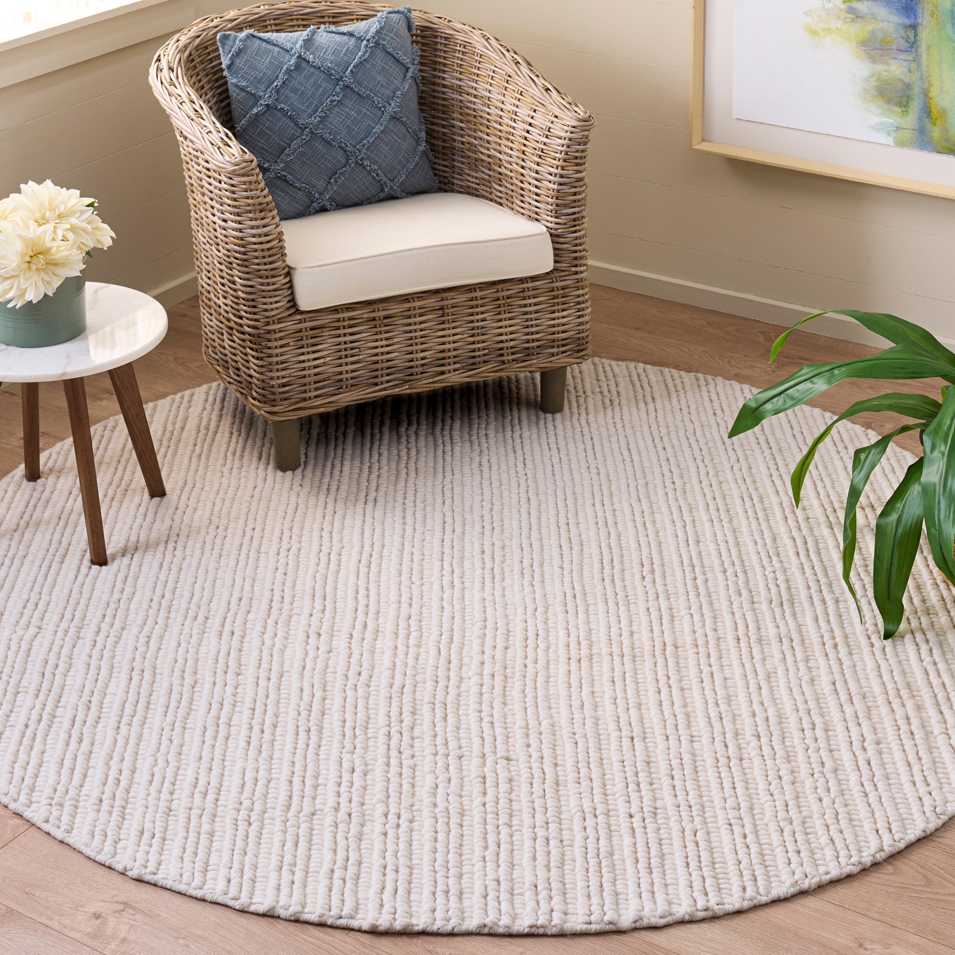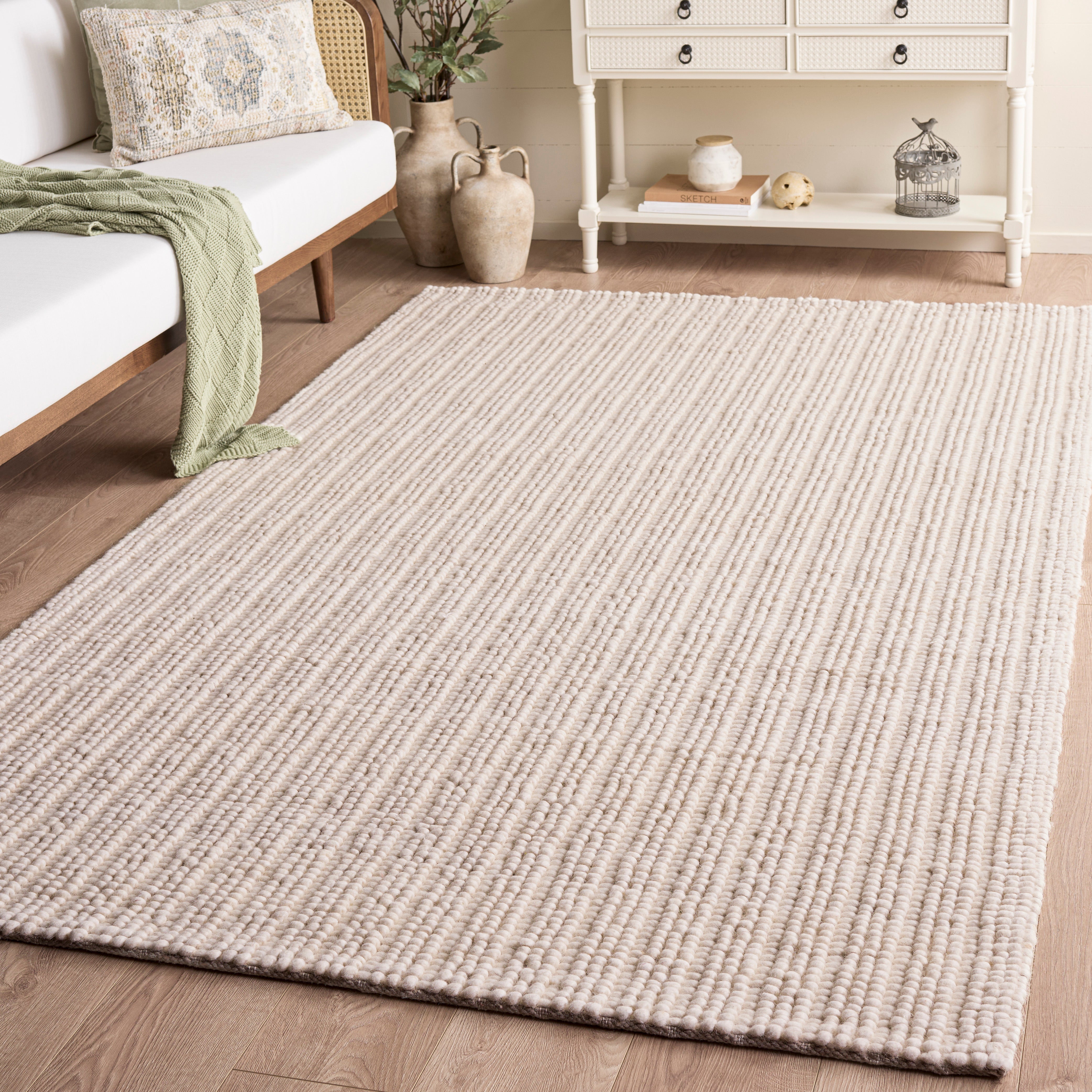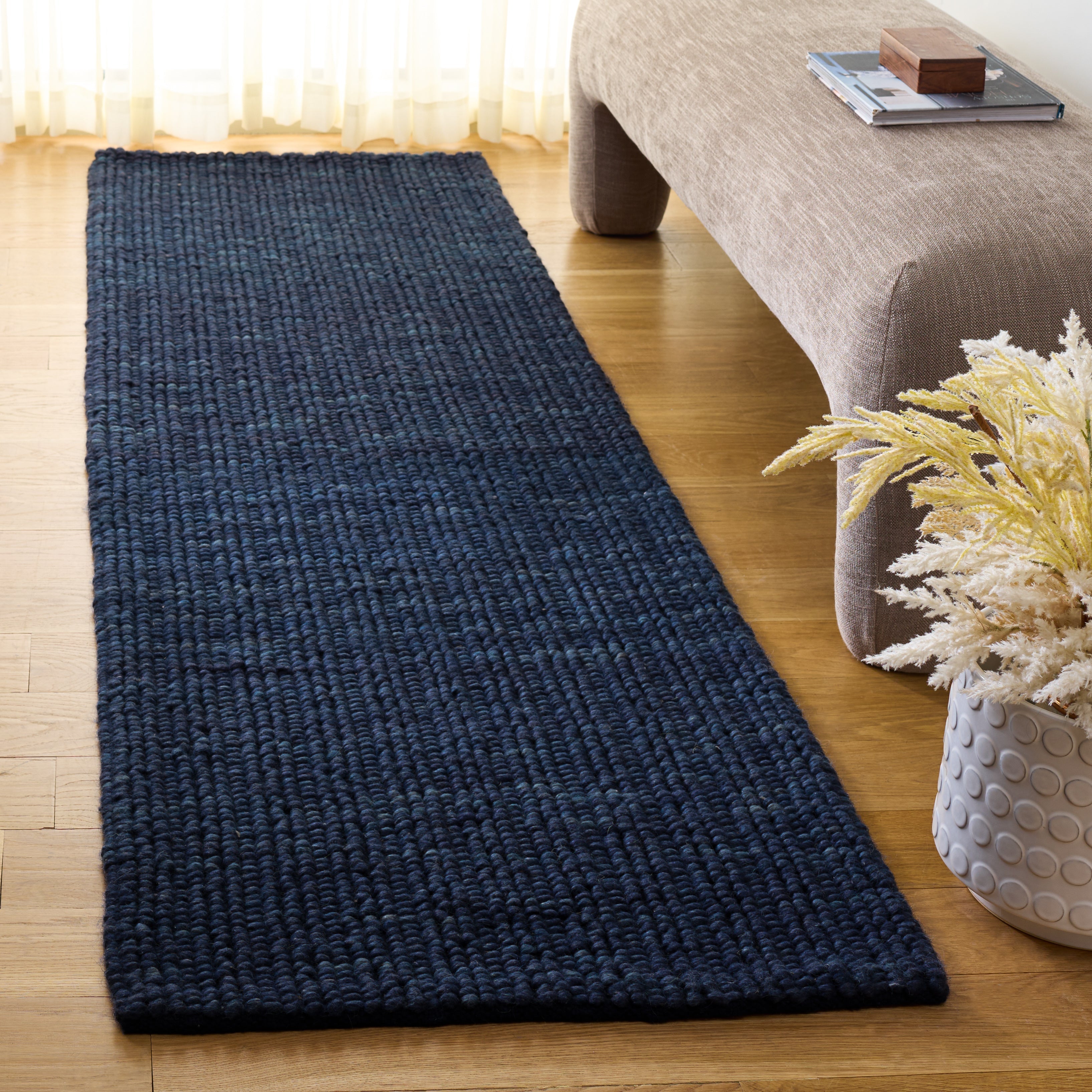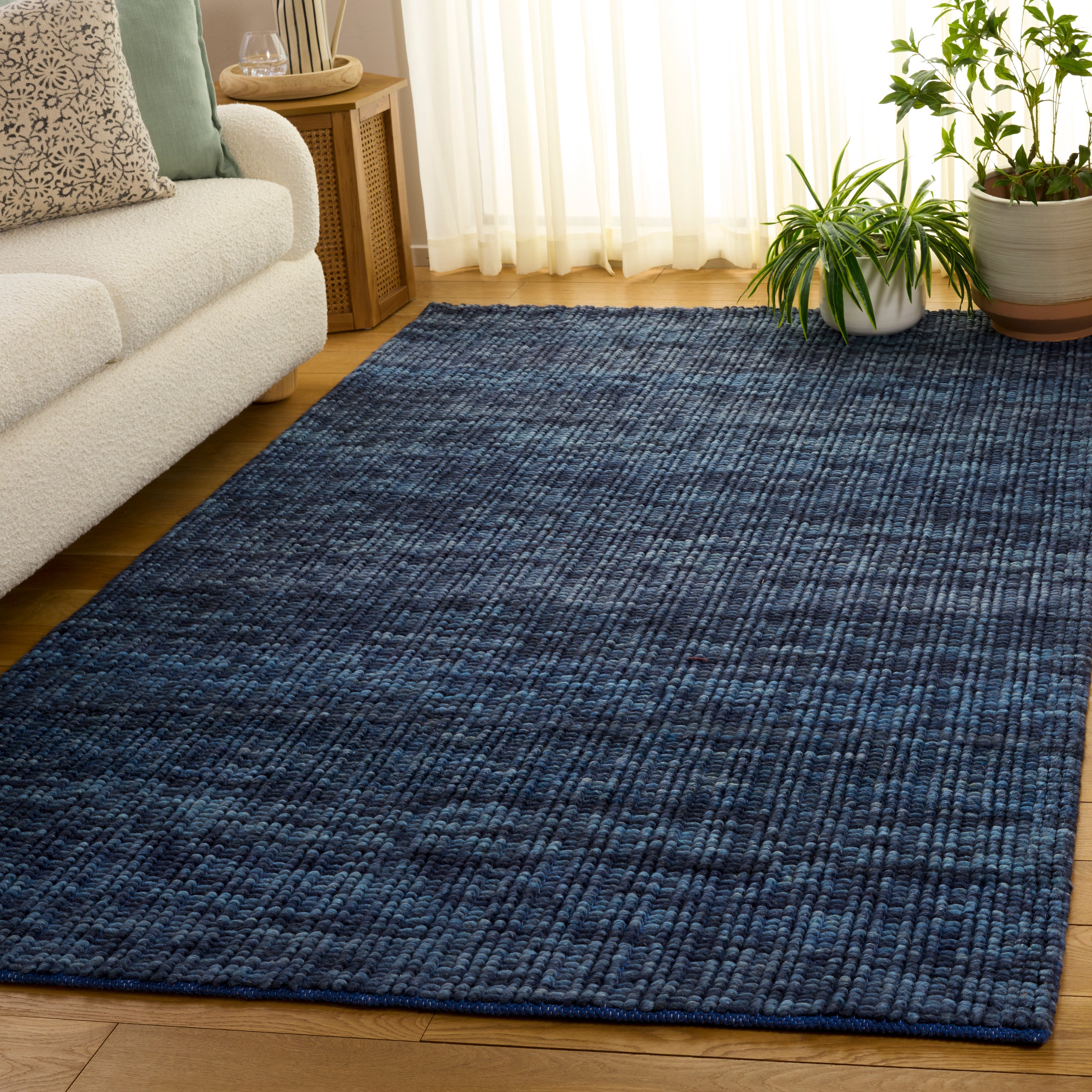 Expertly handwoven, this rug captures the essence of traditional craftsmanship while providing a modern aesthetic. Its flat 1/2-inch height ensures a seamless fit in high-traffic areas, allowing for ease of movement without tripping hazards. Its minimalist design focuses on texture and material, providing a classic backdrop to highlight your furniture and decor.