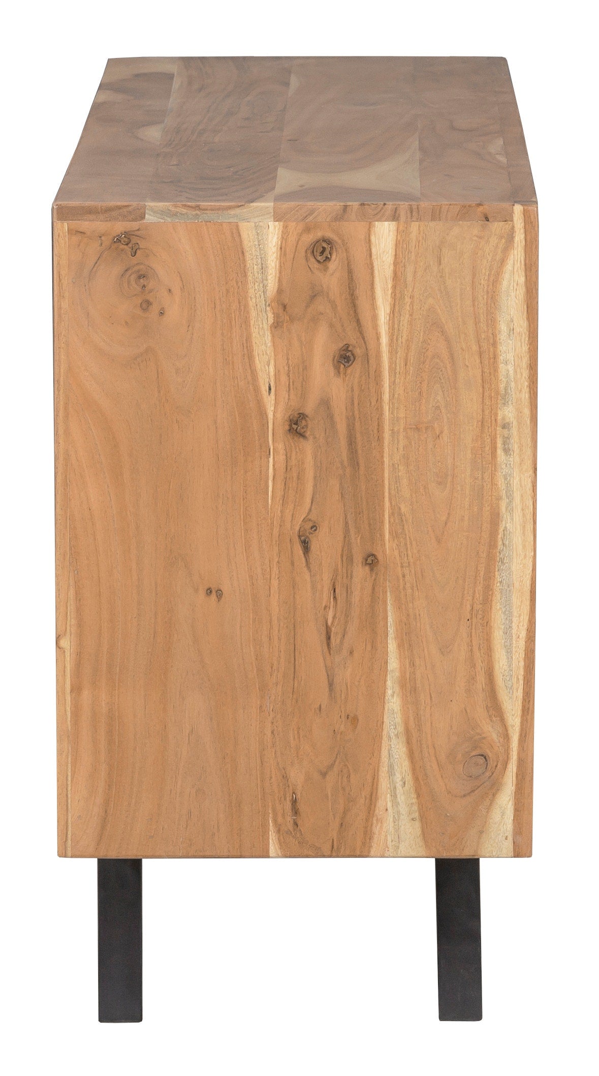 Inspired by the elements of nature, the Desert Storm Credenza is crafted from acacia wood and features sandstone veneered door fronts with uniquely colorful veining.