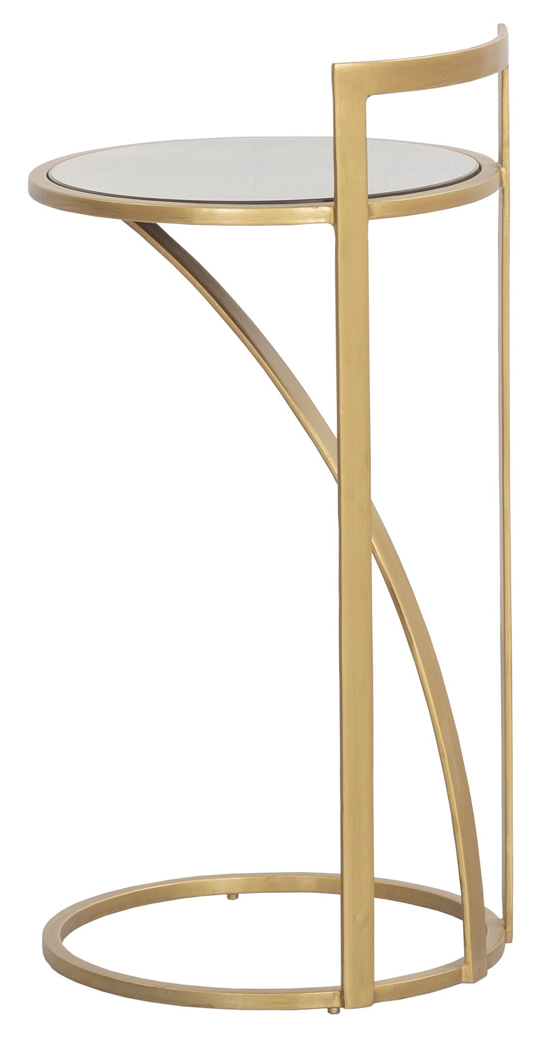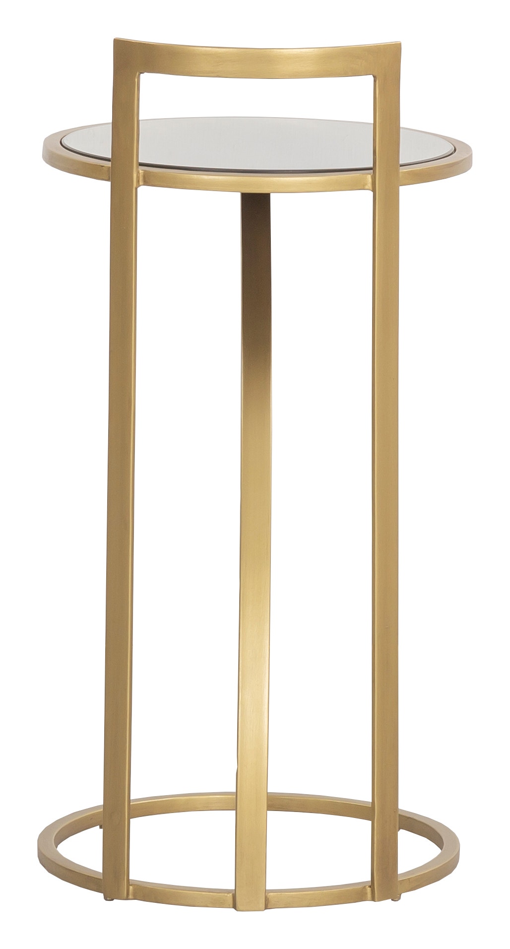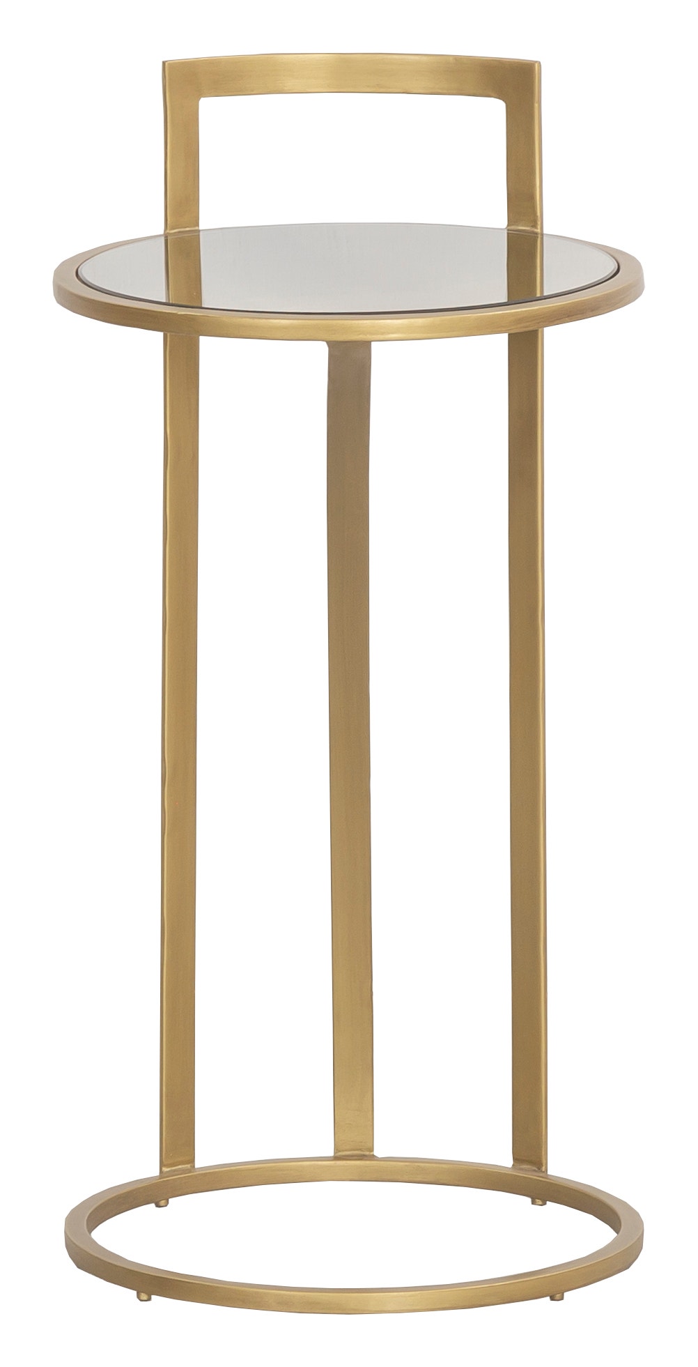 Simple, yet highly functional. Our French 75 drink table features a handhold to easily move this table beside your favorite Fairfield chair to hold your favorite libation of choice. Gold finished metal and glass top accent this smart drink table.