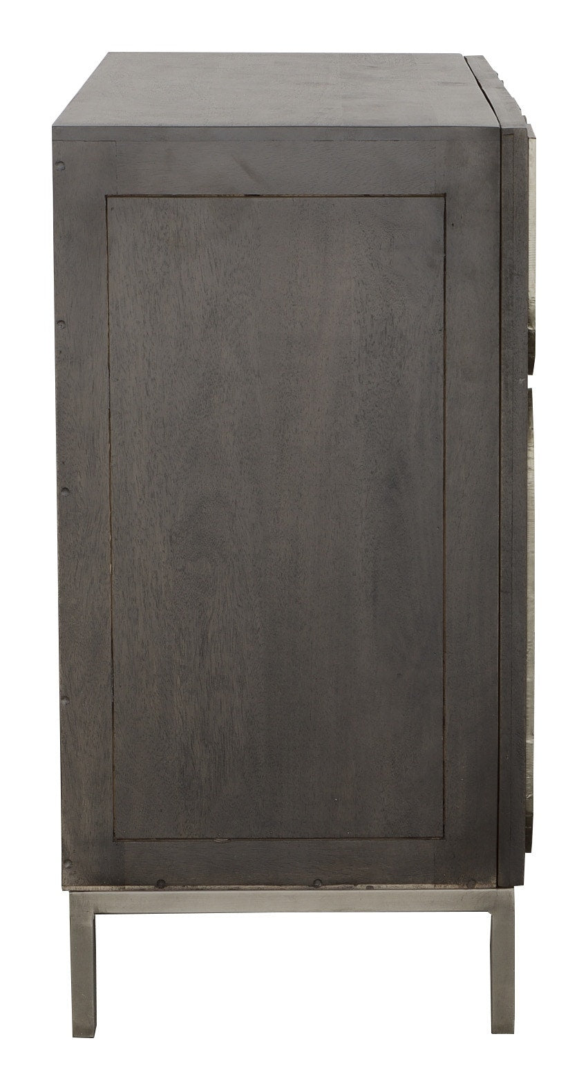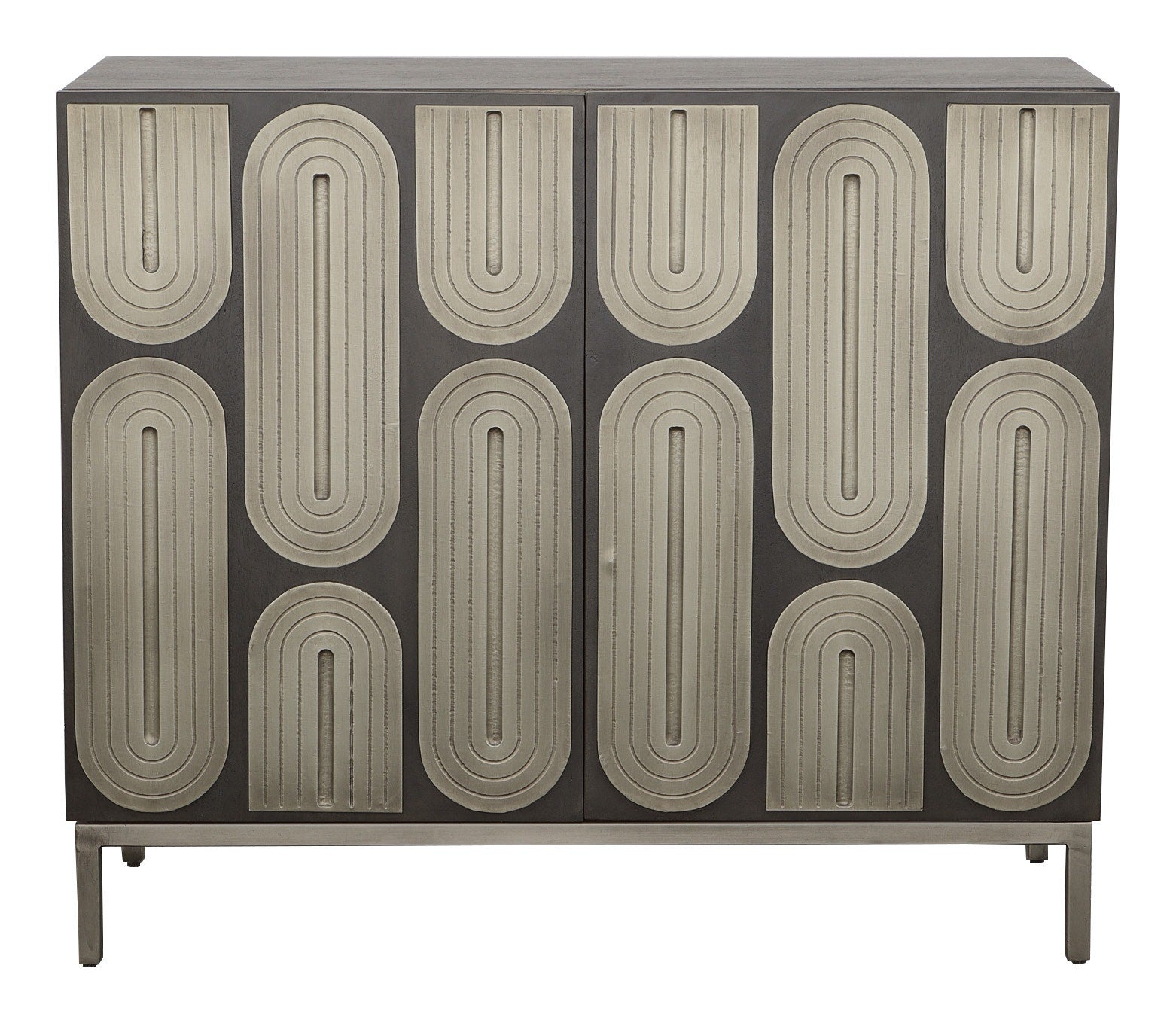 Penelope features doors with raised panel designs covered in aluminum decorative foiling. A unique mix of materials and design elements.