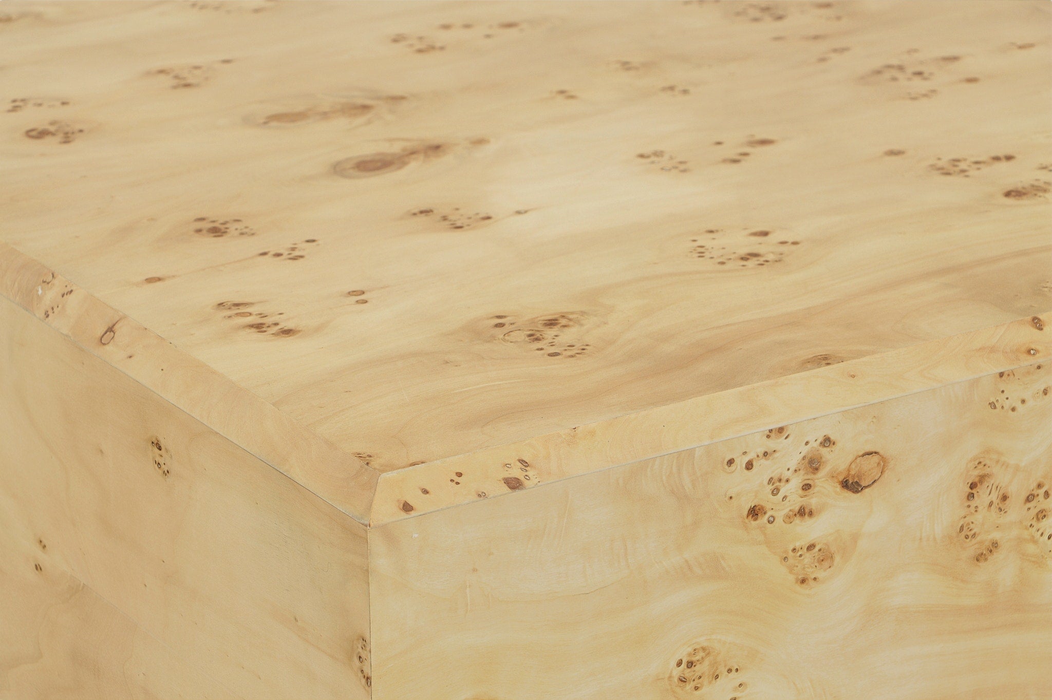 The Sequoia Collection features Mappa Burl veneers. Mappa Burl is a highly decorative veneer in light brown heartwood is peppered by an unusual darker, bark-like pattern of tight clusters. As Mappa Burl is a natural product from individual trees, each cut of veneer will vary slightly. Sequoia draws upon transitional designs and shapes.