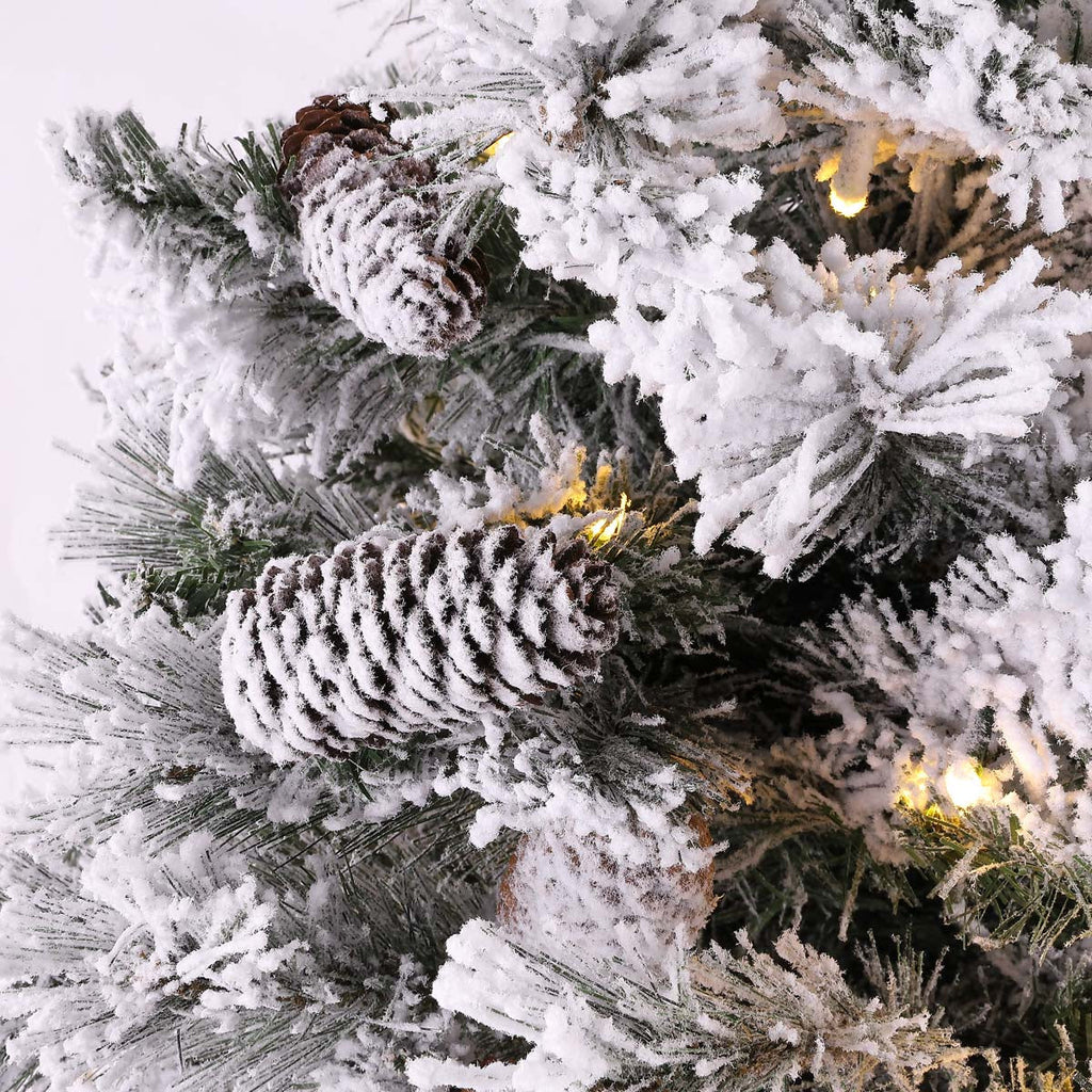 Invite wintery charm to your home this holiday season with our pre-lit, frosted Christmas tree with pine cones. Featuring frosted green foliage; our Christmas tree echoes the beauty of a snow-covered landscape. Its dense and realistic foliage is accented with faux pine cones to attain a rich and bountiful presence. The tree can be decorated with ornaments to instantly bring festive vibes to your home. Featuring a 5.5ft height, our prelit Christmas tree brings holiday vibes to your child's room or any small nooks of the house.