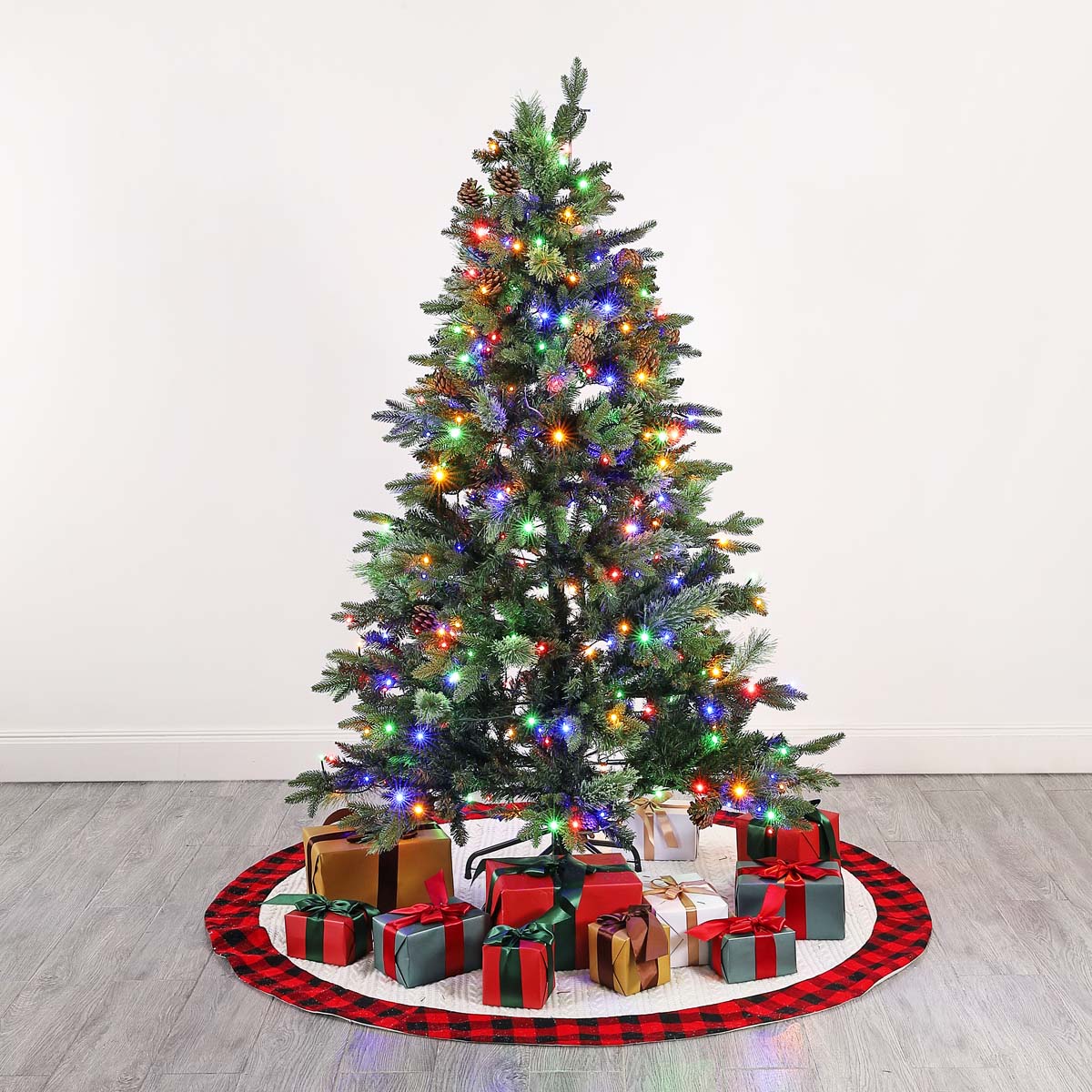 Create a heartwarming backdrop for your holiday celebrations with our pre-lit Christmas tree with pine cones. Its soft and sturdy needle leaves vouch for rich foliage and a graceful silhouette. With realistic rendering and detail, our lush and lifelike Christmas tree is accented with faux pine cones. It features hinged branches to conveniently hold and showcase your favorite ornaments. With a convenient 5.5ft height, our prelit Christmas tree serves as the perfect holiday accent for small and compact spaces.