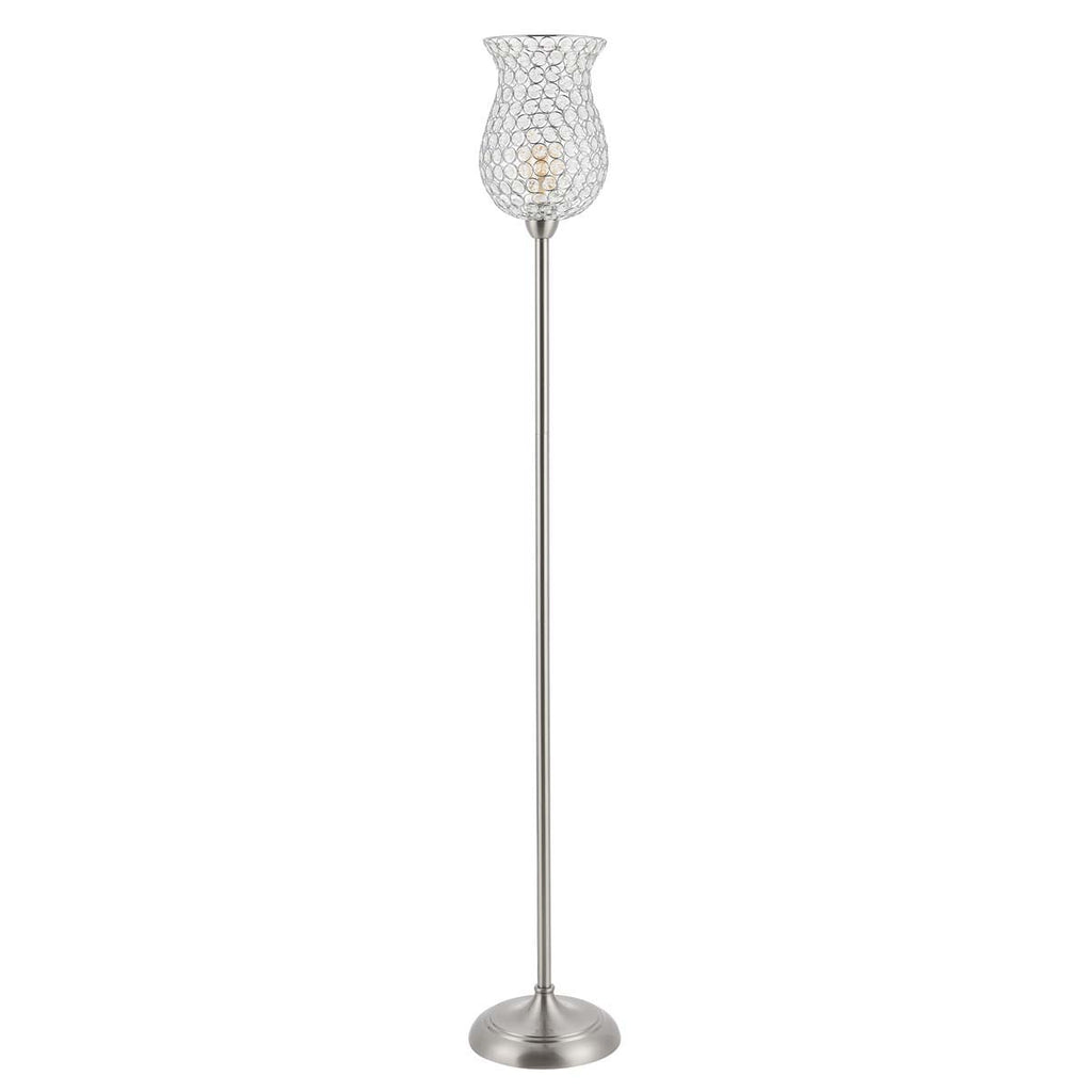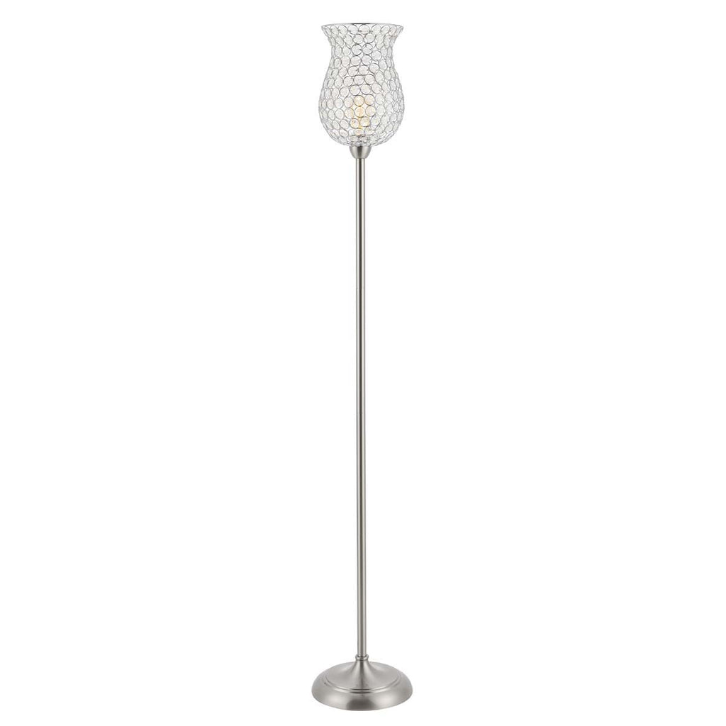 This Ricky Floor lamp gives your d?cor a hint of rich, contemporary sparkle. Ricky?? upright faceted bell cloche shade dramatically updates a classic silhouette, pairing beautifully with the brushed nickel finish on its sleek iron body.