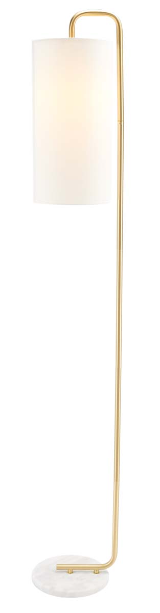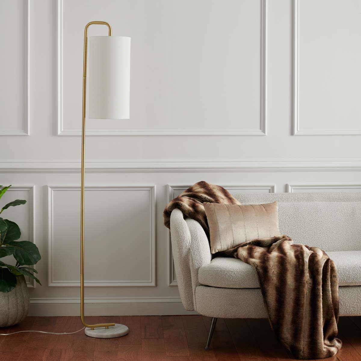 Revitalize your d?cor with this thoroughly modern Troilus Floor Lamp. With a minimalist white cylinder shade and shimmering antique gold frame, Troilus?? white marble base heightens the glamorous appeal of any room.