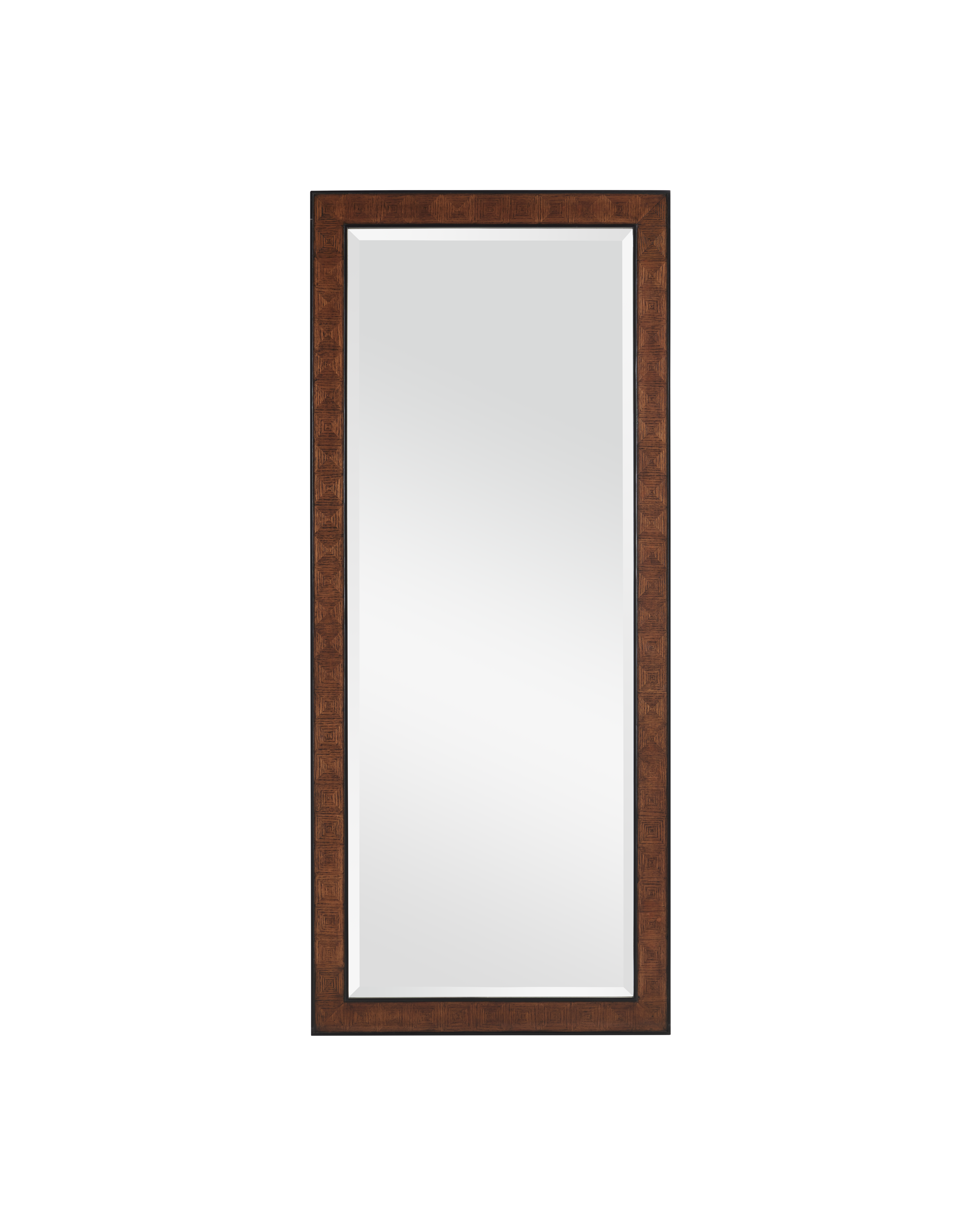 With gorgeously rich surface details, the Dorian Floor Mirror is clad in oak veneers that are laser cut and laid in place like pieces being fitted into a jigsaw puzzle. The frame of diamond box patterns are flanked by black racing stripes to add depth to the piece. The fact that each element is cut and hand-applied makes this an artisanal statement, and the wood mirror's beveled edges add character to the creation. This lovely mirror was designed by Aimee Kurzner.