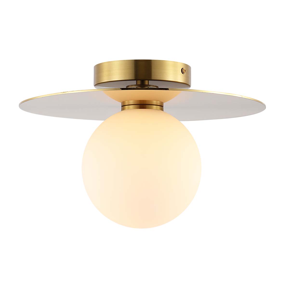 Modern Art With A Touch Of Retro Flair, This Finlay Flush Mount Reinvigorates Any Room With Style And Charisma. Finlay?? White Glass Globe Shade Highlights The Chic Sense Of Motion Emanating From Its Slim Gold Base, Cleverly Staggered To Appear As If Floating Midair.