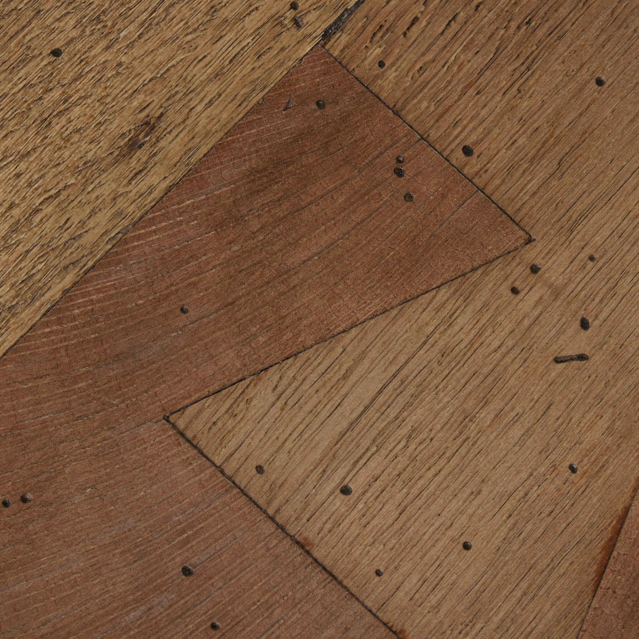 Made from thick-cut oak veneer with a faux rustic finish made to emulate wormwood, this low, square-shaped coffee table features chunky squared legs and dovetail joinery detailing. Perfectly sized for smaller spaces.