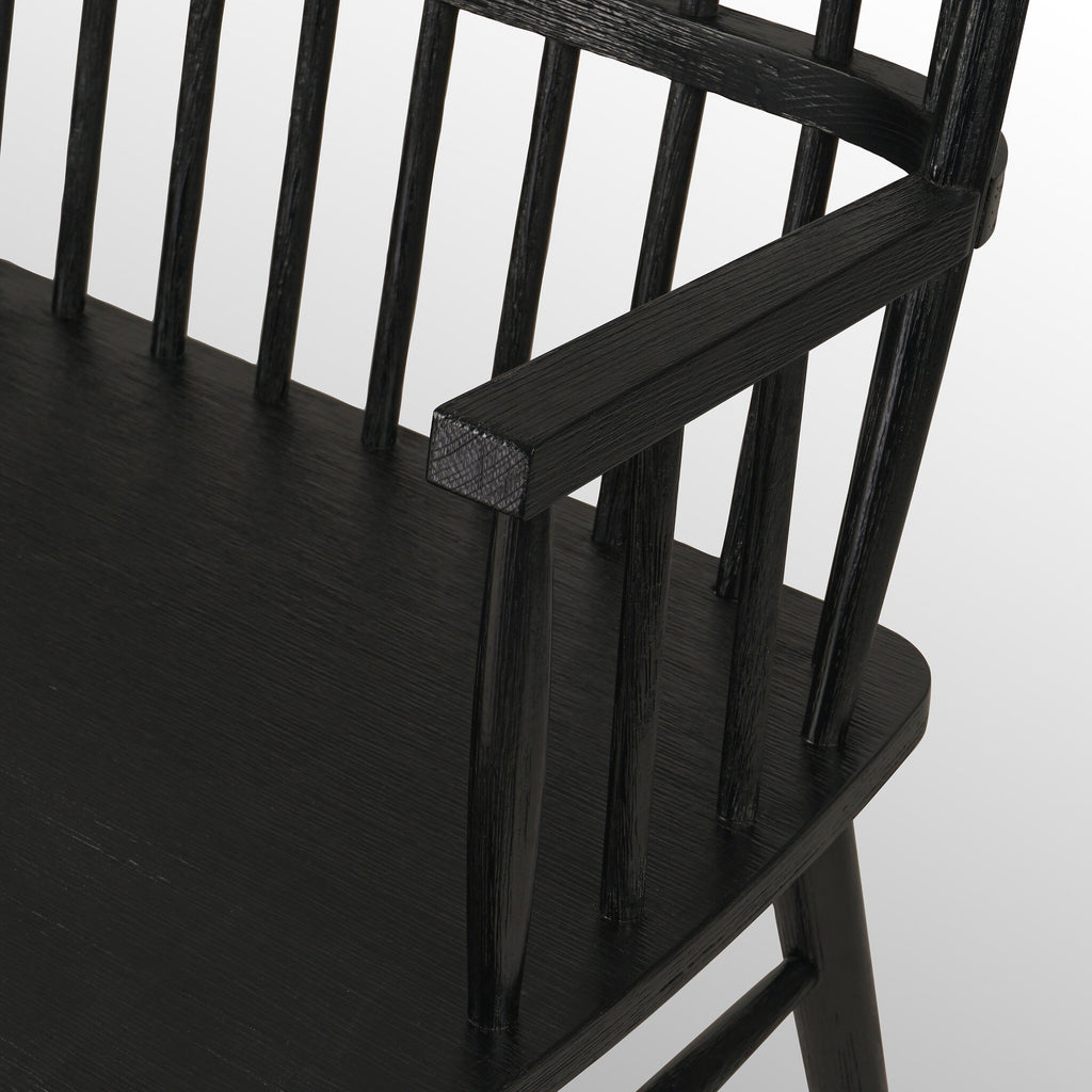 A fresh, forward-thinking take on Windsor-style seating, with a sculptural silhouette and matte black finish to play up parawood's natural luster.