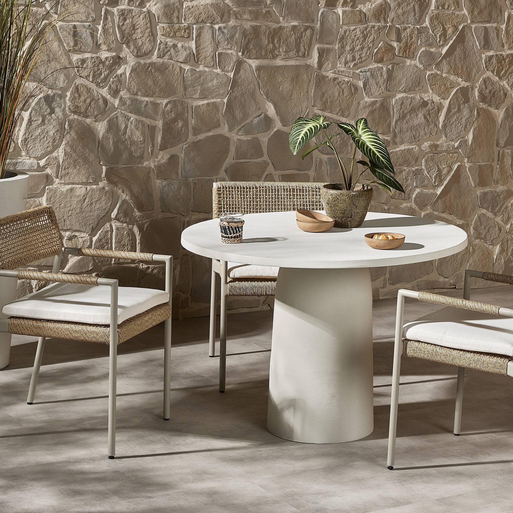 Basil Outdoor Dining Table 42" - Matte White Cast Aluminum | Four Hands - 232410-003