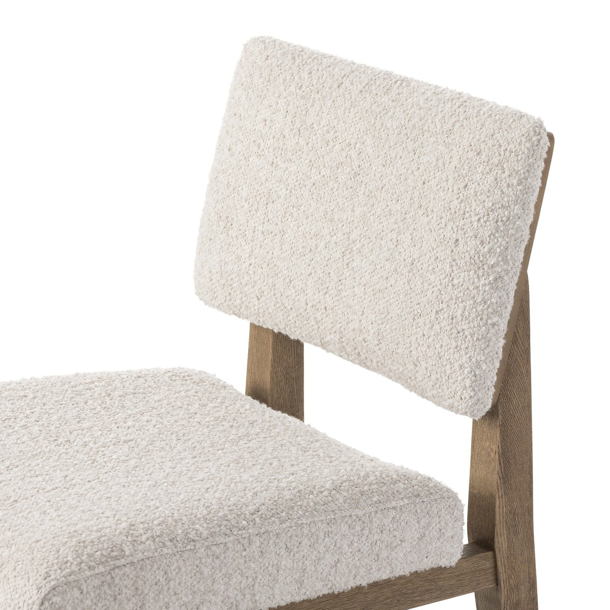 Get back to the basics with this understated modern dining seating. Its simple shape includes a split back design that lets the upholstery peek through. A toasted oak frame paired with cream fabric brings natural tonality to the chair.
