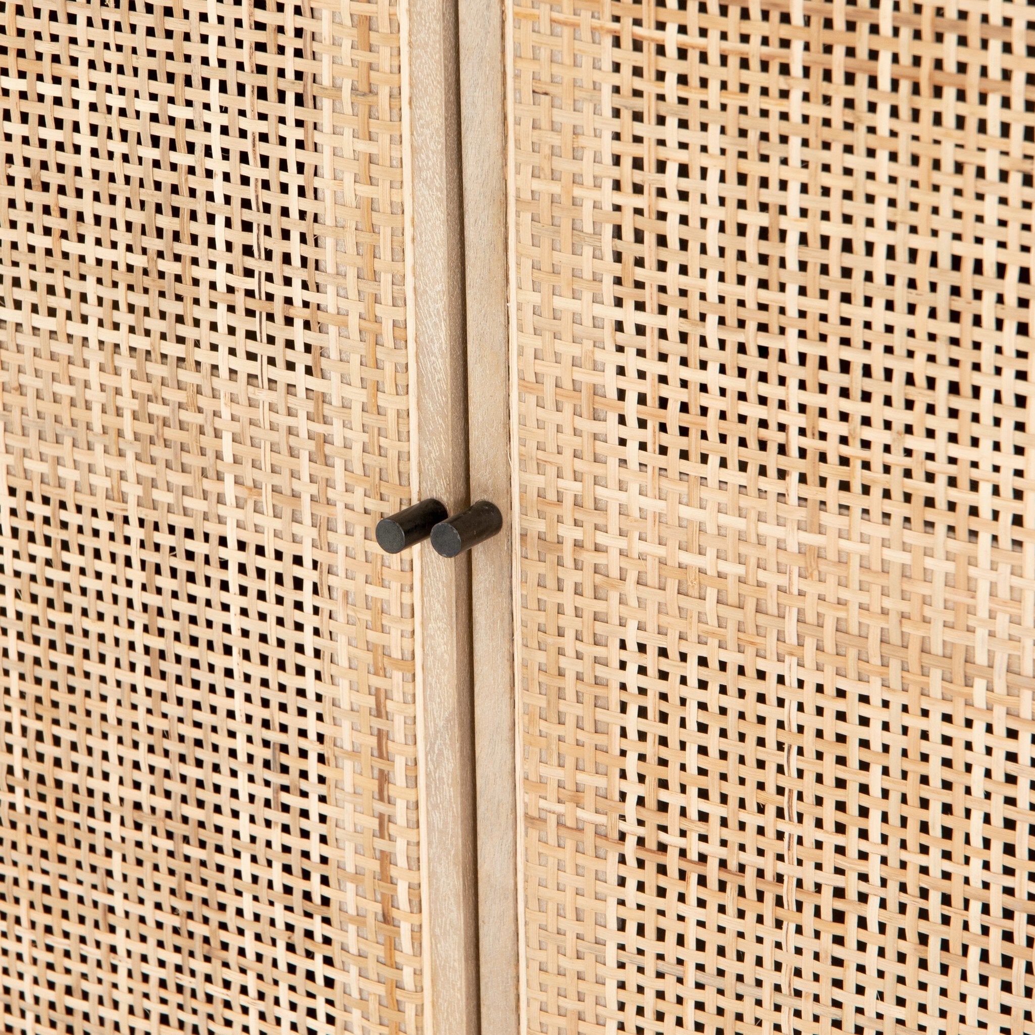 Mid-century style with an organic twist. Surrounded by mango casing, light cane weaves for a fresh look with natural depth. Angular gunmetal-finished iron legs offer an intriguing contrast of texture and tone. Perfect solo or paired up.
