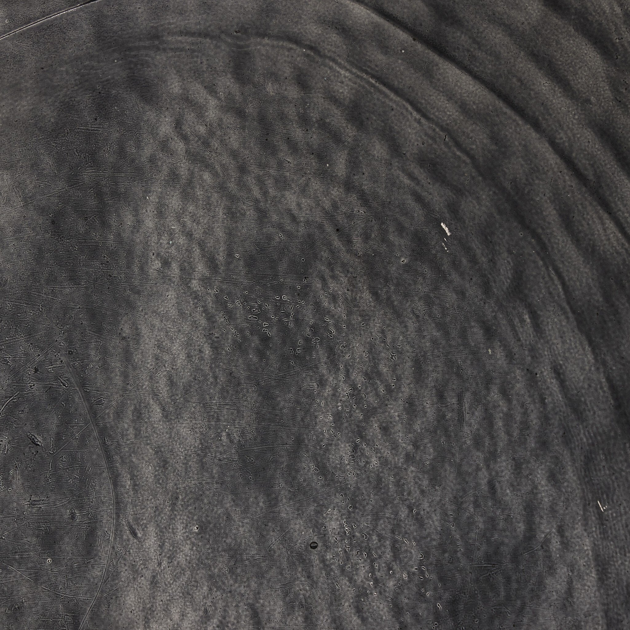 Slim, airy bases of black-finished iron support two varied-height nesting tables of smoked black glass. Designed to bunch or pull apart as desired, with ease.