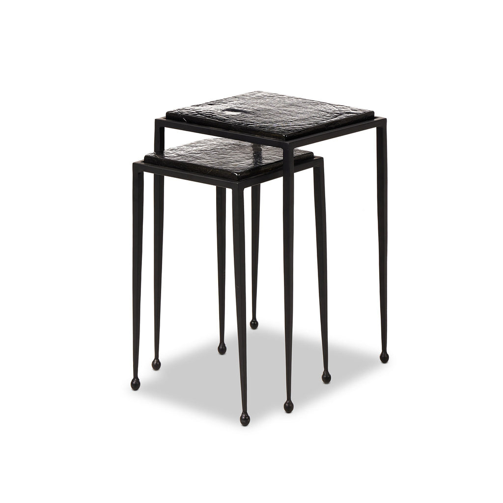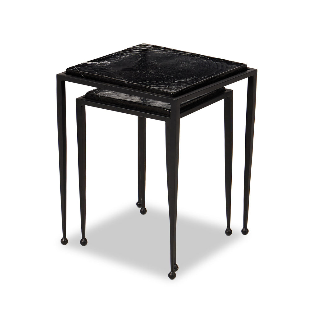 Dalston Nesting End Table Set - Smoked Black Cast Glass | Four Hands - 239742-001