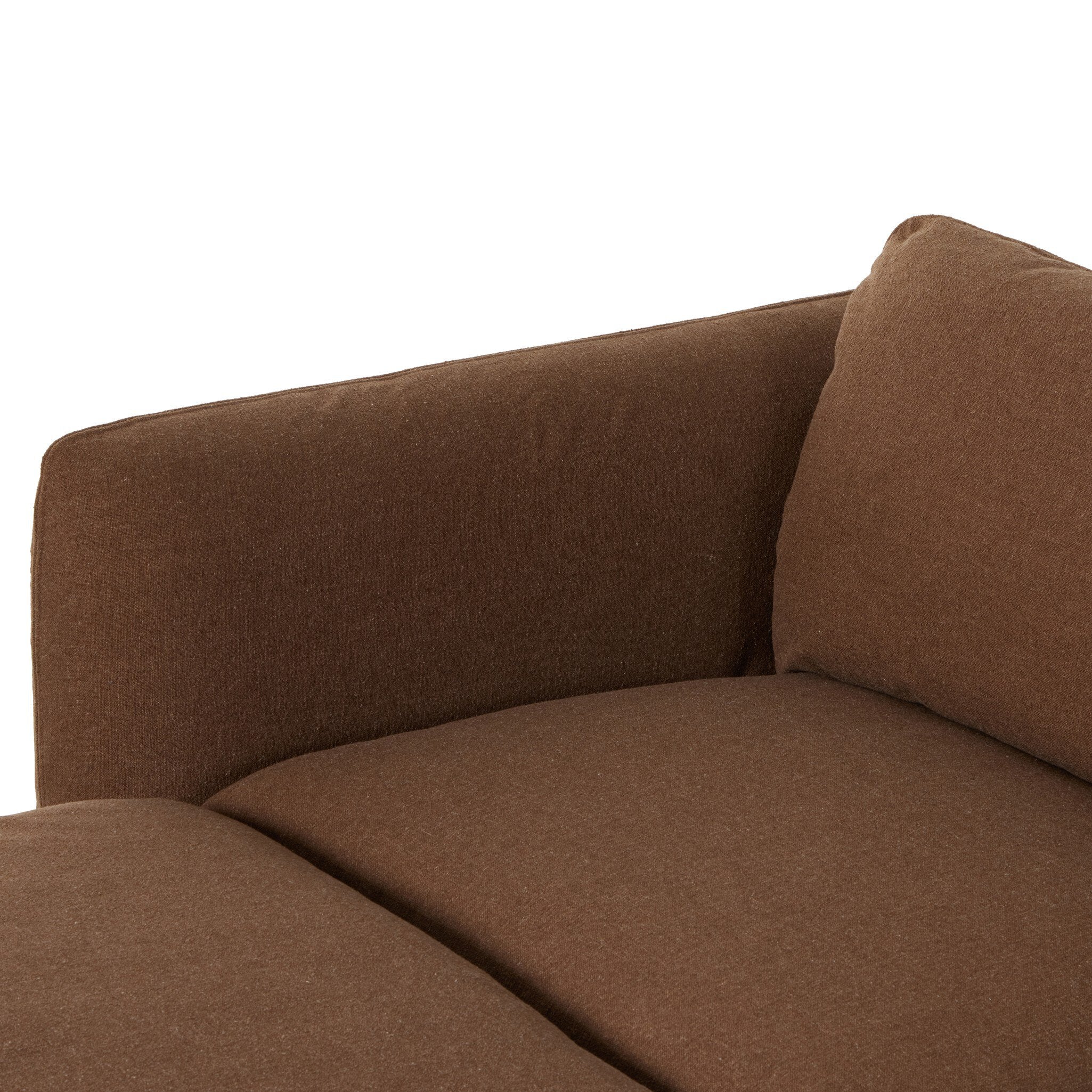 Inflated, pillow-inspired cushioning all around brings cozy comfort to the room. High-performance linen offers the best of both worlds on this plush and welcoming sectional. Inflated arms, feather-fiber blend cushioning, a soft, durable linen fabric make this spacious sectional a smart solution for the comfort-driven living space. Performance fabrics are specially created to withstand spills, stains, high traffic and wear, ensuring long-term comfort and unmatched durability.