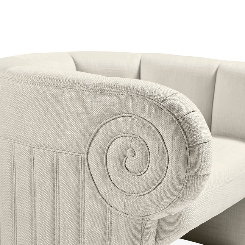 Neoclassical style meets minimalist comfort. Featuring button accents and a thick comfy back and seat cushions, our Acropolis Club Chair is as comfy as it is sculptural. Perfect for bringing drama to your den, a dash of scholarly style to your study, or double up and let the pair sit opposite your sofa.